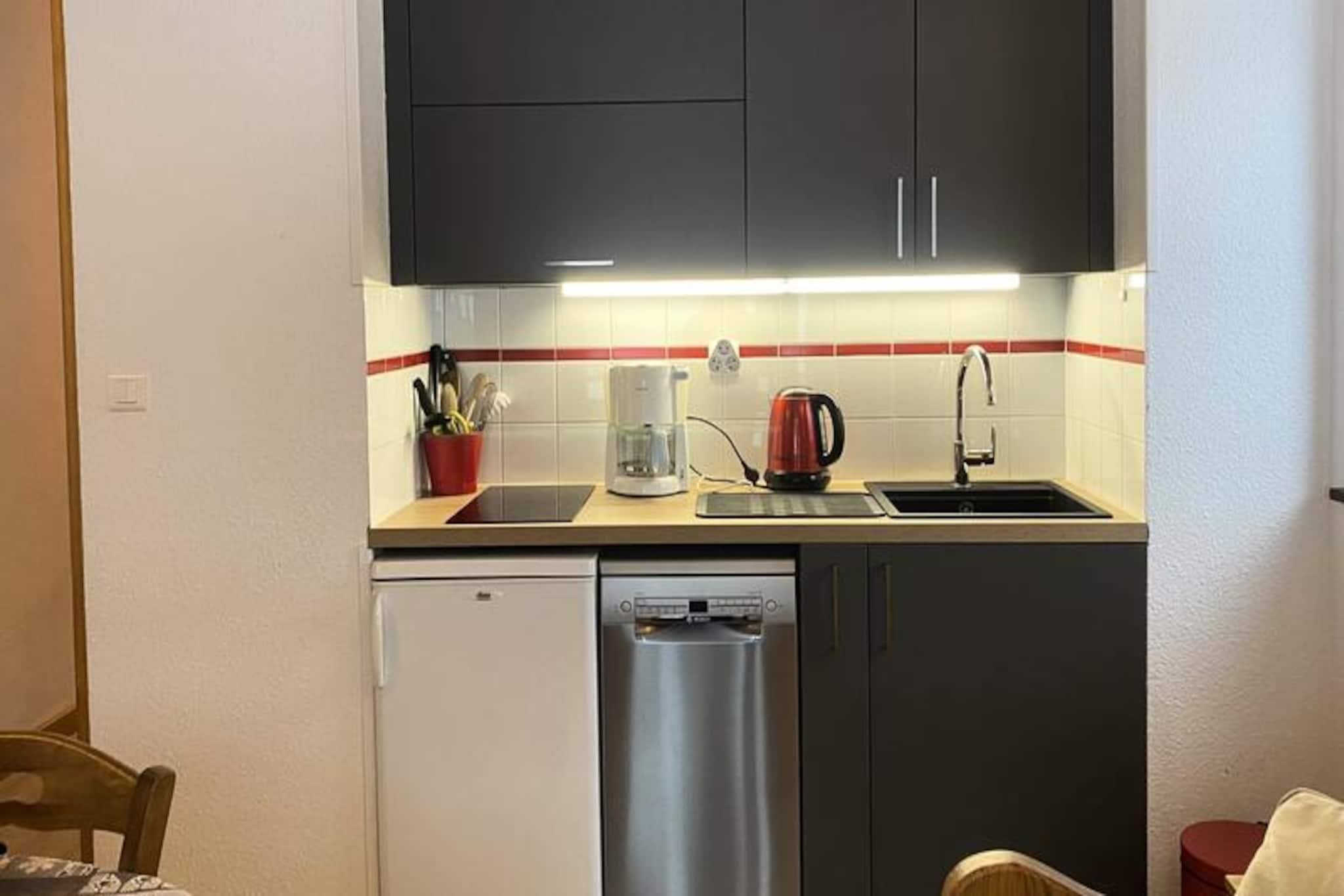 Denne charmerende lejlighed på 36 m², beliggende ved foden af ??pisterne i Morillon 1100, tilbyder et perfekt tilflugtssted for familier eller små grupper. Lejligheden indeholder to soveværelser: det ene med en 140x190 cm dobbeltseng og det andet med en køjeseng (bemærk at højsengen ikke er egnet til børn under 6 år). I stuen er der en "ekspressseng" sofa til ekstra gæster. Nyd den lyse sydlige eksponering med en fantastisk udsigt over pisterne fra balkonen, møbleret med et lille bord og to stole. Kæledyr er ikke tilladt, og ejendommen er ikke-ryger. Et skiskab er tilgængeligt for din bekvemmelighed, og sengetøj er til rådighed, herunder madrasser, dyner og puder. Beliggende i hjertet af Morillon 1100, tilbyder lejligheden direkte adgang til pisterne, perfekt til vintersport elskere. Butikker, caféer og restauranter ligger inden for gåafstand, hvilket giver alt det nødvendige for et afslappende ophold. Den pulserende landsby byder på lokale markeder og regionale specialiteter, mens de omkringliggende bjerge byder på vandrestier om sommeren. Lejligheden har et fuldt udstyret køkken med køleskab, opvaskemaskine, mikroovn, kedel, kaffemaskine og raclettegrill samt alle nødvendige redskaber. Badeværelset har badekar, og der er separat toilet. For nemheds skyld har lejligheden også en støvsuger og tørrestativ med varme for ekstra komfort. Bemærk venligst, at der ikke er internetadgang, og der kræves et depositum for booking.