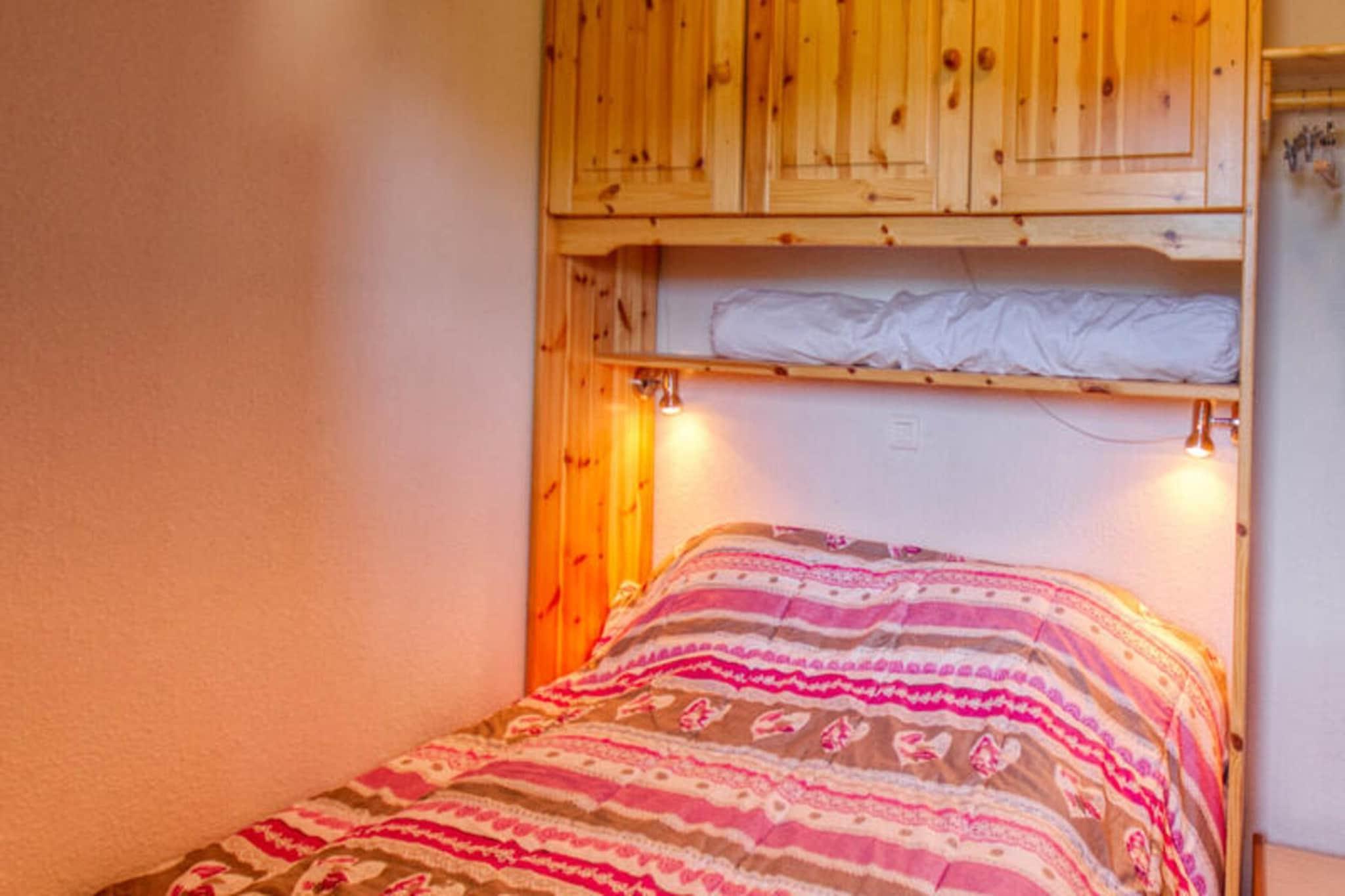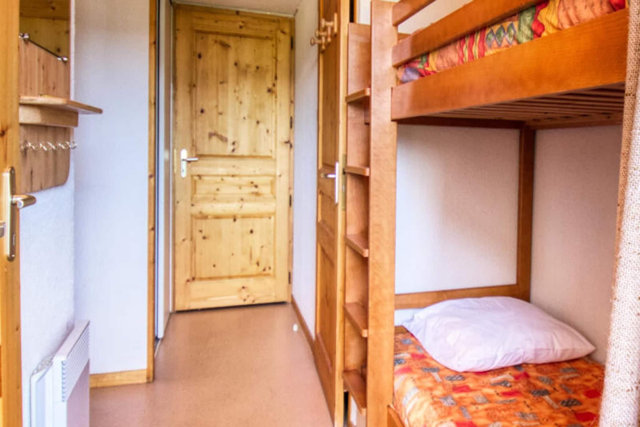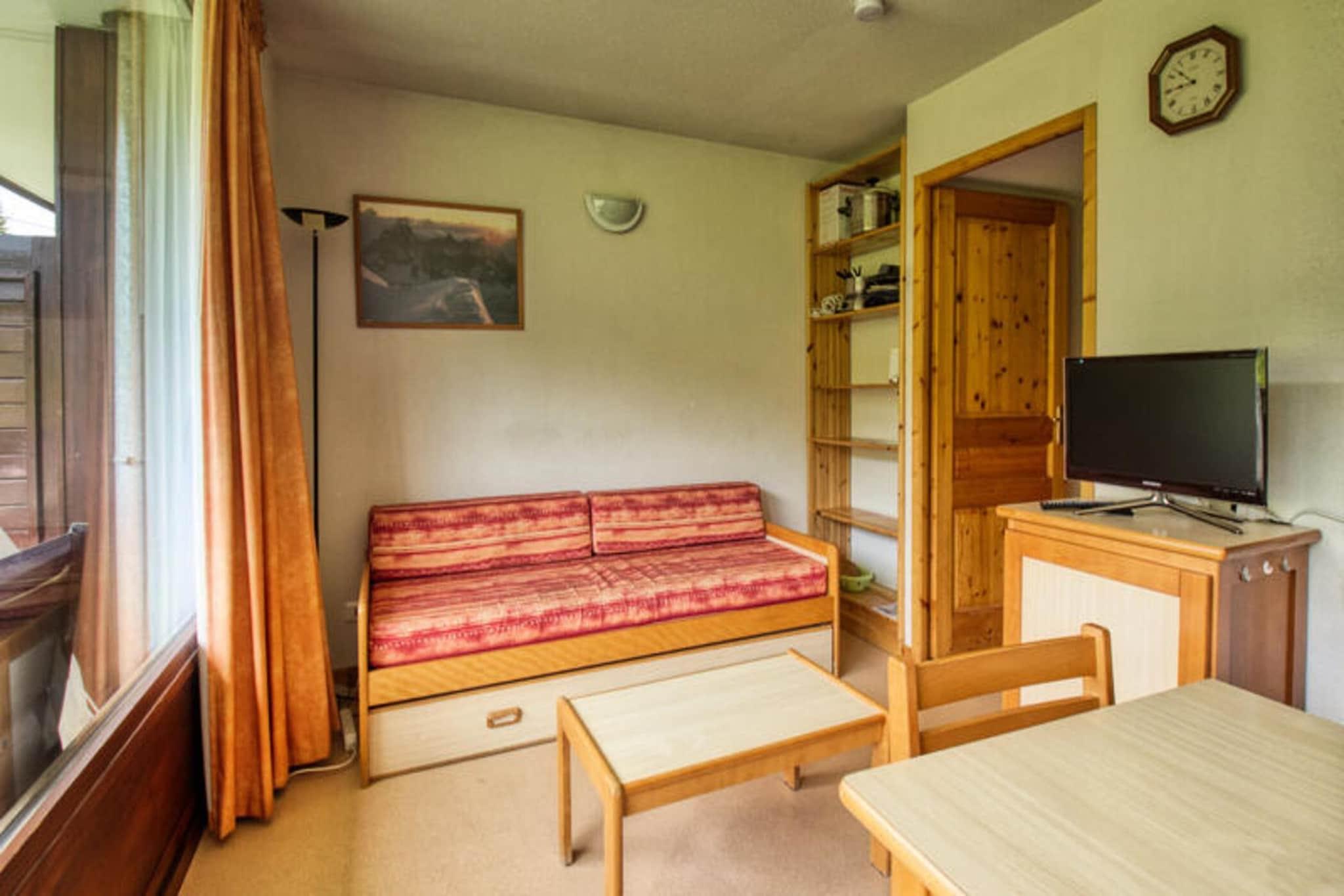 Denne hyggelige lejlighed er ideelt beliggende ved foden af ??pisterne og tilbyder et behageligt ophold for op til 4 gæster. Den indeholder et soveværelse med en 140x190 cm seng, et soveområde med en køjeseng (bemærk venligst, højsengen er uegnet til børn under 6 år) og en udtrækssofa i stuen. Lejligheden er kæledyrsfri og ikke-ryger, hvilket giver et rent og roligt sted til afslapning. Yderligere faciliteter omfatter en støvsuger, tørrestativ og et skiskab for din bekvemmelighed. Bemærk venligst, at der ikke er internetadgang i lejligheden. Beliggende i Morillon 1100 tilbyder denne lejlighed en førsteklasses beliggenhed med nem adgang til skiløjperne, hvilket gør den perfekt for skientusiaster. Nyd en betagende udsigt over pisterne fra den sydvendte balkon, der er udstyret med havemøbler, herunder et bord, 3 stole og en parasol. Det pulserende feriested har også lokale caféer og butikker, så gæsterne kan udforske området og nyde den omgivende alpine atmosfære. Lejligheden har et fuldt udstyret køkken, komplet med et topkøleskab, elektriske kogeplader, en miniovn, mikroovn, brødrister, trykkoger, vaskemaskine og køkkenredskaber. Badeværelset har badekar og toilet. Efter en dag på pisterne kan gæsterne slappe af i den varme og indbydende stue, eller slappe af på balkonen, mens de nyder den smukke udsigt.