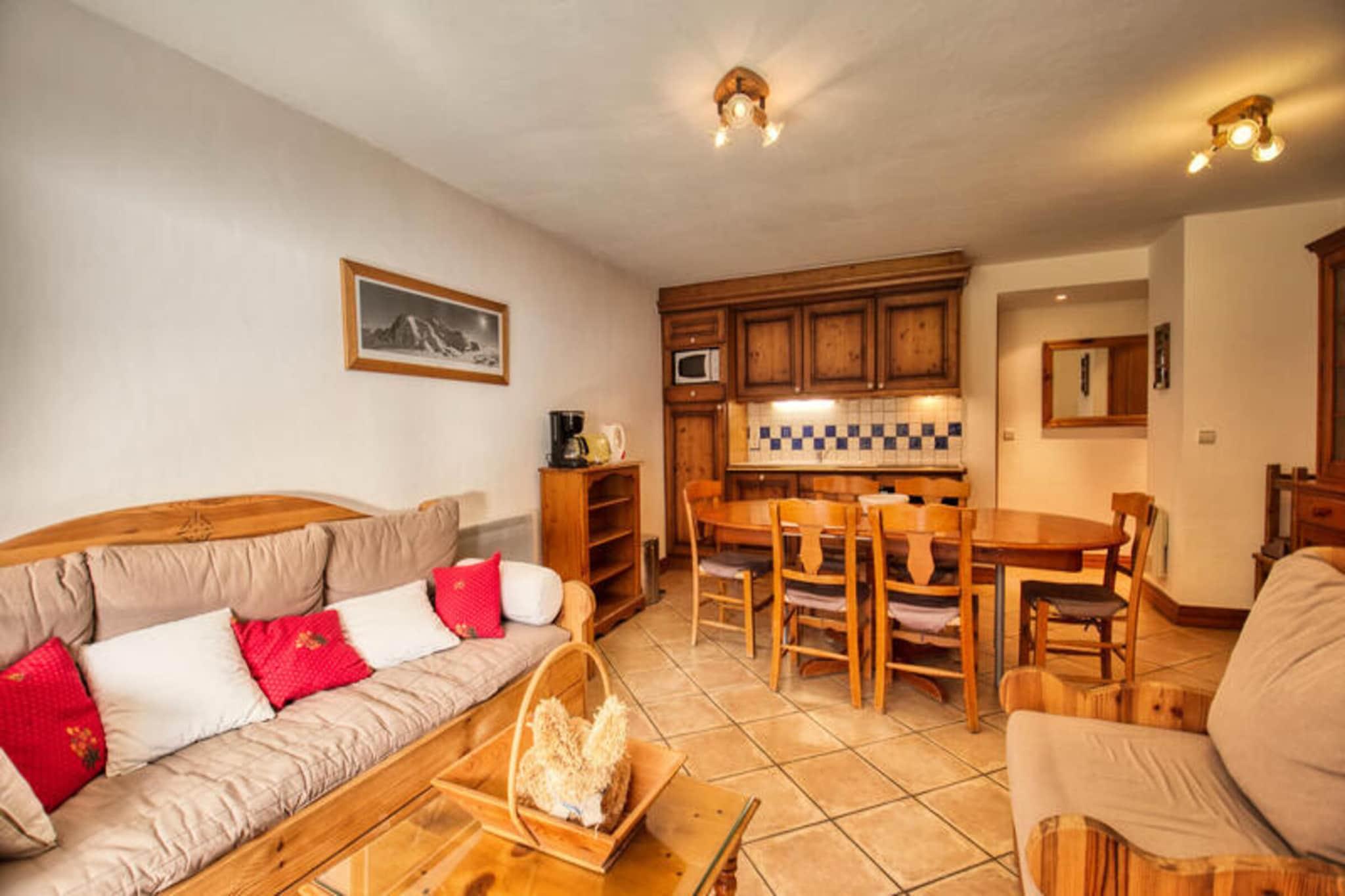 Denne charmerende lejlighed i bjergstil byder på et hyggeligt oase ved foden af ??pisterne, perfekt for op til 8 gæster. Med 3 soveværelser, herunder et en suite med dobbeltseng og privat badeværelse, et andet med dobbeltseng og et tredje med køjesenge, er det ideelt for familier eller grupper. Stuen har en komfortabel sofa og tv, mens den sydøstvendte balkon giver en fantastisk udsigt over resortet og de omkringliggende bjerge. Ejendommen er ikke-ryger, og kæledyr er ikke tilladt, hvilket sikrer et rent og roligt miljø. Denne lejlighed ligger i hjertet af Morillon 1100 og giver direkte adgang til pisterne og lifterne i skiområdet Grand-Massif. Nyd resortets charme med dens traditionelle bjergarkitektur samt nærhed til butikker, caféer og lokale markeder. Friluftsentusiaster vil sætte pris på de mange forskellige vintersportsgrene, vandrestier og naturskønne udsigter lige uden for døren. Lejligheden er fuldt udstyret til et bekvemt ophold og byder på et moderne køkken med køleskab, keramisk kogeplade, opvaskemaskine, ovn og små apparater som kaffemaskine, kedel og brødrister. Et badeværelse med badekar, vaskemaskine og separat toilet sikrer komfort for alle gæster. Yderligere faciliteter omfatter et skiskab og sengetøj, inklusive puder og dyner. Selvom der ikke er internetadgang, sørger de fantastiske alpine omgivelser og varme stemning for en mindeværdig bjergflugt.