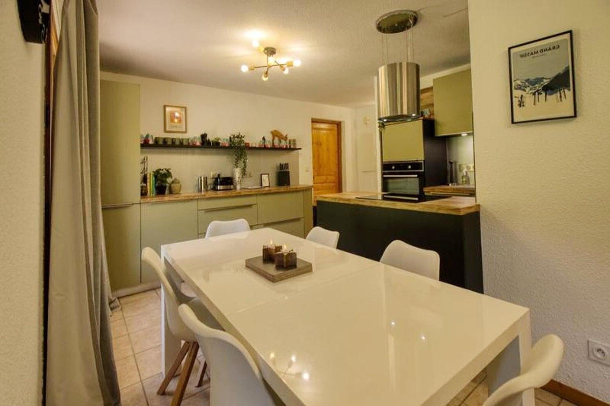 Denne charmerende lejlighed på 65 m² kan komfortabelt rumme op til 6 personer, hvilket gør den ideel til familier eller små grupper. Det har tre soveværelser: et med en 140x190 cm seng, et en suite med en 160x190 cm seng og et privat brusebadeværelse og et bjerghjørne med køjesenge (90x190 cm), hvor den øverste køje ikke er egnet til børn under 6 år gammel. Lejligheden indeholder også et brusebad, separat toilet og en stue med to sofaer, et fjernsyn og WiFi. Bemærk venligst, at kæledyr ikke er tilladt, og lejligheden er ikke-ryger. Denne lejlighed ligger ved indgangen til landsbyen Morillon, kun 500 m fra butikkerne og 50 m fra skibusstoppestedet, der tilbyder nem adgang til pisterne i vintermånederne. Om sommeren kan du nyde det nærliggende fritidscenter Lac Bleu, kun 500 m væk, med aktiviteter som svømning i søen, træklatring, ponyridning, oppustelige spil, trampoliner, mountainbiking og rafting. Selve landsbyen Morillon er en malerisk destination, perfekt til at udforske lokale caféer og butikker. Lejlighedens fuldt udstyrede køkken omfatter køleskab/fryser, opvaskemaskine, ovn, mikroovn, kaffemaskine, kedel og brødrister. Der er en vaskemaskine på det tilhørende badeværelse. Den sydvendte terrasse med havemøbler tilbyder et dejligt sted at slappe af udendørs i de varmere måneder. Der er et skiskab til opbevaring af dit udstyr, og en støvsuger er tilgængelig for nemheds skyld.