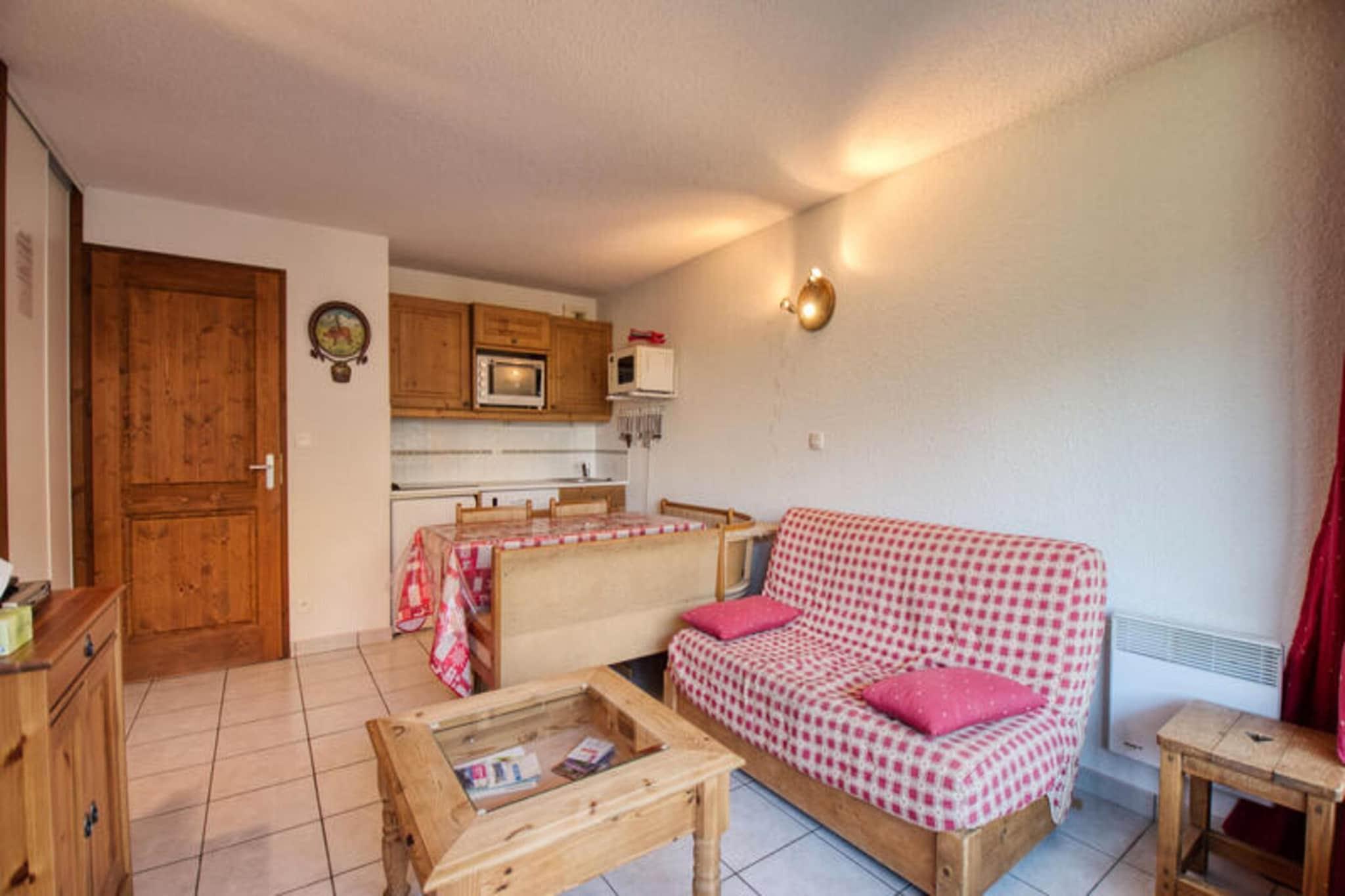 Denne charmerende lejlighed på 35 m², beliggende ved bunden af ??skiløjperne, er et perfekt tilflugtssted for op til seks gæster. Beliggende på første sal med elevator adgang, det har et soveværelse med en 140x190 cm seng, et bjerghjørne med en køjeseng (130x190 cm og 80x190 cm) og en stue med en BZ sovesofa. Lejligheden har alt det nødvendige for et behageligt ophold, inklusive sengetøj med madrasser, dyner og puder. Bemærk venligst, at kæledyr ikke er tilladt, og at boligen er røgfri. Beliggende i en førsteklasses beliggenhed nær Morillon-pisterne og skiområdet Grand Massif tilbyder denne ejendom direkte adgang til skisportseventyr og er tæt på børnehaven og begynderområdet. Gæster kan nyde bekvemmeligheden ved nærliggende skiløjper og udforske lokale caféer, restauranter og butikker i området, hvilket gør det til et fremragende valg for familier eller grupper, der søger en afslappende alpine ferie. Det fuldt udstyrede køkken omfatter køleskab, opvaskemaskine, keramiske kogeplader, ovn, mikroovn, SENSEO-kaffemaskine og en række apparater såsom en raclette-grill og pandekagemaskine, perfekt til at lave solide måltider. Et badeværelse med badekar og toilet sikrer komfort under dit ophold. Yderligere faciliteter omfatter et skiskab, en støvsuger og et tørrestativ. En østvendt balkon med havemøbler giver et fredfyldt sted at slappe af og nyde udsigten over bjergene.