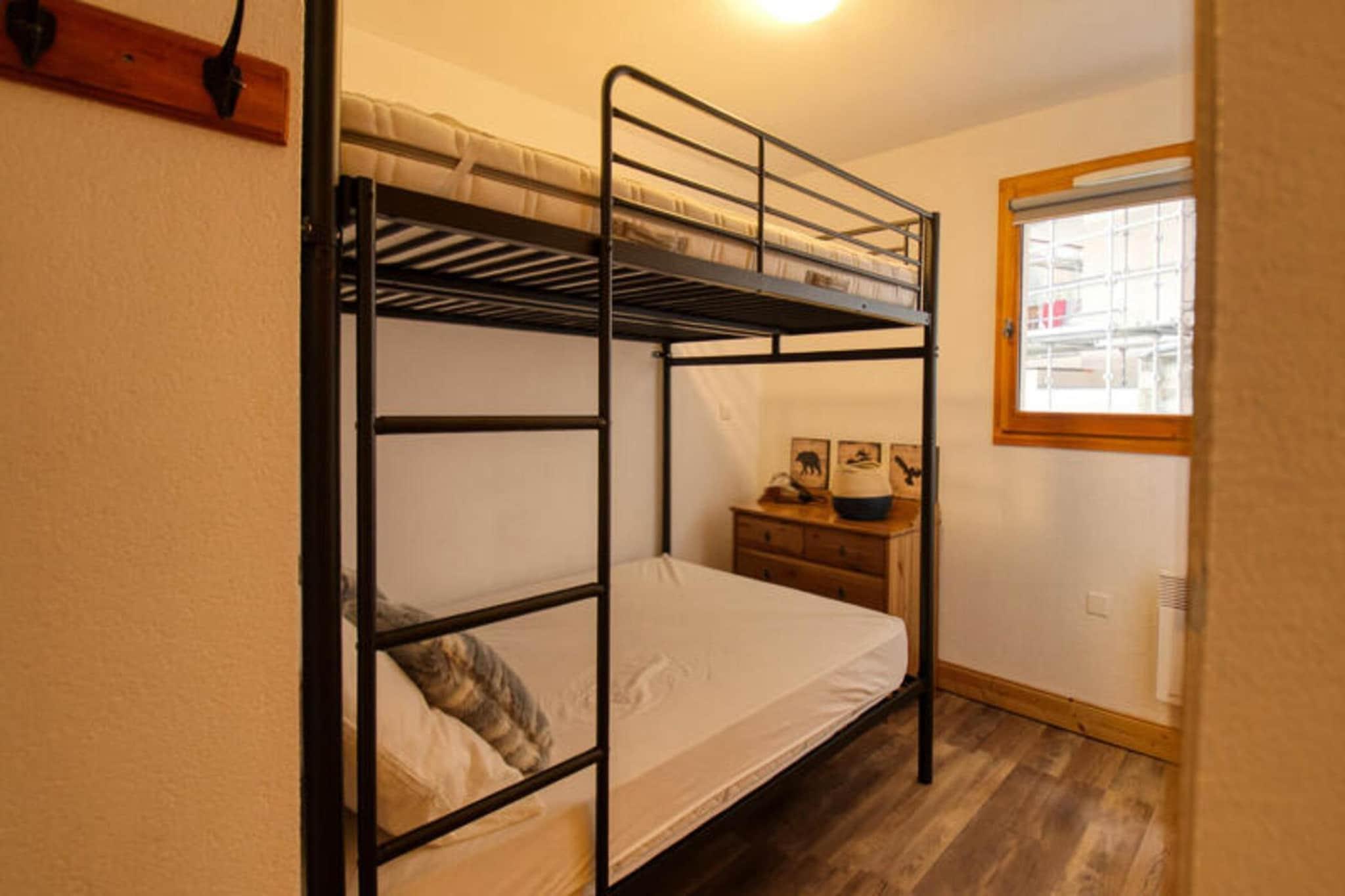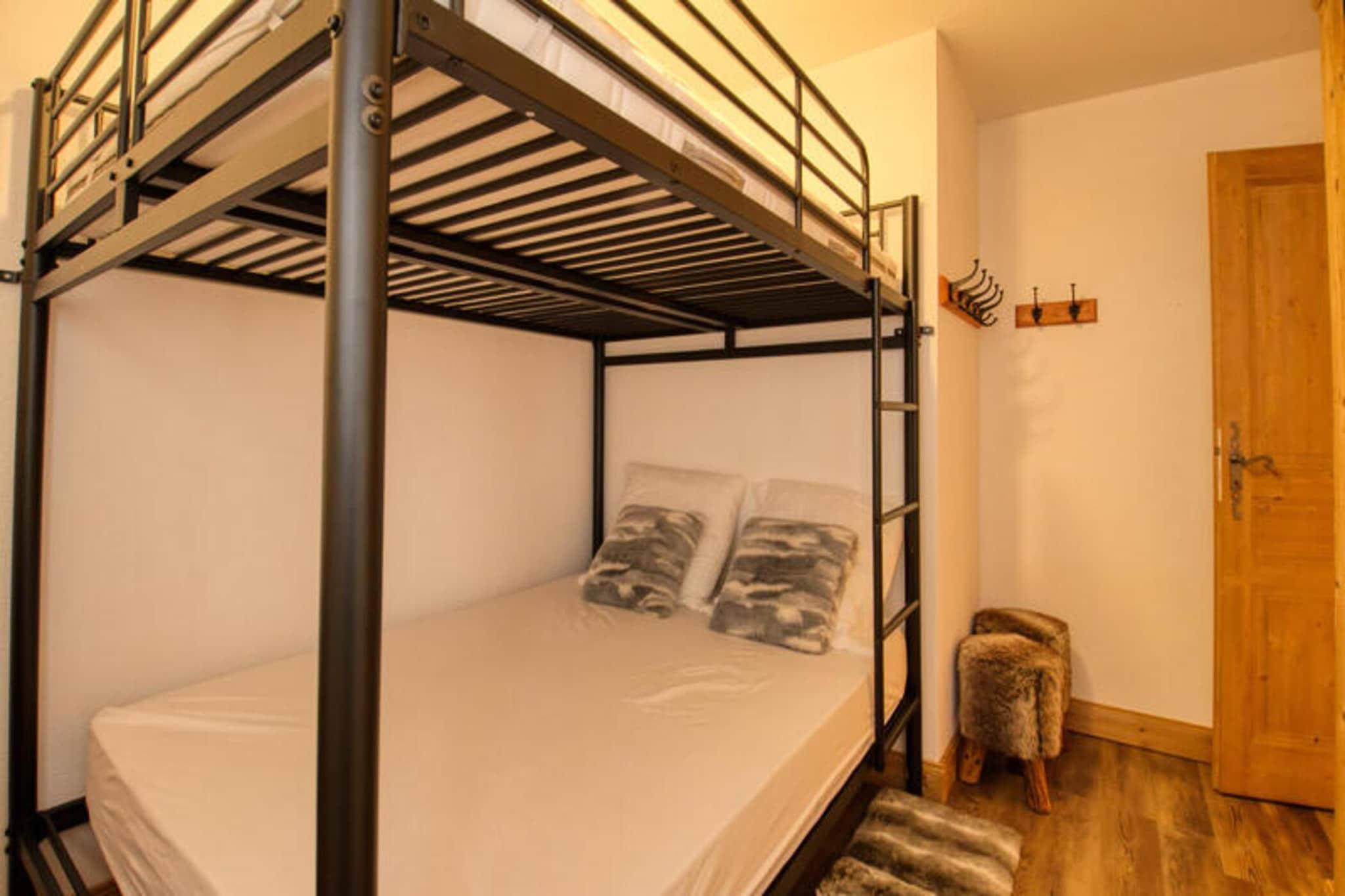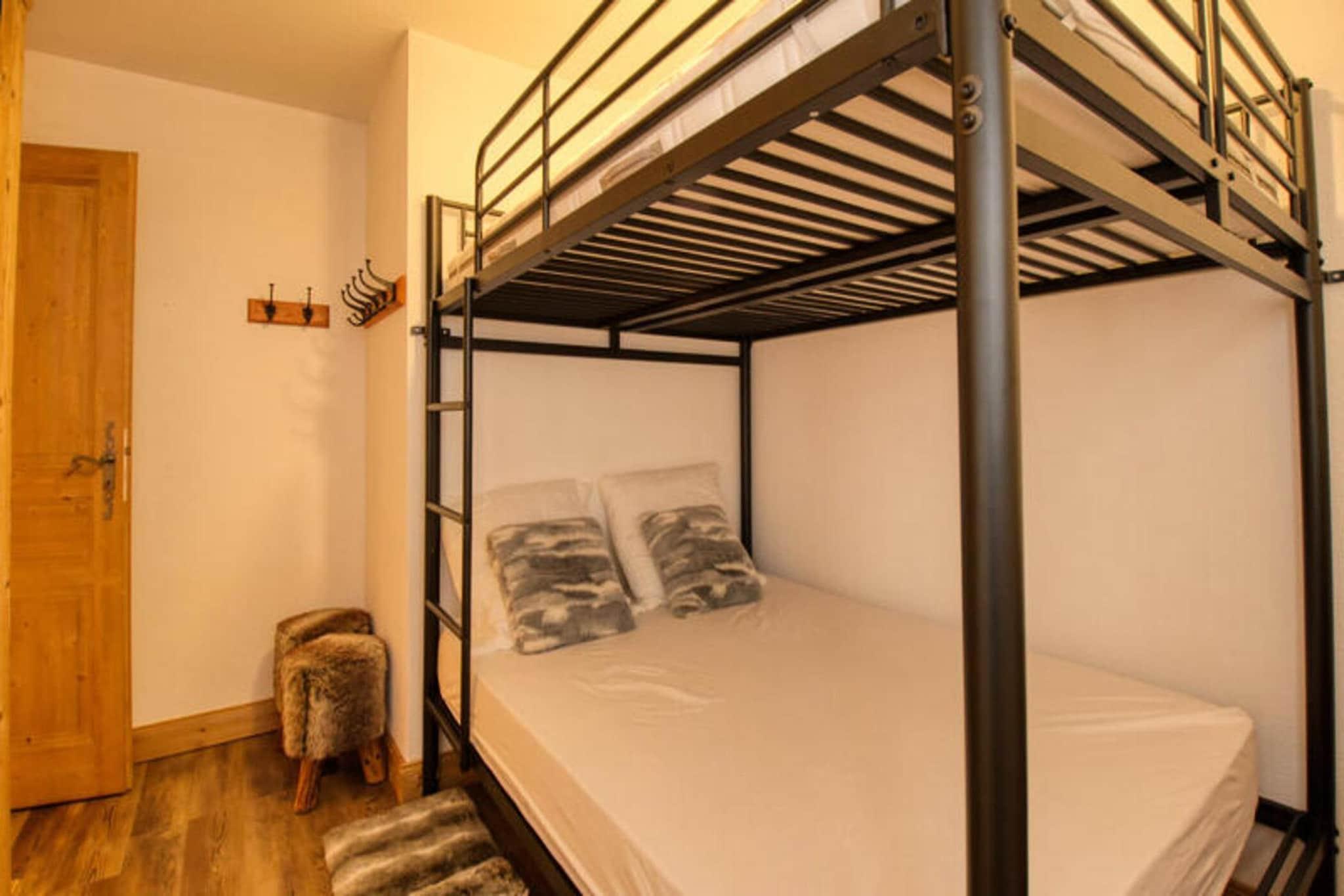 Denne omhyggeligt indrettede lejlighed, beliggende i en luksusbolig med sikker adgang, kan rumme op til seks personer (eller syv med en ekstra seng). Den har to soveværelser: et med en dobbelt køjeseng (140x190 cm, øverste køje uegnet til børn under 6), og et andet med to enkeltsenge (80x200 cm), der kan sættes sammen til en dobbeltseng. En ekstra seng (120x200cm madras) kan arrangeres i stuen. Kæledyr er ikke tilladt, og lejligheden er strengt røgfri. Der kræves et depositum på EURO600. Beliggende ved foden af ??pisterne i hjertet af feriestedet Esserts i Morillon 1100, ligger dette feriehus til ski-in/ski-out lige i centrum, tæt på butikker og skilifte. Lejligheden, som ligger på 1. sal med elevatoradgang, omfatter entré, badeværelse med badekar og hårtørrer, separate toiletter, fuldt udstyret køkken, opholdsstue med sofa og fjernsyn samt balkon med et nordvendt bjerg. udsigt. Køkkenet er udstyret med køleskab, fryser, keramiske kogeplader med to brændere, opvaskemaskine, vaskemaskine, filterkaffemaskine, Nespresso-maskine, fonduemaskine, raclettemaskine samt komplet service og køkkenredskaber. Sengetøj (madraspuder, dyner og firkantede puder) er til rådighed. En støvsuger er også tilgængelig. Der er ingen internetadgang. Varme er inkluderet.