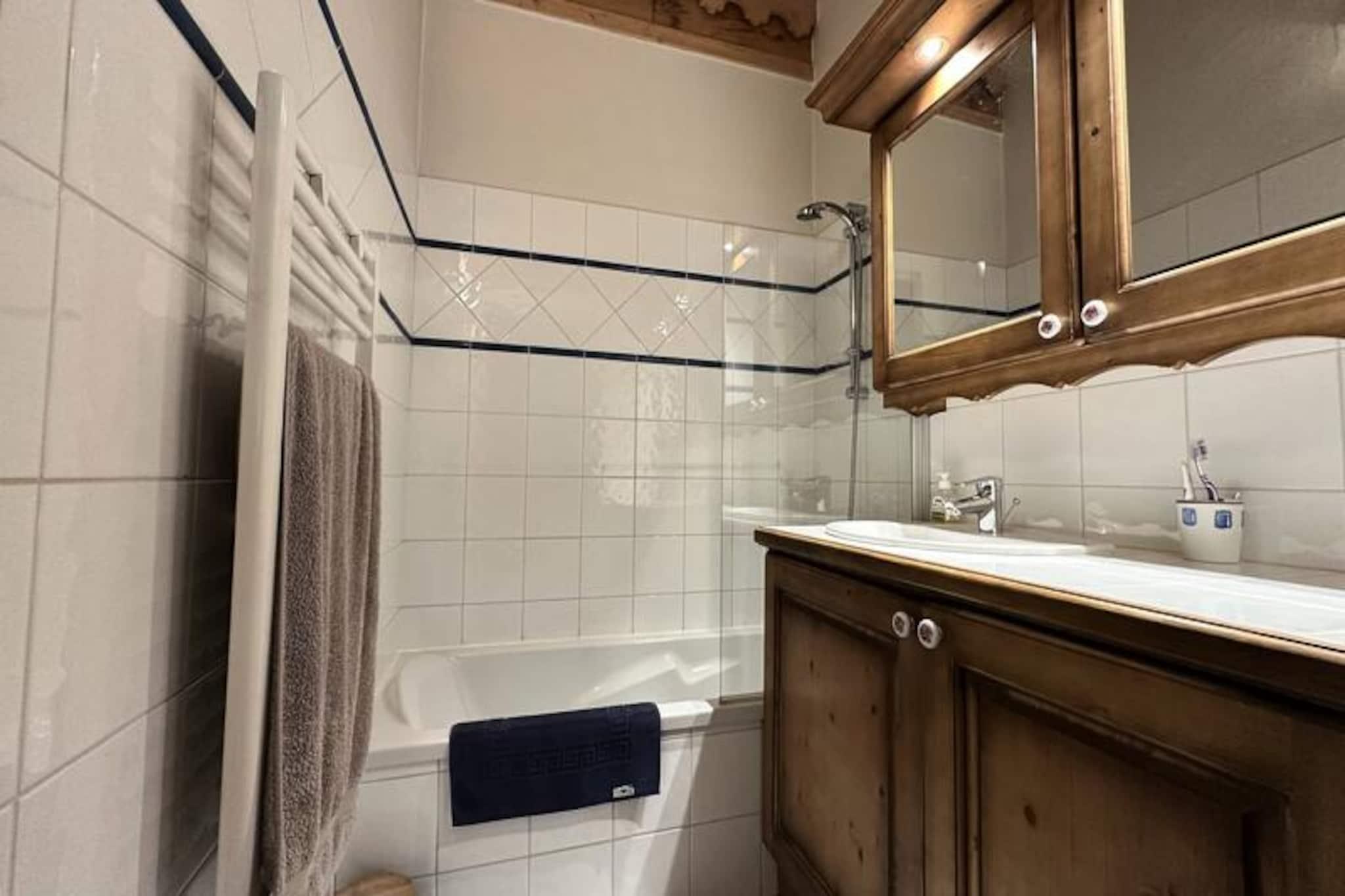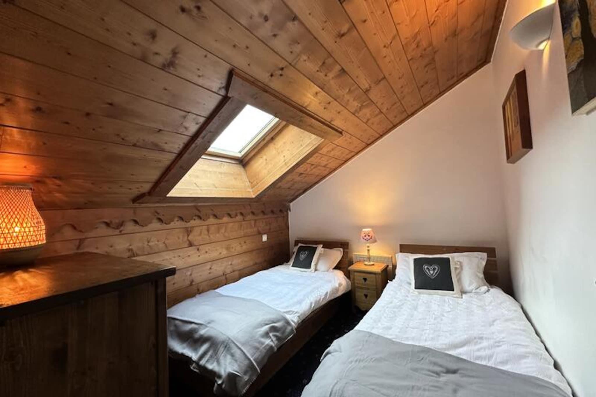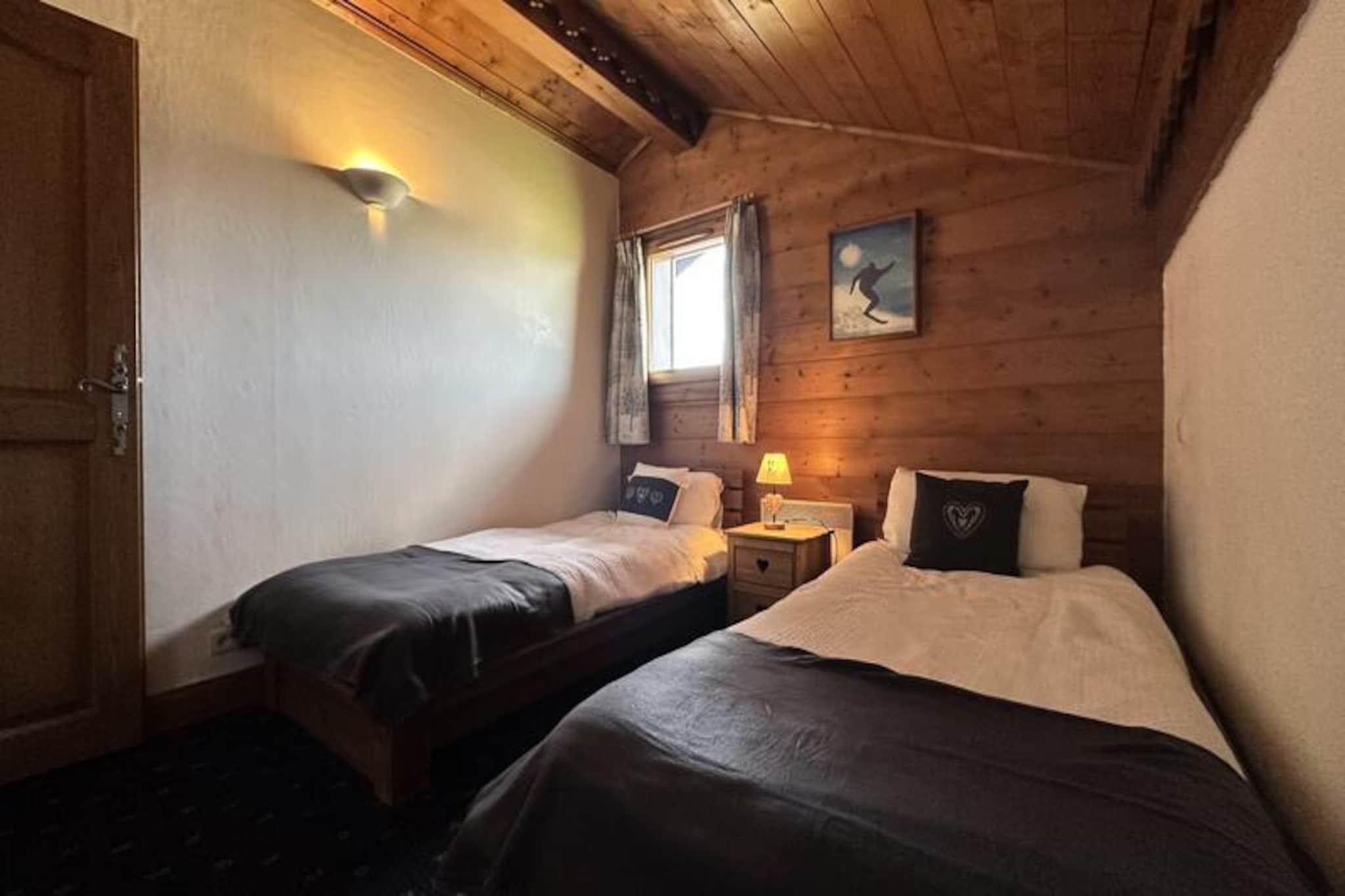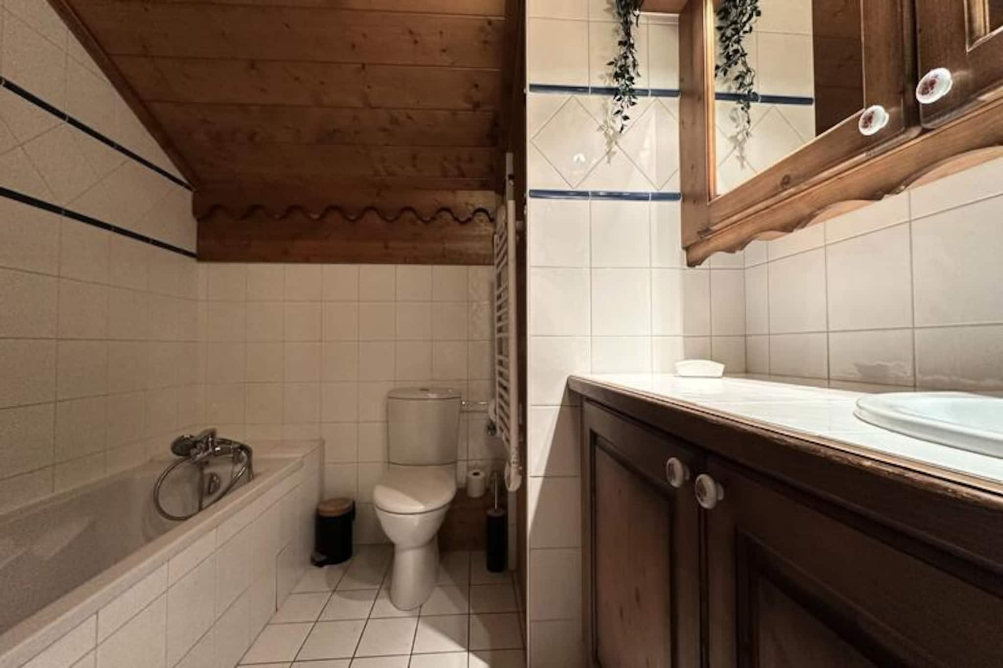 I det fredfyldte Morillon 1100-resort, gemt væk fra den travle snefront, inviterer denne charmerende residens i bjergstil dig til at opleve den sande ånd af Alperne. Med sin harmoniske blanding af træ- og stenarkitektur tilbyder dette fredelige tilflugtssted en perfekt balance mellem autenticitet og komfort, hvilket gør det til et ideelt valg for familier eller vennegrupper, der søger ro midt i fantastiske alpine omgivelser. Uanset om du besøger stedet om vinteren for spændende skiløb eller om sommeren for at udforske frodige stier, lover denne residens en varm og indbydende atmosfære året rundt. \n\nLejligheden er på 79 m² og har komfortabel plads til op til otte gæster fordelt på to etager. Stueetagen har egen indgang, to soveværelser (et ensuite), et badeværelse med badekar, et separat toilet og en rummelig stue/spisestue med et fuldt udstyret køkken. Ovenpå finder du to ekstra soveværelser, et badeværelse og en mezzanin med et hyggeligt siddeområde. Den syd-/østvendte balkon er perfekt til afslapning efter en dag med alpine aktiviteter og tilbyder en betagende udsigt og øjeblikke med ren afslapning. Moderne faciliteter inkluderer køleskab, keramisk kogeplade, opvaskemaskine, ovn, mikrobølgeovn, raclettegrill og meget mere, hvilket sikrer et bekvemt og behageligt ophold. \n\nDenne bolig ligger kun få minutter fra skilifterne og pisterne i skiområdet Grand Massif og tilbyder nem adgang til skiløb og snowboarding i verdensklasse. Om sommeren forvandles regionen til et paradis for vandrere og naturentusiaster med maleriske stier og panoramaudsigter, der venter på at blive opdaget. Den nærliggende landsby tilbyder et udvalg af butikker, restauranter og lokale attraktioner, hvilket bidrager til charmen ved din alpine ferie. \n\nUanset om du søger eventyr eller blot en fredelig ferie, er denne bolig i bjergstil i Morillon 1100 din port til uforglemmelige minder i hjertet af de franske alper.