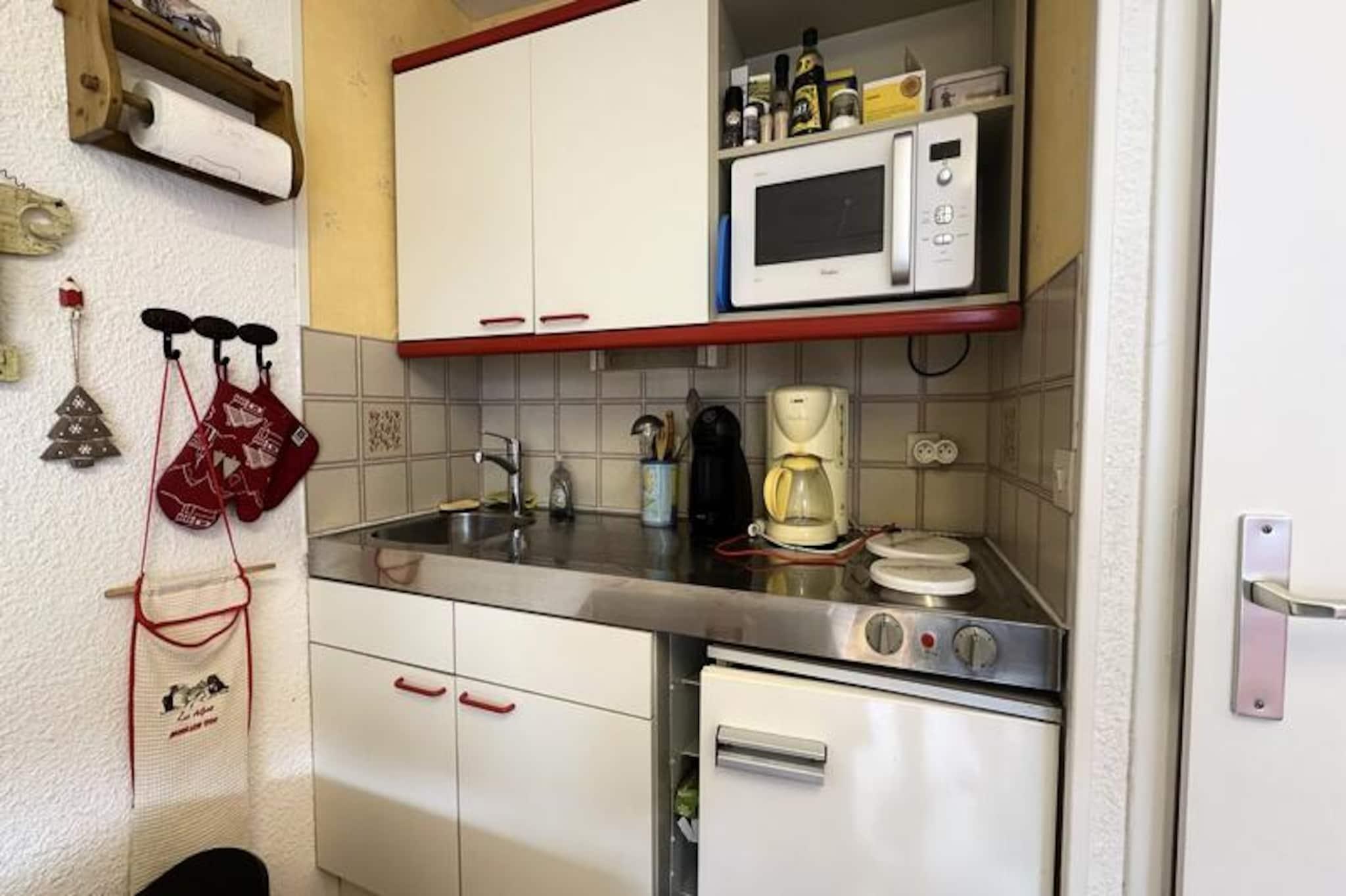 I hjertet af det maleriske Morillon 1100-resort tilbyder Praz des Esserts Residence et dejligt tilflugtssted for bjergentusiaster, der søger både eventyr og ro. Forestil dig at vågne op til den friske alpeluft, træde ud på din vestvendte balkon og nyde den fredfyldte udsigt over de omkringliggende tinder. Dette hyggelige studio, der ligger i stueetagen, er perfekt til par eller små familier, der ønsker at fordybe sig i charmen ved de franske alper. Uanset om du er her for vintersport eller sommervandreture, placerer denne bolig dig i centrum af det hele. \n\nStudioet er omhyggeligt designet til at maksimere komforten inden for dets 18 m² store rum. Det har en sovealkove med køjesenge, en stue med en dobbelt sovesofa og et fuldt udstyret tekøkken komplet med moderne apparater som køleskab, komfur og kombineret ovn/mikrobølgeovn. Brusebadet er kompakt, men funktionelt, hvilket sikrer, at alt hvad du behøver er inden for rækkevidde. Sengelinned er inkluderet, inklusive dyner og puder, og yderligere faciliteter som støvsuger og tørretumbler forbedrer dit ophold. Bemærk venligst, at kæledyr ikke er tilladt, og studioet har en strengt røgfri politik. \n\nBeliggende ved foden af ??pisterne har residensen direkte adgang til skiområdet Grand Massif, et paradis for skiløbere på alle niveauer. Om sommeren forvandles regionen til et paradis for vandrere og mountainbikere med stier, der snor sig gennem betagende landskaber. Det nærliggende fritidscenter tilbyder muligheder for afslapning og familievenlige aktiviteter, mens feriestedets butikker og restauranter kun ligger en kort gåtur væk og giver en smagsprøve på det lokale liv. \n\nUanset om du søger spændende nedkørsler, naturskønne stier eller blot en fredelig flugt, inviterer Praz des Esserts Residence dig til at skabe uforglemmelige minder midt i de franske alpers skønhed.
