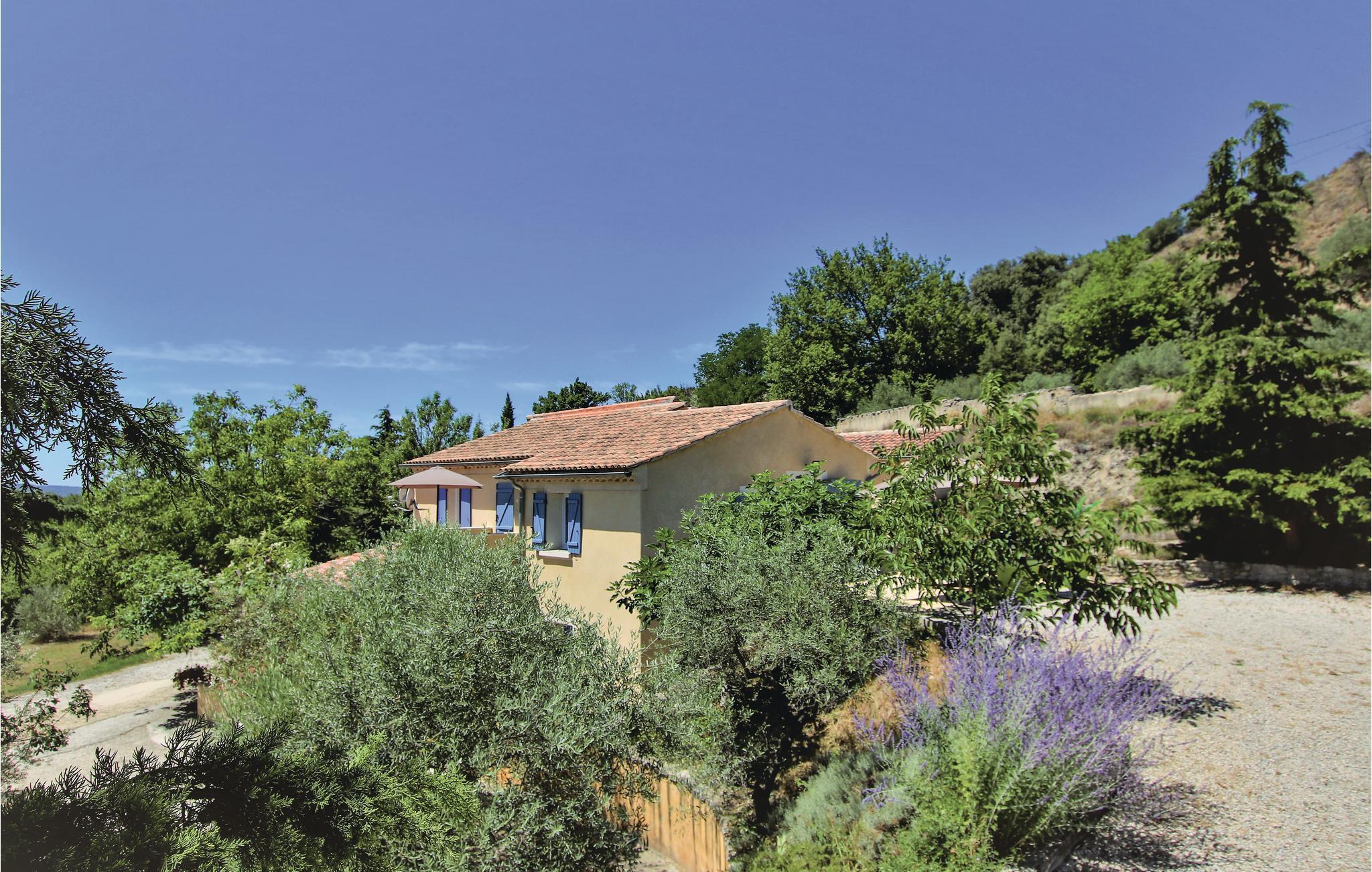 Huset, med det majestætiske Mont Ventoux i den fjerne baggrund, ligger ved foden af ??den charmerende landsby Mormoiron og har ud over poolen også en meget stor have med århundreder gamle træer. Det har flere solrige terrasser og en meget flot udsigt over de landlige omgivelser og Monts du Vaucluse. Ferieejendommen tilbyder en lys og pæn opholdsstemning og overbeviser med et kvalitets- og komfortabelt udstyr.