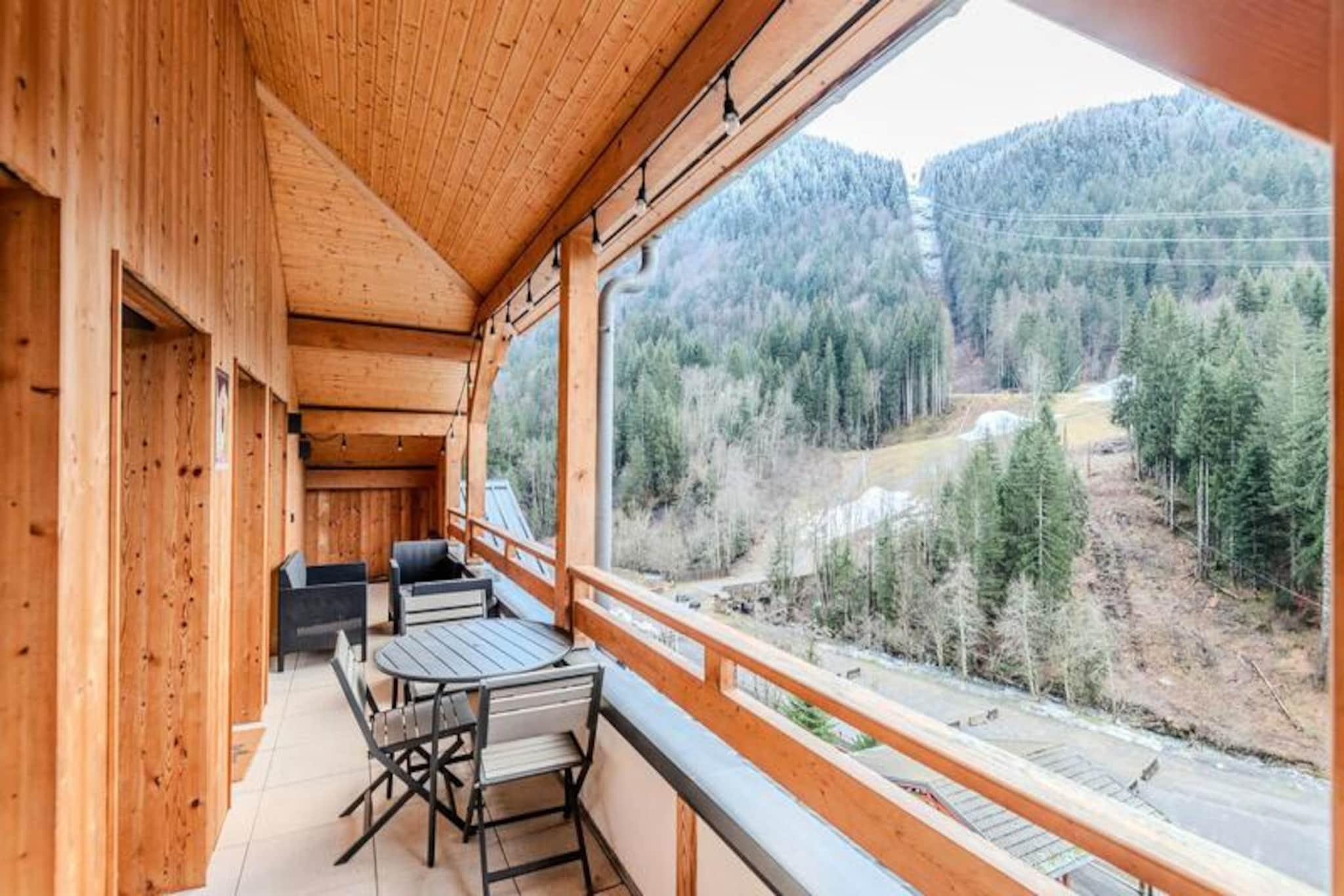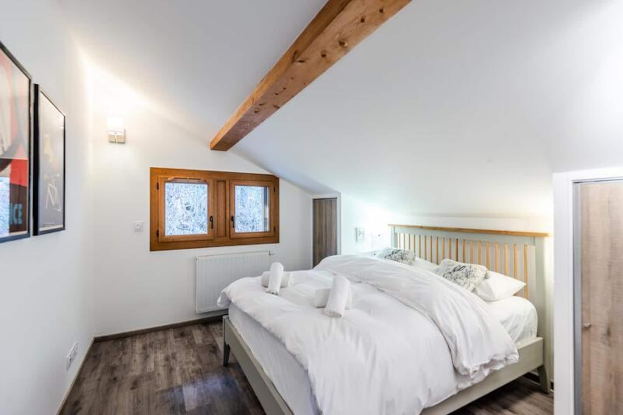 Ejendommen tilbyder sammen med sit rummelige design en 5-værelses penthouselejlighed, der er ideel til at rumme op til 8 gæster. Lejligheden har fire soveværelser: to med dobbeltsenge (150x200 cm), og to med enkeltsenge (80x190 cm). I stuen skaber en hyggelig sofa og en brændeovn en indbydende atmosfære. Der er en stor terrasse med havemøbler, hvor gæsterne kan slappe af og nyde den omkringliggende udsigt. Lejligheden er udstyret med moderne bekvemmeligheder, herunder Wi-Fi, et tv og et skiskab. For familier er en høj stol og en babyseng til rådighed. Boligen er røgfri og kæledyrsfri, hvilket sikrer et fredeligt ophold. Yderligere tjenester såsom slutrengøring (undtagen køkkenet) er inkluderet, og der kræves et depositum før ankomst. Penthouse-lejligheden ligger ved foden af ??Nyon-svævebanen, hvilket gør den til en fremragende beliggenhed for skientusiaster. Det ligger kun 1,5 km fra landsbyens centrum, hvor gæsterne kan udforske butikker, restauranter og andre landsbyfaciliteter. Boligen nyder godt af et nærliggende shuttlestoppested, der giver nem adgang til pisterne og de omkringliggende attraktioner. For dem, der rejser med tog eller fly, er de nærmeste transportstationer og lufthavne let tilgængelige, hvilket sikrer problemfri rejse til og fra området. Denne beliggenhed giver nem adgang til udendørs aktiviteter, hvilket gør det til en ideel base for både vinter- og sommerferier i Morzine. Lejlighedens fuldt udstyrede åbne køkken indeholder moderne apparater såsom induktionskomfur, køleskab, fryser, ovn, opvaskemaskine, mikroovn og kaffemaskine. Gæsterne kan nemt tilberede deres måltider i dette velindrettede rum. Køkkenet suppleres af en spiseplads med udgang til terrasse, perfekt til at nyde måltider udendørs. Derudover har lejligheden en vaskemaskine for nemheds skyld. Selvom kæledyr ikke er tilladt, tilbyder ejendommen en række faciliteter for at sikre et behageligt og behageligt ophold, herunder sengetøj, badeværelsesprodukter og en pose rengøringsmidler.