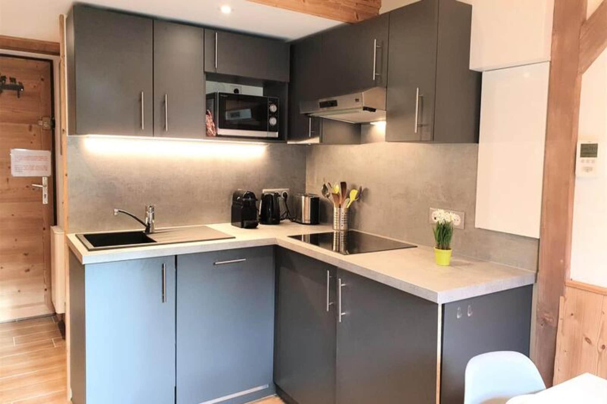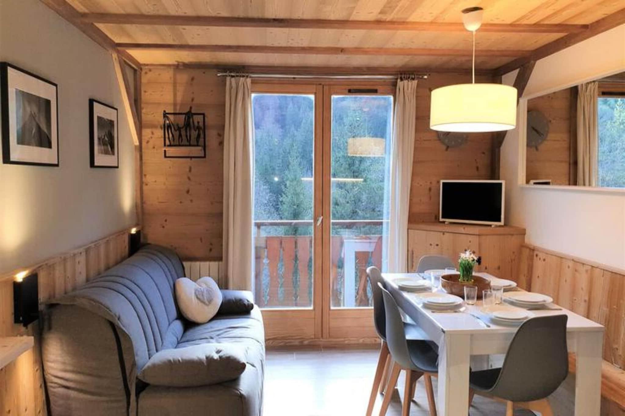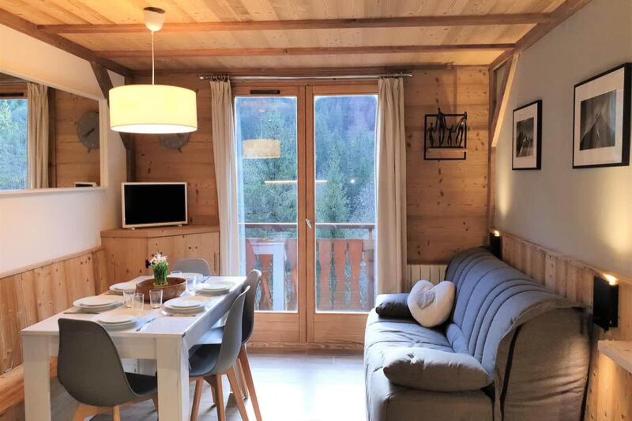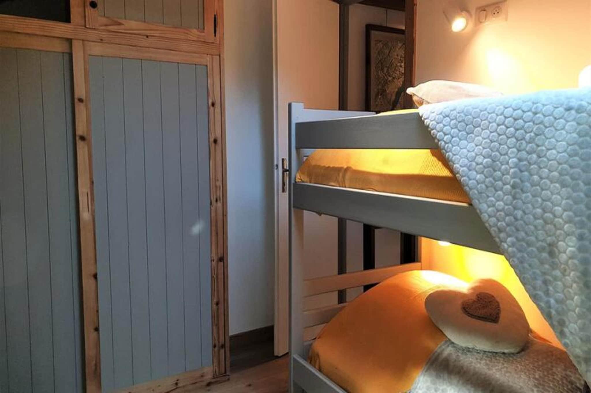 Denne charmerende 2-værelses lejlighed, beliggende på anden sal i Residence La Chamoissière, er ideelt beliggende ved foden af ??pisterne og kun få skridt fra Nyon-svævebanen, der tilbyder nem adgang til skieventyr. Morzines centrum ligger blot 5 minutters kørsel derfra, og der er gratis transport i nærheden for ekstra bekvemmelighed. Lejligheden, der strækker sig over 38 m², kan rumme op til 4 personer og har en hyggelig planløsning med sydvendt eksponering. Stueetagen indeholder en entré med opbevaring, et veludstyret tekøkken, en spiseplads og en stue med sofa, tv og adgang til altan. Ovenpå er der et dobbelt loftsrum, et kabineværelse med køjesenge og et badeværelse med toilet. Yderligere faciliteter inkluderer Wi-Fi, parkeringsplads, skirum og væsentlige tjenester såsom sengetøj og håndklæder. Gæsterne kan også nyde nærhed til Morzines pulserende centrum, der tilbyder en række butikker, restauranter og afterski-aktiviteter. For udendørsentusiaster giver de omkringliggende bjerge rigelige muligheder for vandre- og skiløb hele året rundt.