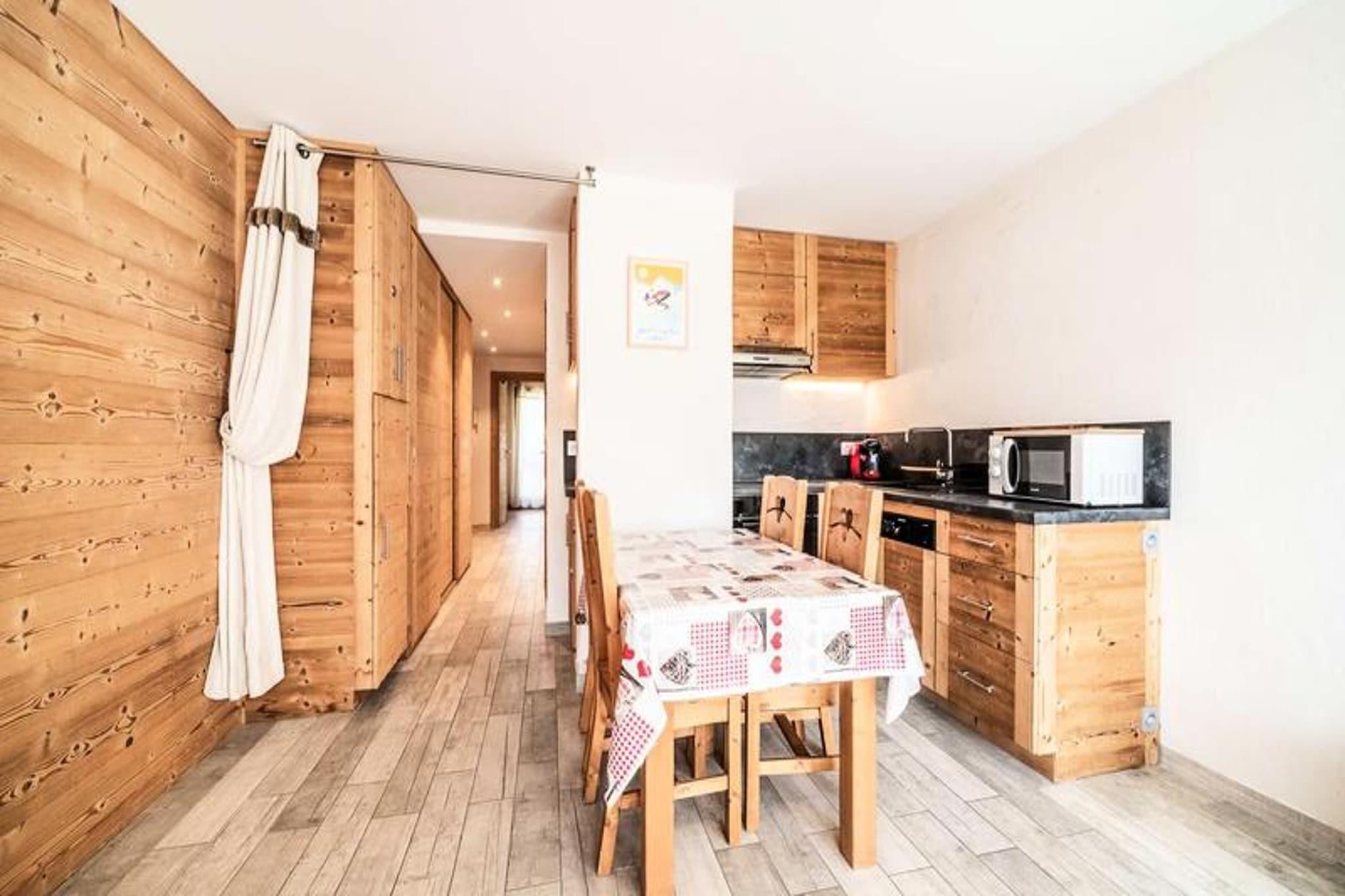 Ejendommen kan sammen med dens funktionelle og hyggelige indretning komfortabelt rumme op til 6 personer. Denne 3-stjernede lejlighed har to soveværelser, herunder en dobbeltseng i det ene og køjesenge med en ekstra enkeltseng i det andet. I stuen er der en sovesofa, ideel til ekstra gæster, og en sydvendt altan med et behageligt uderum. Gæsterne kan nyde et skiskab for nemheds skyld, mens udendørs parkering er tilgængelig, men ikke privat. Indkvarteringen er ikke kæledyrsvenlig, og cykler og ski er ikke tilladt indenfor. Opholdet inkluderer væsentlige tjenester, såsom sengelinned og håndklæder, med slutrengøring. Boligen kan prale af en misundelsesværdig beliggenhed direkte på Pleney-pisterne, hvilket gør den ideel for skientusiaster. Landsbyens centrum ligger kun et stenkast væk og tilbyder nem adgang til butikker, restauranter og underholdning, hvilket sikrer en livlig atmosfære under hele dit ophold. Med sin nærhed til pisterne og landsbyens faciliteter kan gæsterne hurtigt udforske lokalområdet. Derudover er ejendommen et Summer Multipass-medlem, hvilket giver adgang til adskillige sæsonbestemte aktiviteter. For offentlig transport kan de nærmeste bus- og togstationer findes inden for kort afstand, der forbinder området med andre vigtige steder. Lejligheden har et åbent køkken udstyret med alt det nødvendige til at tilberede måltider, herunder komfur, ovn og køleskab. Opholdsområdet er designet til at maksimere komforten med en sovesofa, tv og adgang til balkonen for en afslappende atmosfære. Badeværelset har en vaskemaskine for ekstra bekvemmelighed. Ejendommen er opvarmet overalt, hvilket sikrer varme i de koldere måneder. Gæsterne vil også opleve, at der leveres lagner, håndklæder og dynebetræk sammen med bademåtter.