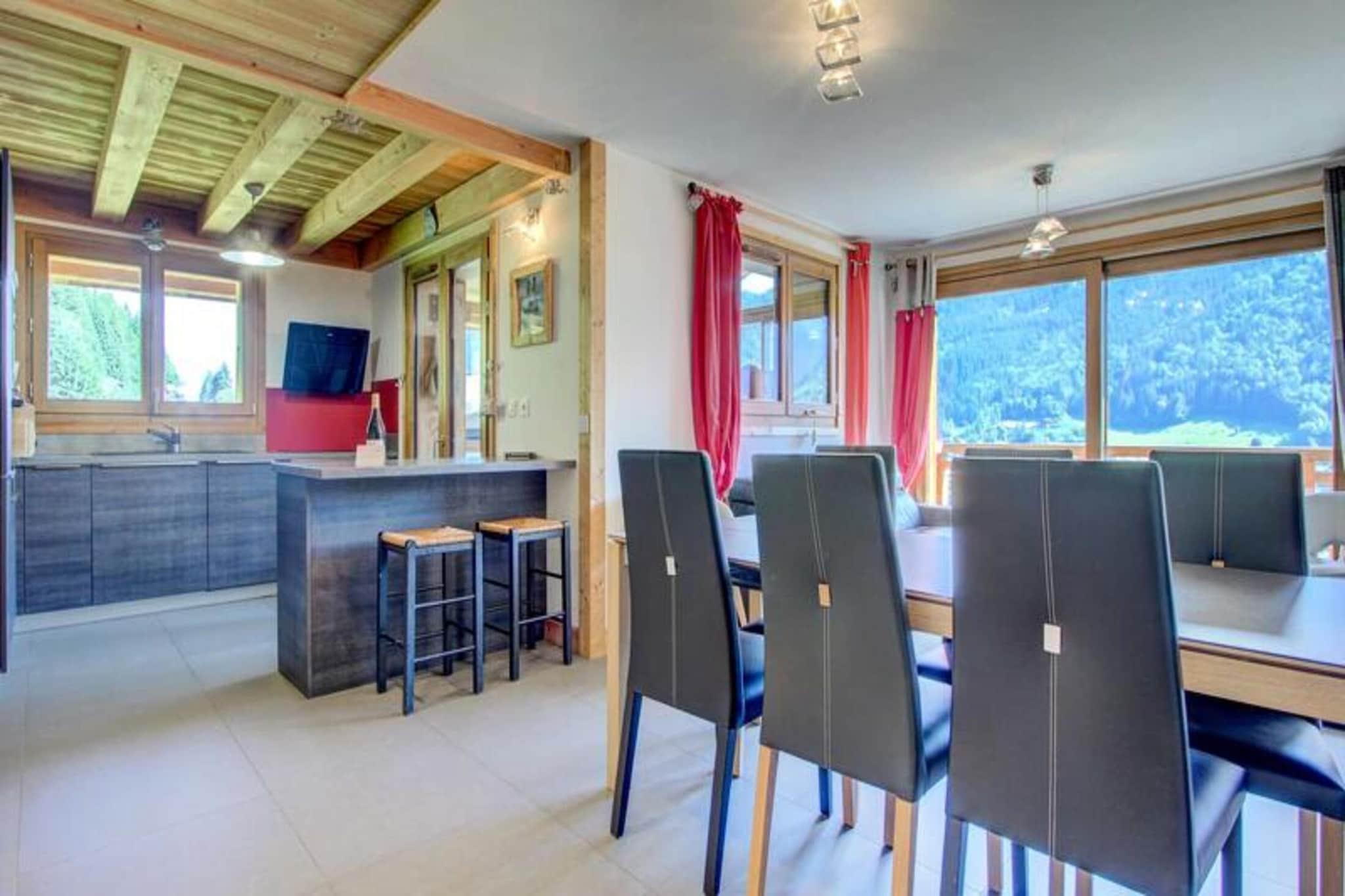 Denne fantastiske lejlighed, beliggende på 2. sal i en avanceret bolig med elevator, tilbyder et luksuriøst ophold lige under Pleney B-skråningen og en kort gåtur fra landsbyens centrum. Det rummelige layout inkluderer en indbydende entré, en lys stue med en sovesofa, der åbner ud til en balkon, og et fuldt udstyret åbent køkken med ovn, mikroovn, opvaskemaskine og køleskab/fryser. Det store soveværelse har en dobbeltseng (140x190cm) og et en-suite brusebadeværelse med toilet samt adgang til en balkon. Det andet soveværelse byder på en dobbeltseng (160x190cm), med en trappe, der fører til et hyggeligt loftrum med to enkeltsenge, ideelt til børn. Lejligheden indeholder også et andet brusebad med toilet. Lejligheden er perfekt placeret for dem, der ønsker at udforske Morzine, med Pleney-gondolen kun få skridt væk for at stå på ski og mountainbike. Om sommeren byder området på vandreture, svømning og adgang til lokale butikker og restauranter, hvilket gør dette til en fantastisk destination året rundt. Husdyr og cykler er ikke tilladt i lejligheden. For ekstra bekvemmelighed tilbyder lejligheden gratis WiFi, en stor sikker privat garage og et Summer Multipass for adgang til lokale aktiviteter. Alle nødvendige tjenester, såsom lagner, håndklæder og slutrengøring er inkluderet.