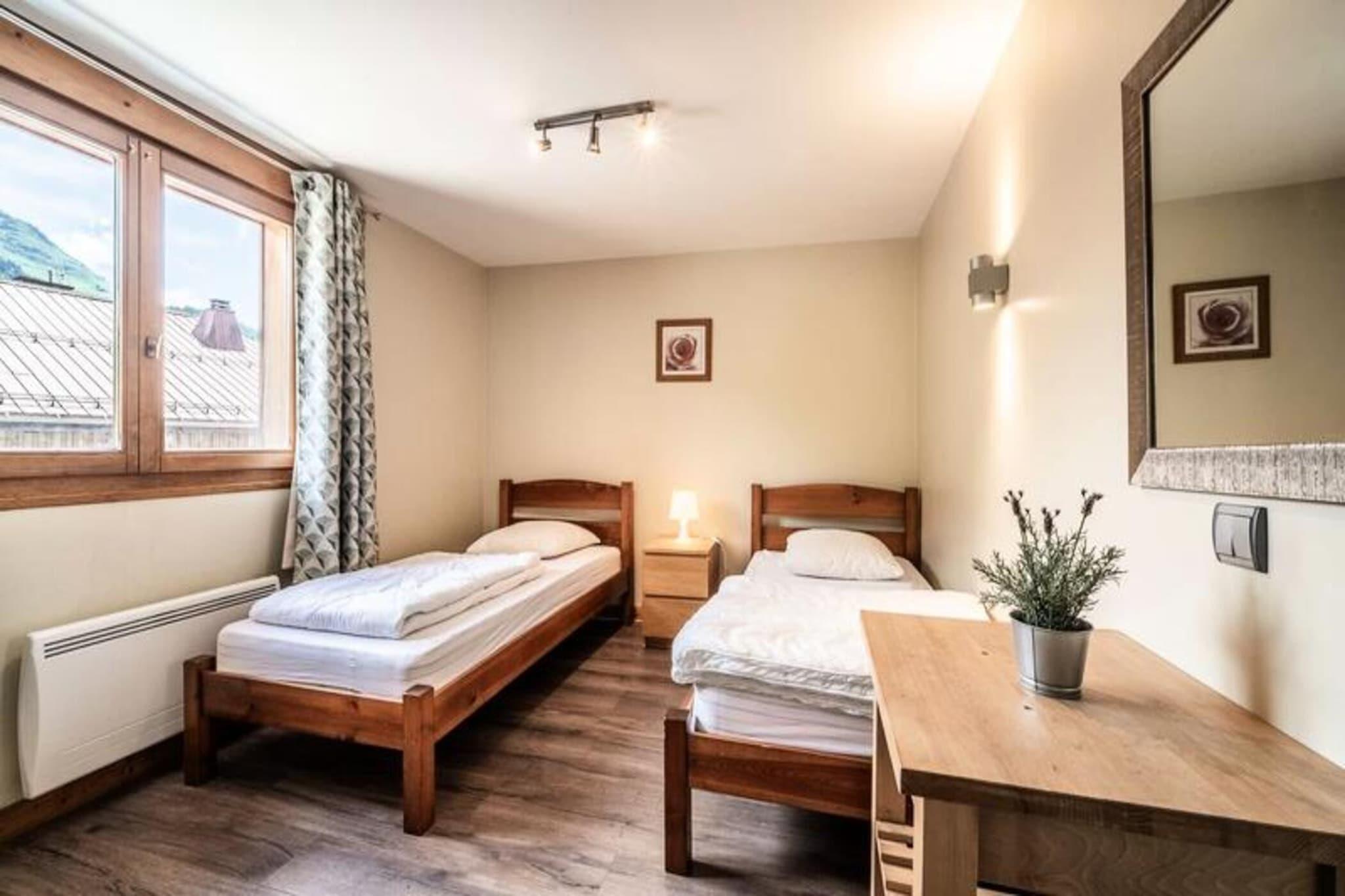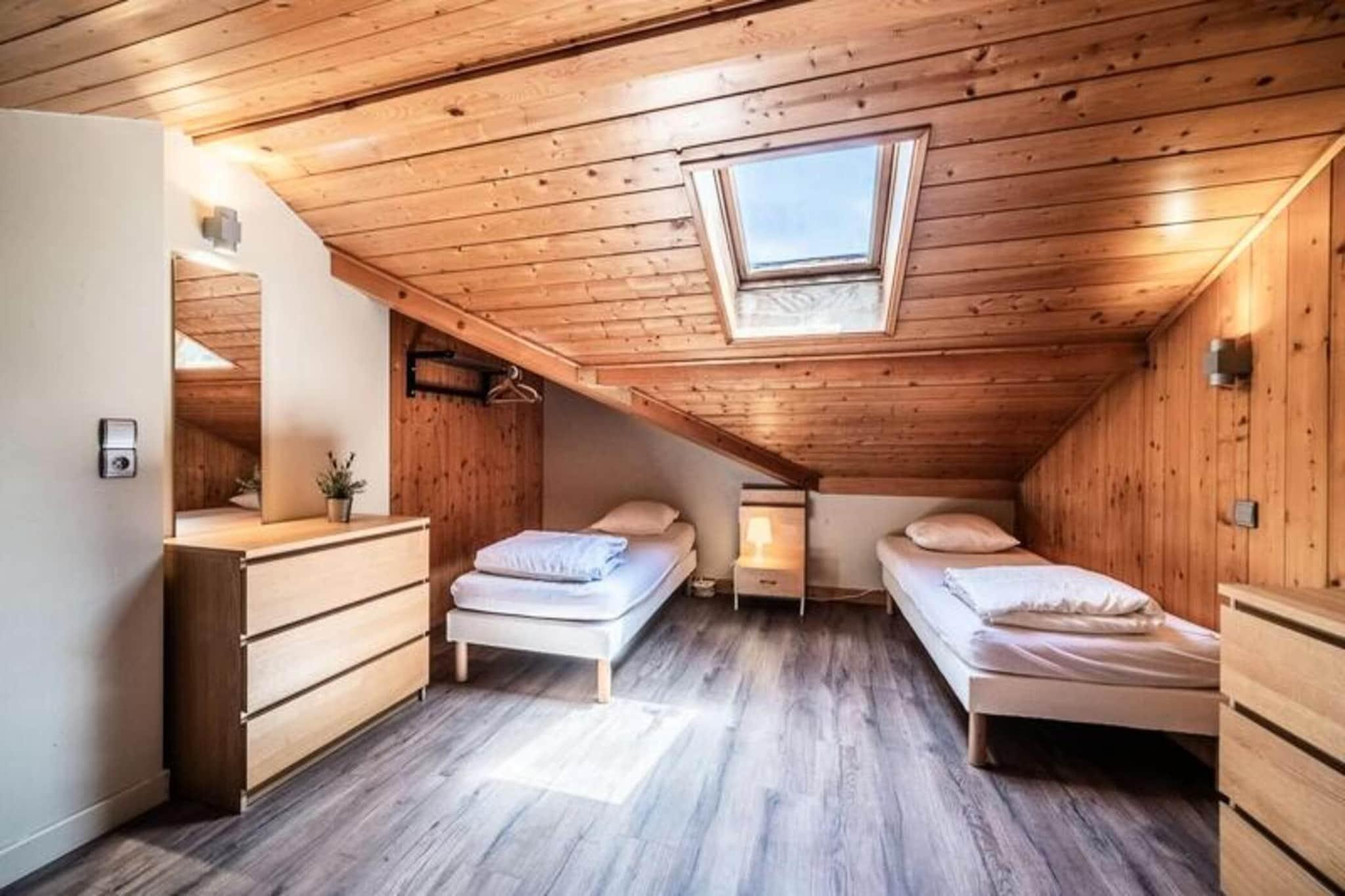 Denne charmerende duplex-lejlighed er beliggende i hjertet af Morzine, kun 300 meter fra Pléney-pisterne, og tilbyder nem adgang til skiløb og udendørs aktiviteter. Som Summer Multipass-medlem kan du nyde yderligere aktiviteter i området i de varmere måneder. Beliggende i det pulserende landsbycentrum finder du butikker, restauranter og caféer inden for rækkevidde, hvilket gør det til en perfekt base for både vinter- og sommereventyr. Lejligheden er beliggende på anden sal i residensen "Cypierre" og har en hyggelig stue med tekøkken, der fører til en balkon med naturskøn udsigt.Den omfatter også et brusebad og et separat toilet. Første sal har et soveværelse med to enkeltsenge, mens ovenpå byder på et større soveværelse med fire enkeltsenge, perfekt til familier eller grupper. Lejligheden er udstyret med Wi-Fi, og lagner, håndklæder og dynebetræk er til rådighed for din komfort. Slutrengøring er inkluderet i lejen. Der er ingen parkering ved ejendommen, men gæster kan bruge et fælles skiskab til opbevaring af deres udstyr (bemærk: ingen cykelopbevaring tilgængelig). Bemærk venligst, at turistskat er et ekstra gebyr.
