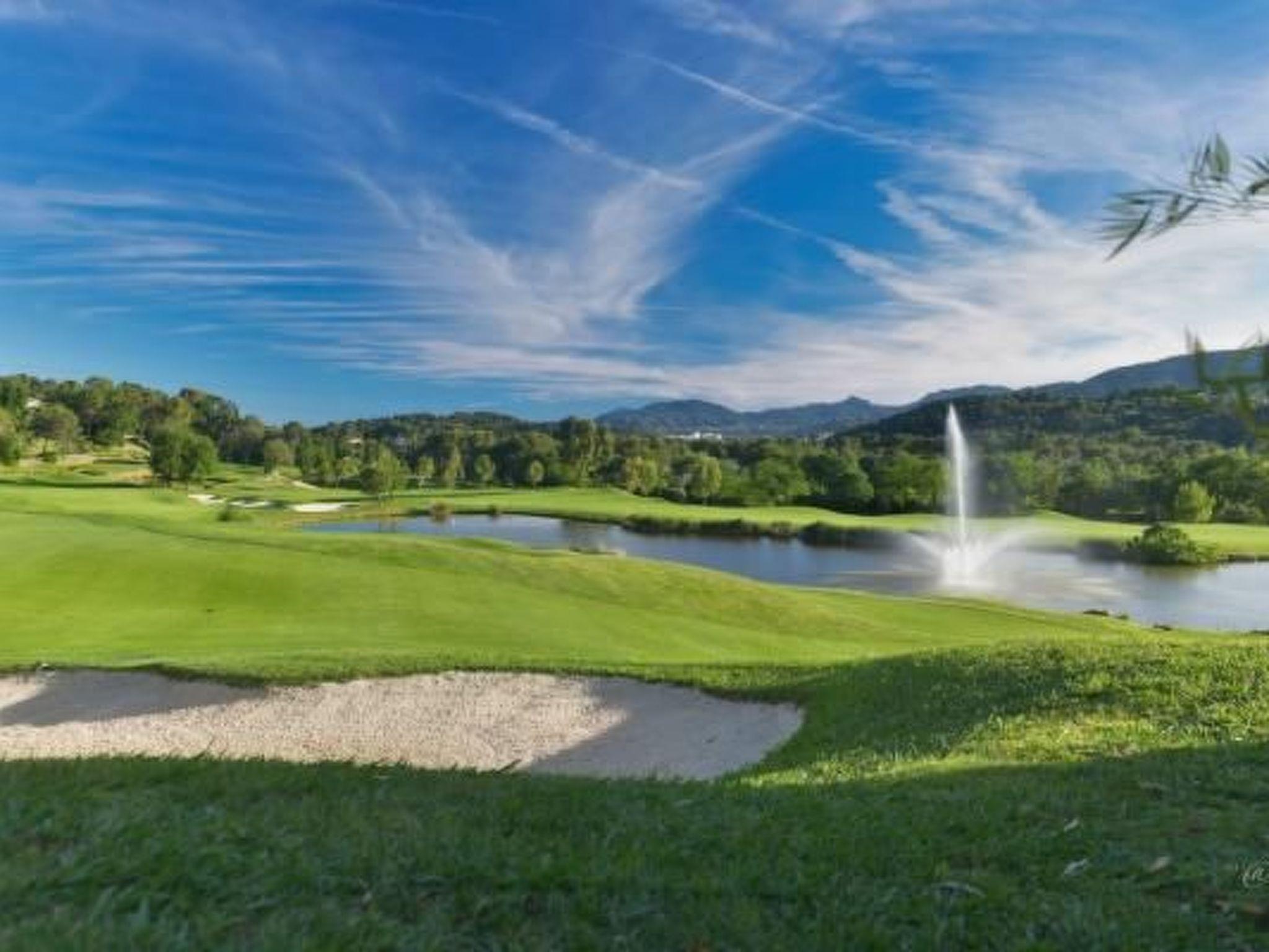 Vacation where Picasso lived:The modern holiday flat with 81 m² living space (including 15 m² covered terrace) and 130 m² private garden (not "dog-proof" enclosed) is part of the wonderfully green residence Les Bastides du Golf. Both the tennis court and the large, very well-maintained swimming pool with comfortable sunbeds, parasols and showers are only a few steps (< 30 m) away from the flat.The residence is situated between the fashionable film festival city of Cannes and the more tranquil Mougins with its spectacularly picturesque old town and first-class restaurants. Pablo Picasso lived in both towns for many years, which is why Mougins "vieux village" is adorned with a large Picasso sculpture and an art museum, in addition to countless works of art and galleries. The beautiful sandy beach of the Bay of Cannes is only 5 km away, as is the vibrant (night) life of the coastal city.Above and next to the flat are also flats with guests or owners who want to relax in peace, especially in the evenings and at night. Therefore, please understand that we cannot accept groups of young people. Please state the age of all travellers when making your booking so that it can be answered quickly. The deposit (see prices) must be paid in cash at the Royal Real Estate Agency and will be returned immediately upon departure if everything is in order.It is located five hundred metres linear distance and within easy walking distance, right next to the chic clubhouse of the award-winning Royal Mougins Golf & Spa Resort with wonderful views. This is open to all for a visit to the spa or restaurant in a relaxed atmosphere (without "dress code" or similar). Tenants of the holiday flat with a good handicap (see pictures for details) can even play at the golf club at reduced rates.