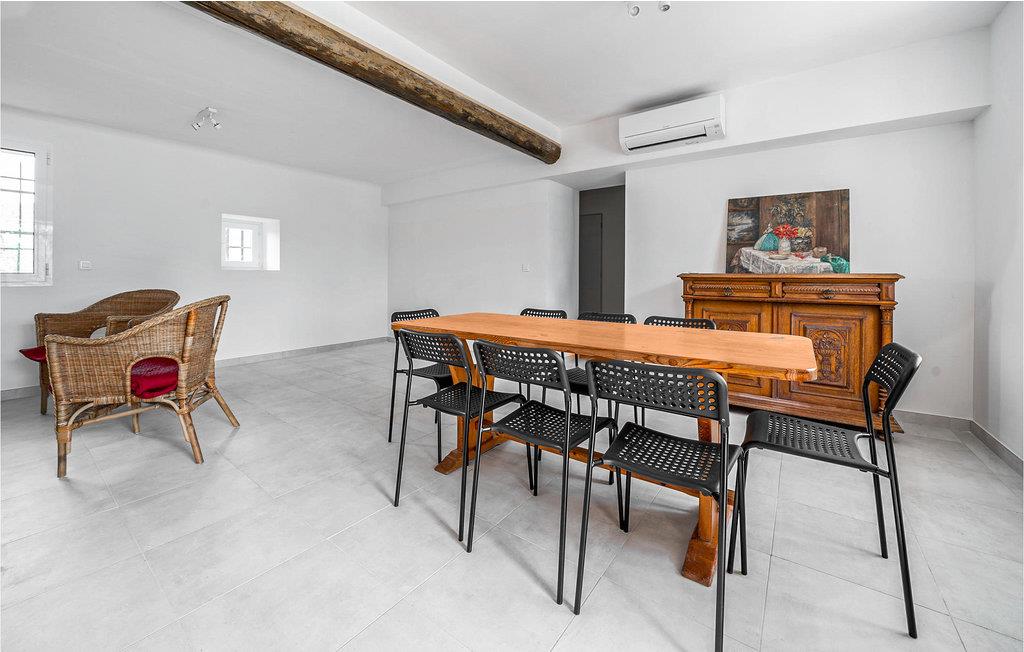 Nyd Provences atmosfære i dette lyse feriehus, som byder velkommen med praktiske møbler. Nyd rummene i to etager og brug stueetagen som familiemødested, for den åbne stue er optimal til at svinge træskeer, mens børnene leger ved spisebordet. Saml jer på terrassen til udendørs spisning og læg planer for jeres ture og aktiviteter.