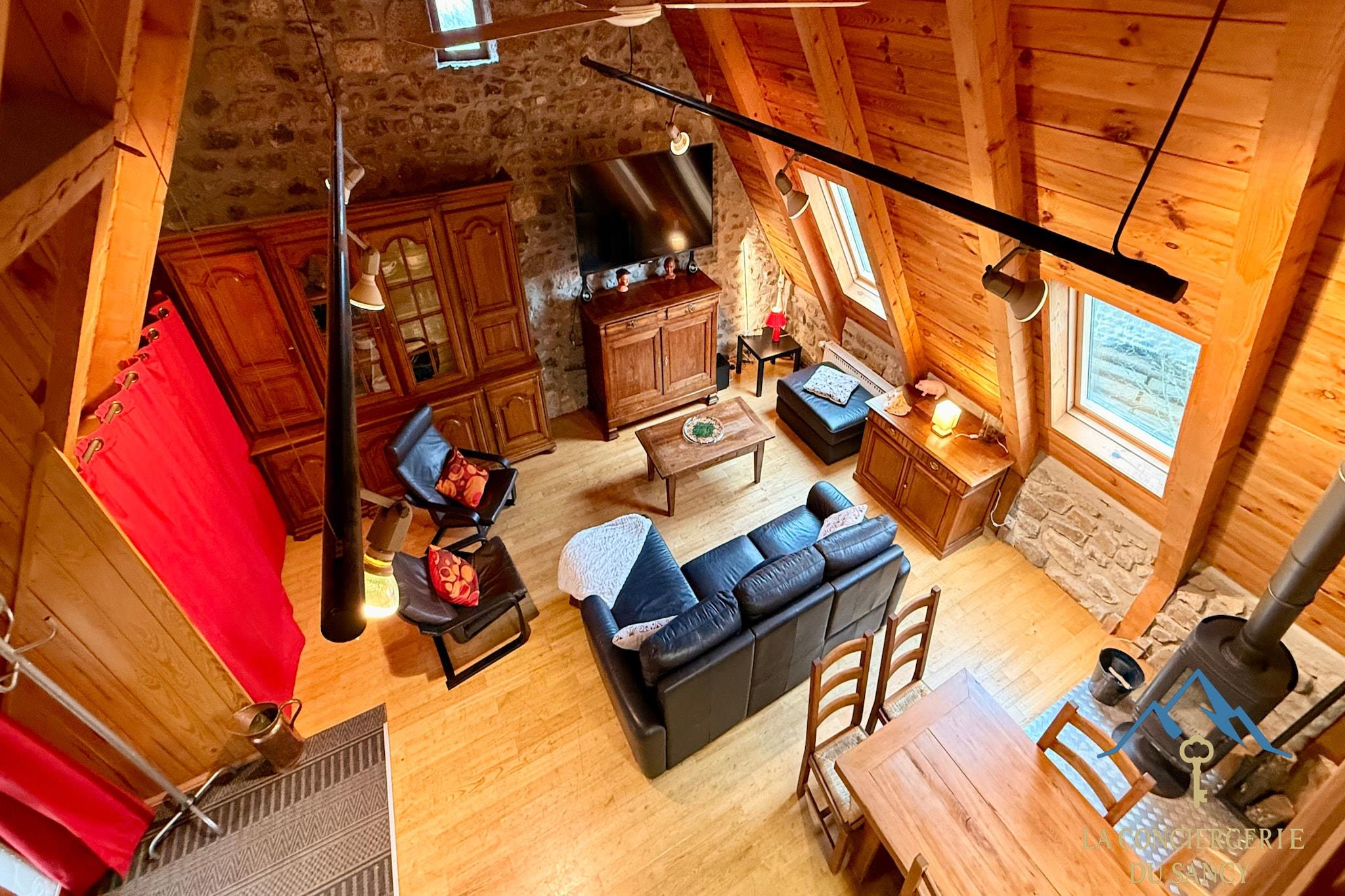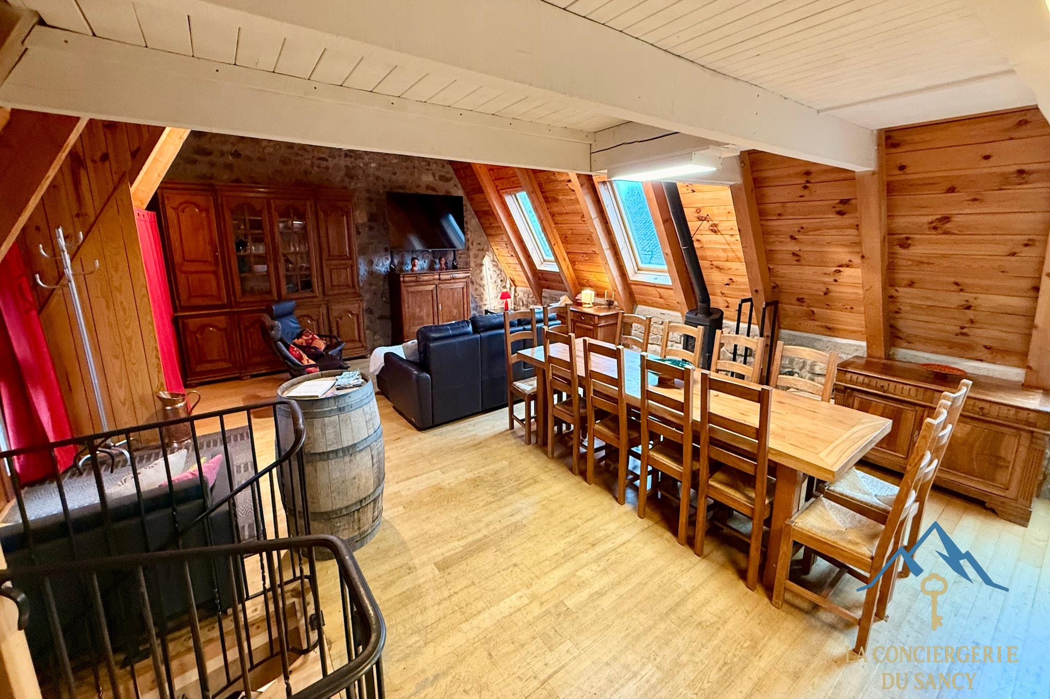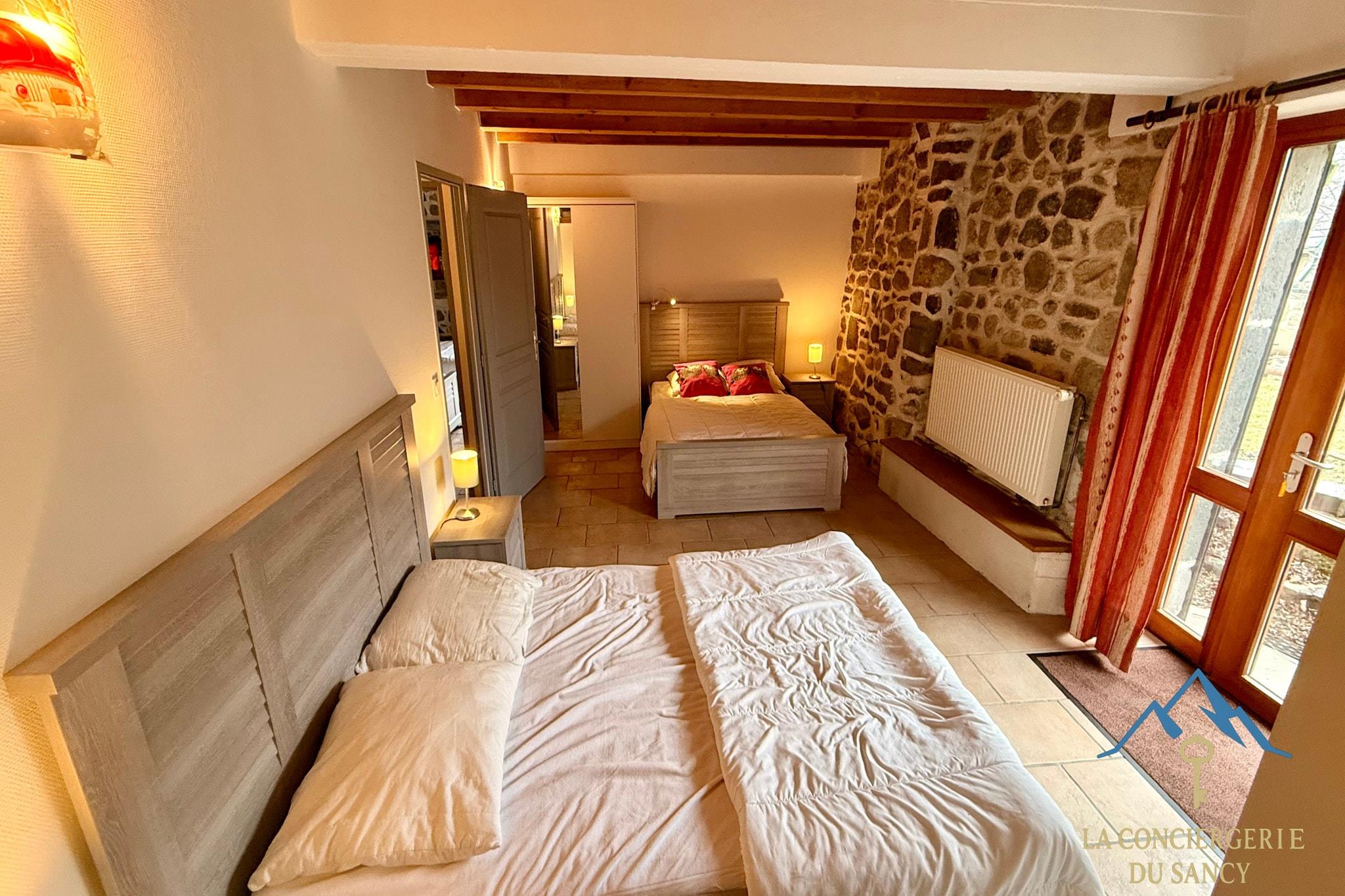 Denne rummelige bjerghytte i Murat-le-Quaire er ideel til store familier eller grupperejser og kan komfortabelt rumme op til tolv gæster i fredelige omgivelser nær La Bourboule. Den er perfekt til familietræf eller aktive ferier og kombinerer autentisk landlig charme med generøs boligplads. Indvendigt har hytten plads til op til 12 gæster. I stueetagen er der to soveværelser – et med to dobbeltsenge og et med tre dobbeltsenge – samt et badeværelse med brusebad og separat toilet. Hovedetagen har en lys åben stue med køkken, spiseplads og opholdsstue samt et ekstra badeværelse med brusebad og toilet. En mezzanin har en dobbeltseng, der vender ud mod stuen. Det fuldt udstyrede køkken har køleskab med fryser, ovn, opvaskemaskine og kaffemaskine samt et stort spisebord til måltider i fællesskab. Udenfor er der en lille tilstødende have med picnicbord og kulgrill. Omgivet af naturskønne omgivelser tilbyder ejendommen udendørsarealer, der er ideelle til at nyde den friske bjergluft og sociale sammenkomster. Der er privat parkering på stedet, hvilket gør det nemt at komme til med flere biler. Beliggende tæt på vandrestier, cykelruter og skiområder tilbyder hytten direkte adgang til Sancy-massivets attraktioner året rundt. Uanset om du planlægger vintersport eller sommereventyr, er dette bjergresort et komfortabelt udgangspunkt for mindeværdige grupperejser.