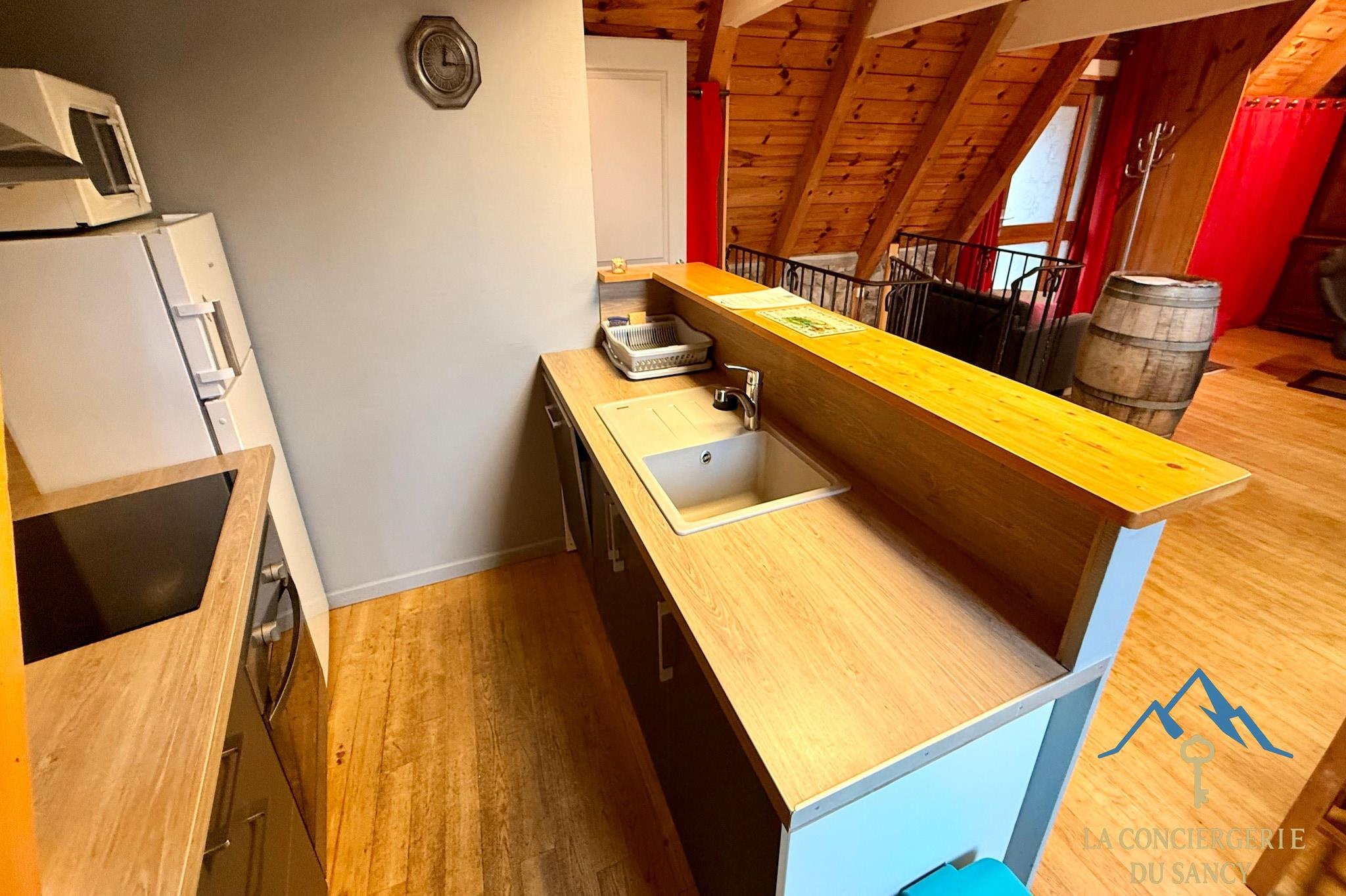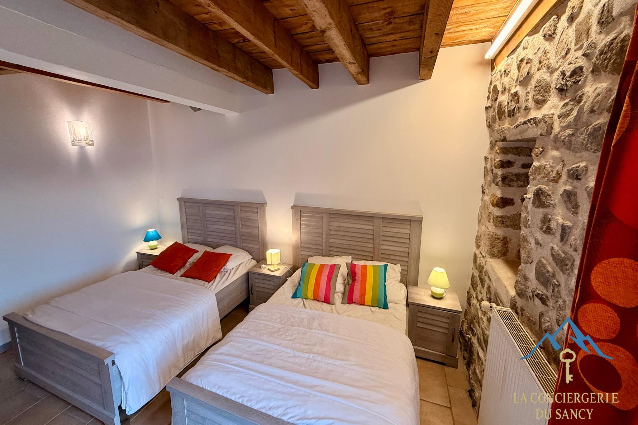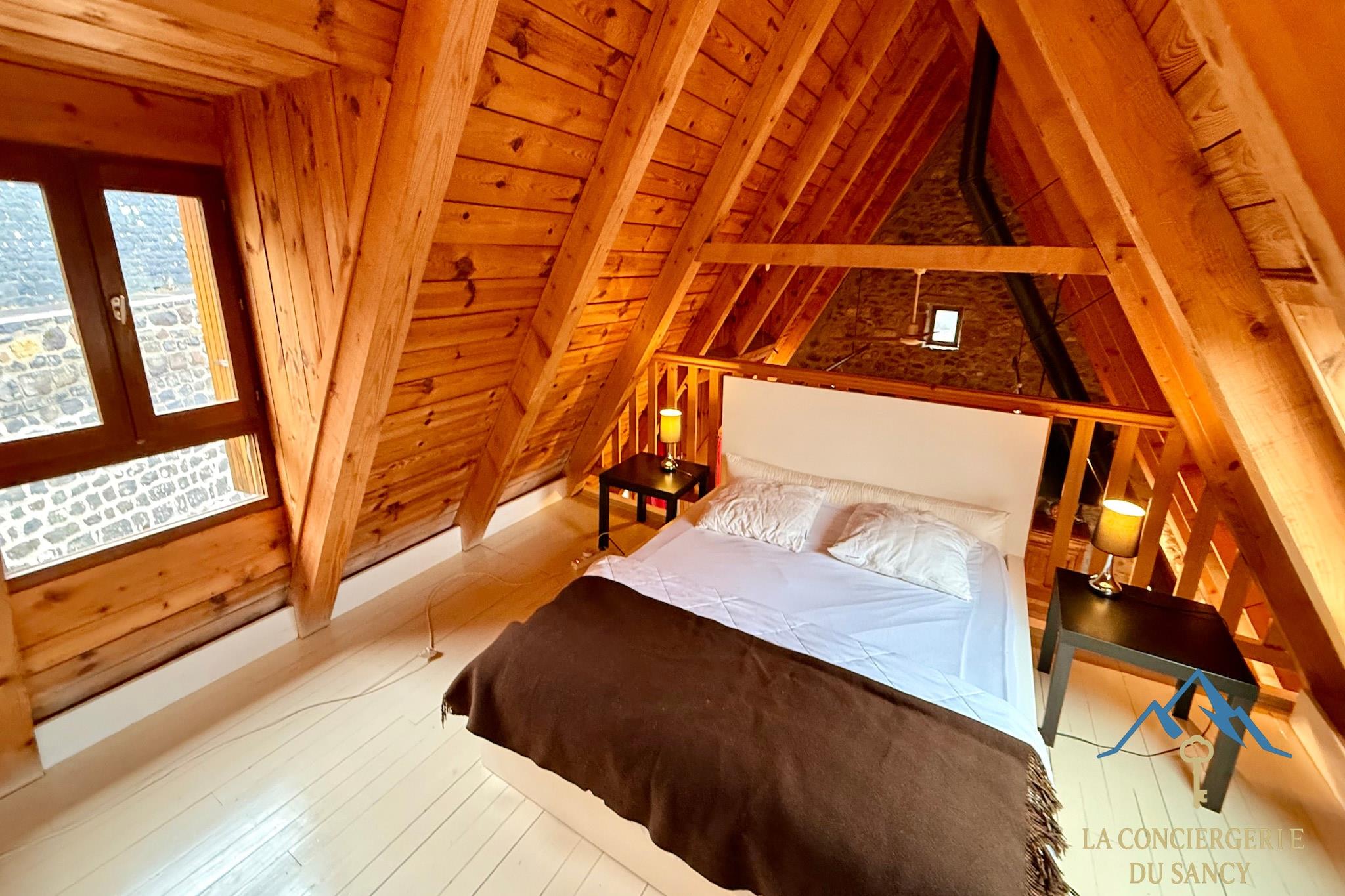Denne rummelige bjerghytte i Murat-le-Quaire er ideel til store familier eller grupperejser og kan komfortabelt rumme op til tolv gæster i fredelige omgivelser nær La Bourboule. Den er perfekt til familietræf eller aktive ferier og kombinerer autentisk landlig charme med generøs boligplads. Indvendigt har hytten plads til op til 12 gæster. I stueetagen er der to soveværelser – et med to dobbeltsenge og et med tre dobbeltsenge – samt et badeværelse med brusebad og separat toilet. Hovedetagen har en lys åben stue med køkken, spiseplads og opholdsstue samt et ekstra badeværelse med brusebad og toilet. En mezzanin har en dobbeltseng, der vender ud mod stuen. Det fuldt udstyrede køkken har køleskab med fryser, ovn, opvaskemaskine og kaffemaskine samt et stort spisebord til måltider i fællesskab. Udenfor er der en lille tilstødende have med picnicbord og kulgrill. Omgivet af naturskønne omgivelser tilbyder ejendommen udendørsarealer, der er ideelle til at nyde den friske bjergluft og sociale sammenkomster. Der er privat parkering på stedet, hvilket gør det nemt at komme til med flere biler. Beliggende tæt på vandrestier, cykelruter og skiområder tilbyder hytten direkte adgang til Sancy-massivets attraktioner året rundt. Uanset om du planlægger vintersport eller sommereventyr, er dette bjergresort et komfortabelt udgangspunkt for mindeværdige grupperejser.