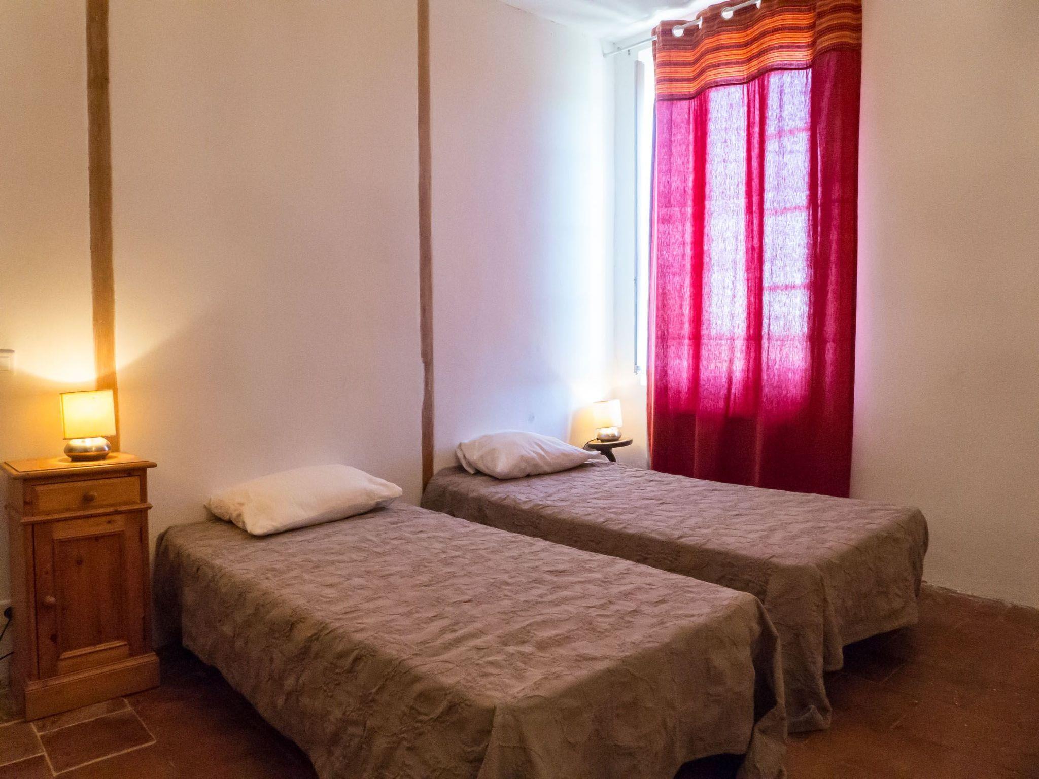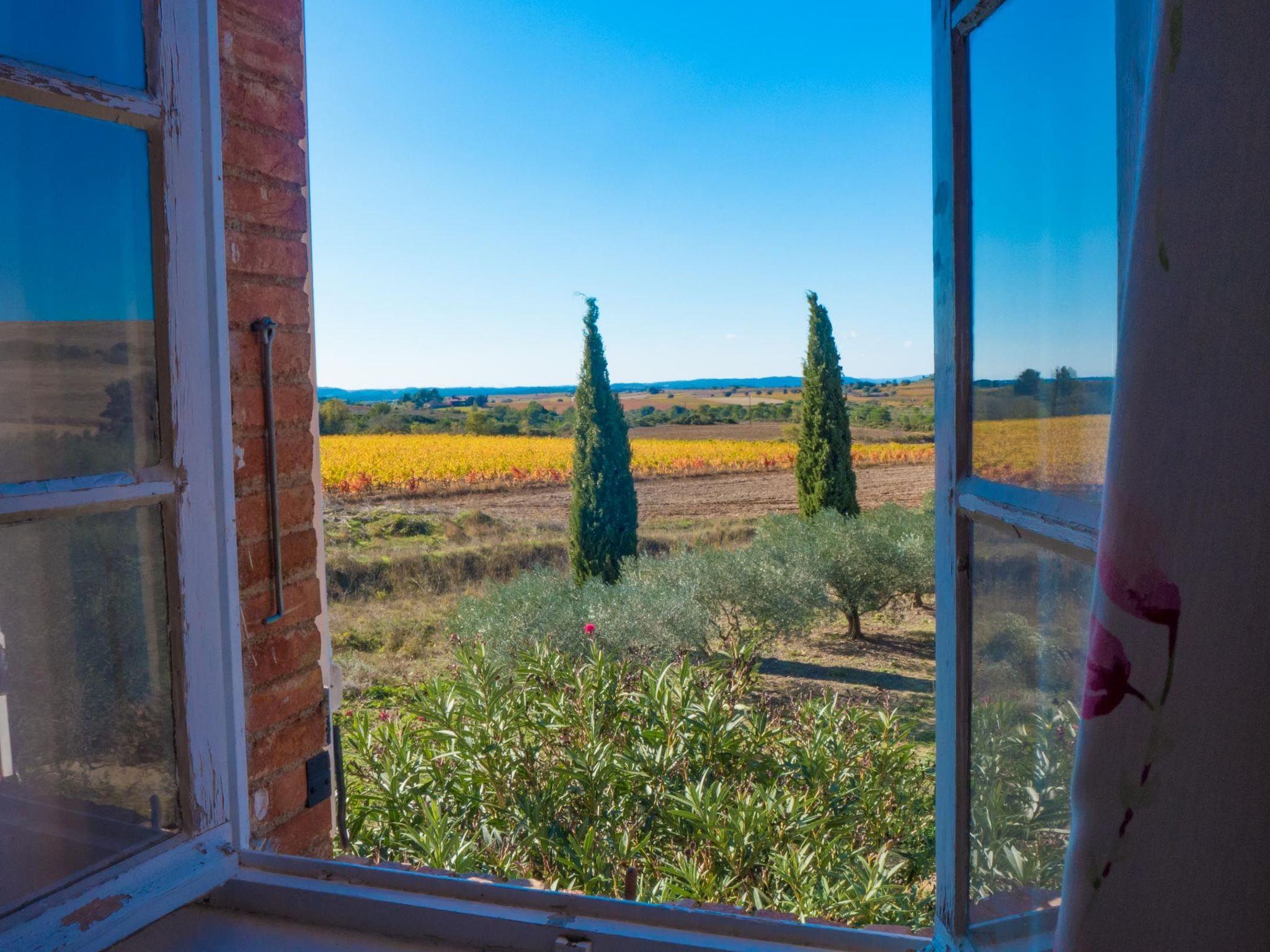 This charming gîte is located on a working wine estate in Murviel les Béziers. This large property, part of which has been converted into 2 gîtes, is surrounded by vineyards and olive groves in a calm, peaceful setting. It's the perfect place to relax and unwind, an invitation to immerse yourself in the heart of nature, with plenty of opportunities for walks, particularly in the nearby Parc Régional du Haut Languedoc, renowned for its hiking trails. There's also a white-water sports centre nearby. And if you're a history buff, all you have to do is venture into the surrounding medieval villages, renowned for their circulades. The 110 m² gîte sleeps 6, with a fully-equipped west-facing terrace. The views over the surrounding countryside are exceptional. The swimming pool area, which can be shared, is in a quiet location, just a few dozen metres from the gîte and surrounded by nature. It has an American beach ideal for small children, with 0.20m of water. The gîte has been tastefully decorated. The noble materials used (wood, stone, terracotta, etc.) and the warmth of the colours chosen give this gîte a great deal of charm, character and conviviality. Ground floor: large 50 m² living room with lounge, dining area and open-plan kitchen, separate WC. 1st floor: 1 bedroom with 160cm bed and en-suite bathroom and separate WC, 1 bedroom with 160cm bed and en-suite shower room and separate WC and 1 bedroom with 2 single beds and en-suite shower room and separate WC. Uninterrupted view of the surrounding hills. The owner speaks English.