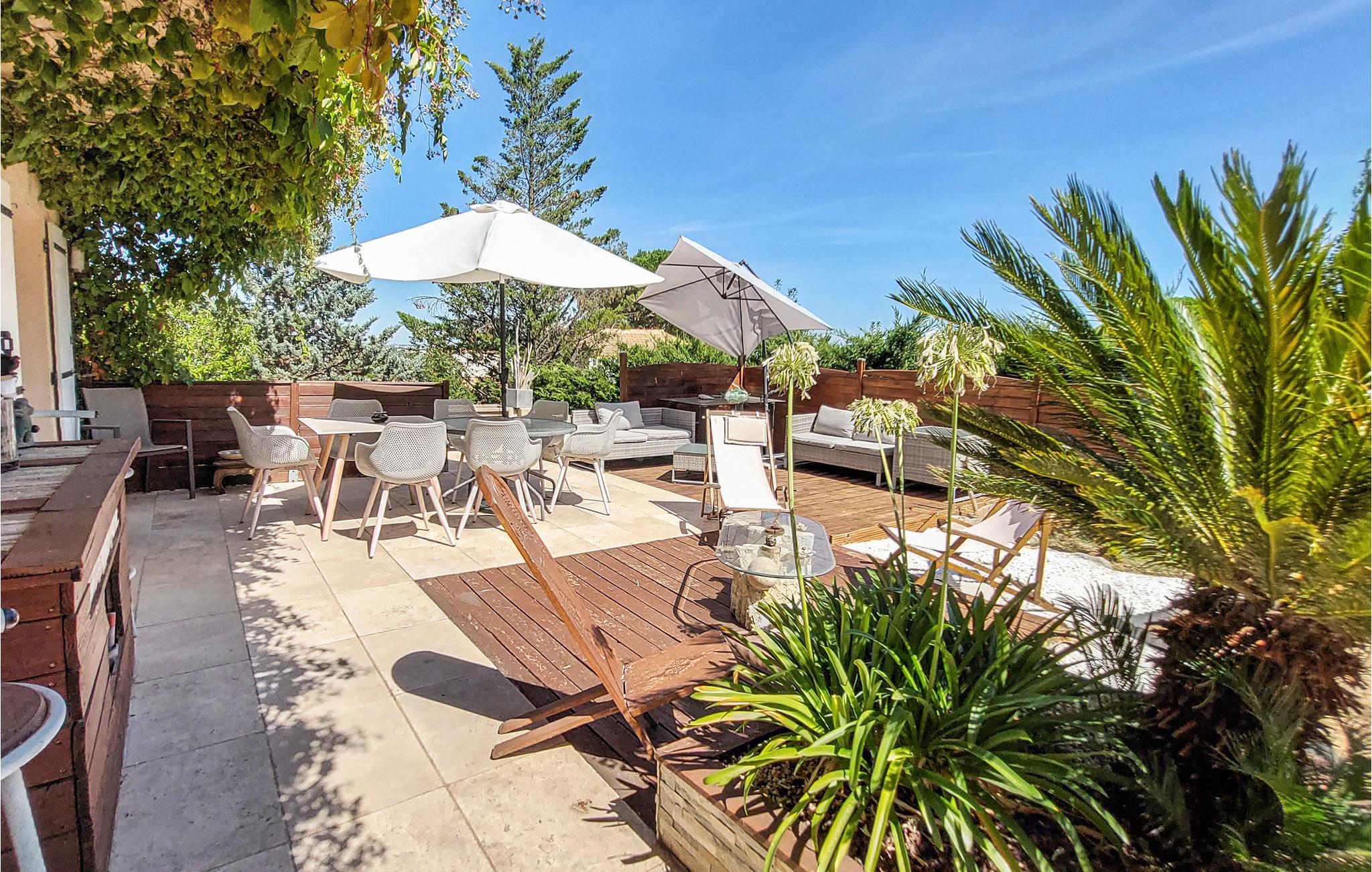 Glæd jer til en god ferie med familien og jeres gode venner. Huset ligger i et roligt område og giver jer masser af plads at brede jer på, også med en stor gruppe. Den store stue giver jer mulighed for at slappe af sammen på sofaerne. I kan også slappe af på solterrassen, hvor der står liggestole og loungemøbler klar. Sæt jer med dagens måltider samme sted og læg en plan for jeres udflugter og aktiviteter.