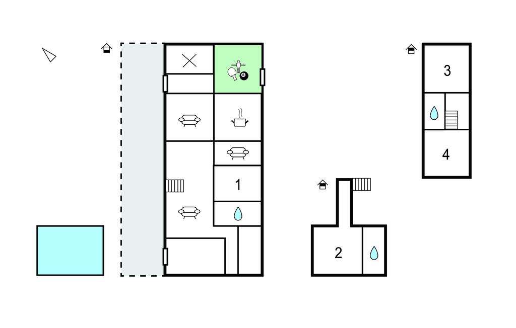 Det velholdte udendørsområde byder på ideelle forhold til timevis af solbadning ved den skønne pool. Nyd jeres morgenmad på den åbne terrasse og glæd jer til stemningsfulde grillaftener i det fri.