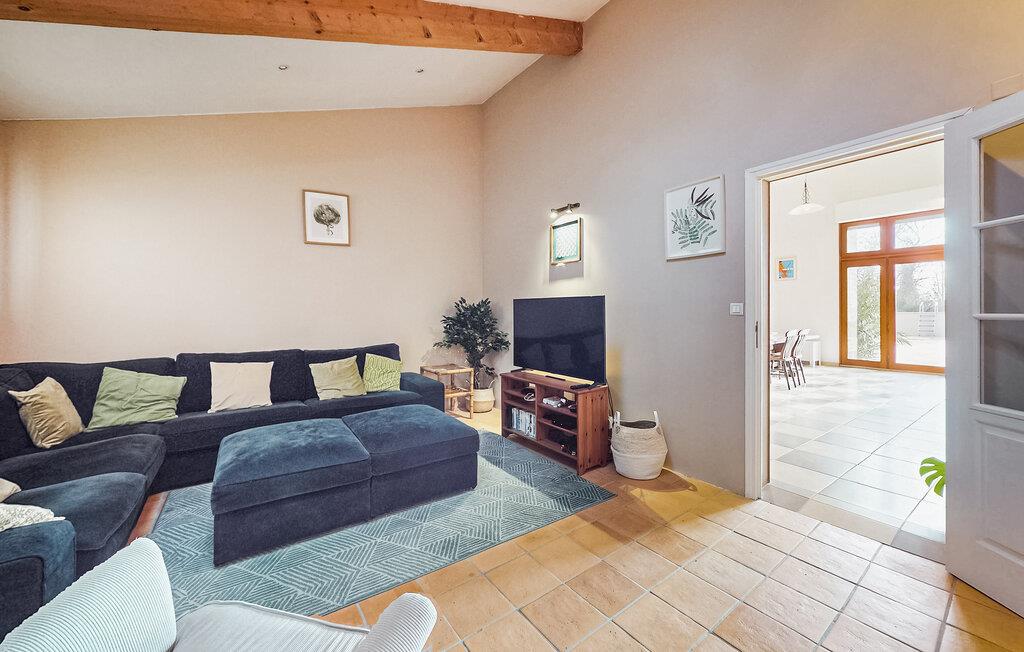 Dette nænsomt restaurerede landsted kombinerer rustik elegance med moderne komfort og tilbyder masser af plads til at tilbringe en afslappende ferie med en større familie. Vær vært for madlavningsarrangementer i det rummelige køkken og fejr måltider i det åbne opholdsområde. Spil billard, stream jeres yndlingsserie eller læn jer tilbage i en af ??de hyggelige sofaer til en spilleaften.
