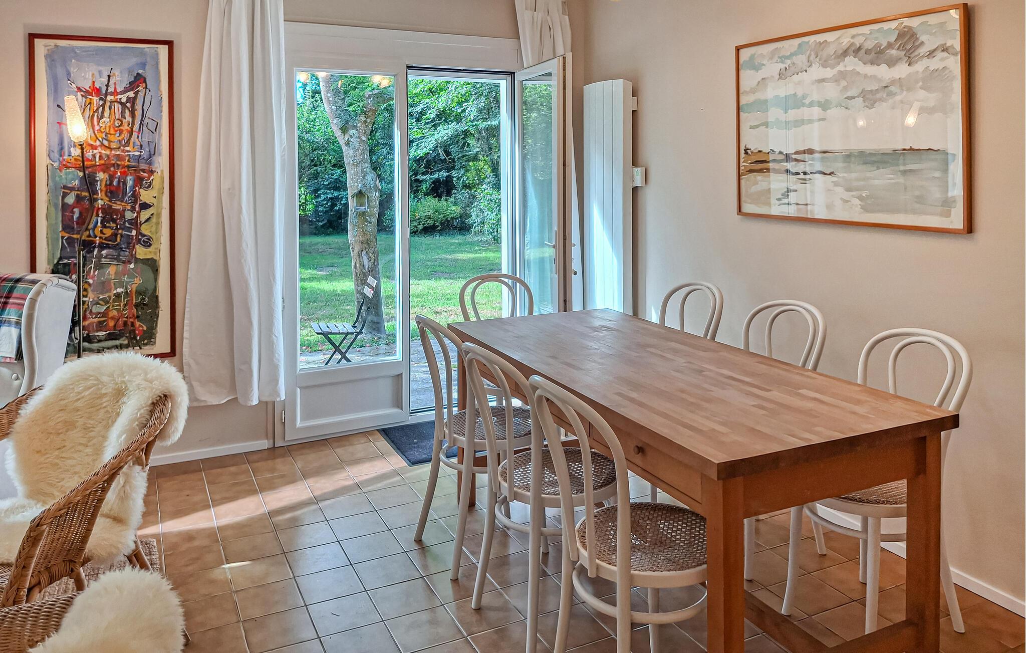 Nyd en afslappende ferie i dette smukke feriehus i rolige omgivelser. Træd indenfor og lad jer betage af den hyggelige og venlige atmosfære i dette rummelige feriehus. Fremstil jeres yndlingsretter sammen, som I kan nyde ved det indbydende spisebord. Planlæg jeres aktiviteter her, og slap af med en spilleaften efter en dag udenfor. I vil bo på en stor, grøn naturgrund med modne træer og afsondrede steder til læsning og afslapning. Se børnene lege, mens I nipper til kaffe på den åbne terrasse eller snakker over et glas cider i en liggestol. Svøm på maleriske atlanterhavsstrande som Plage de Tahiti eller Plage de Raguenez, vandr ad toldbetjentenes rute langs kysten, slentr gennem den charmerende kunstnerlandsby Pont-Aven, prøv bretonske specialiteter på traditionelle restauranter, og fyld op med frisk fisk på livlige markeder. Tag en bådtur til Île de Groix, og oplev de imponerende megalitiske steder i Carnac.