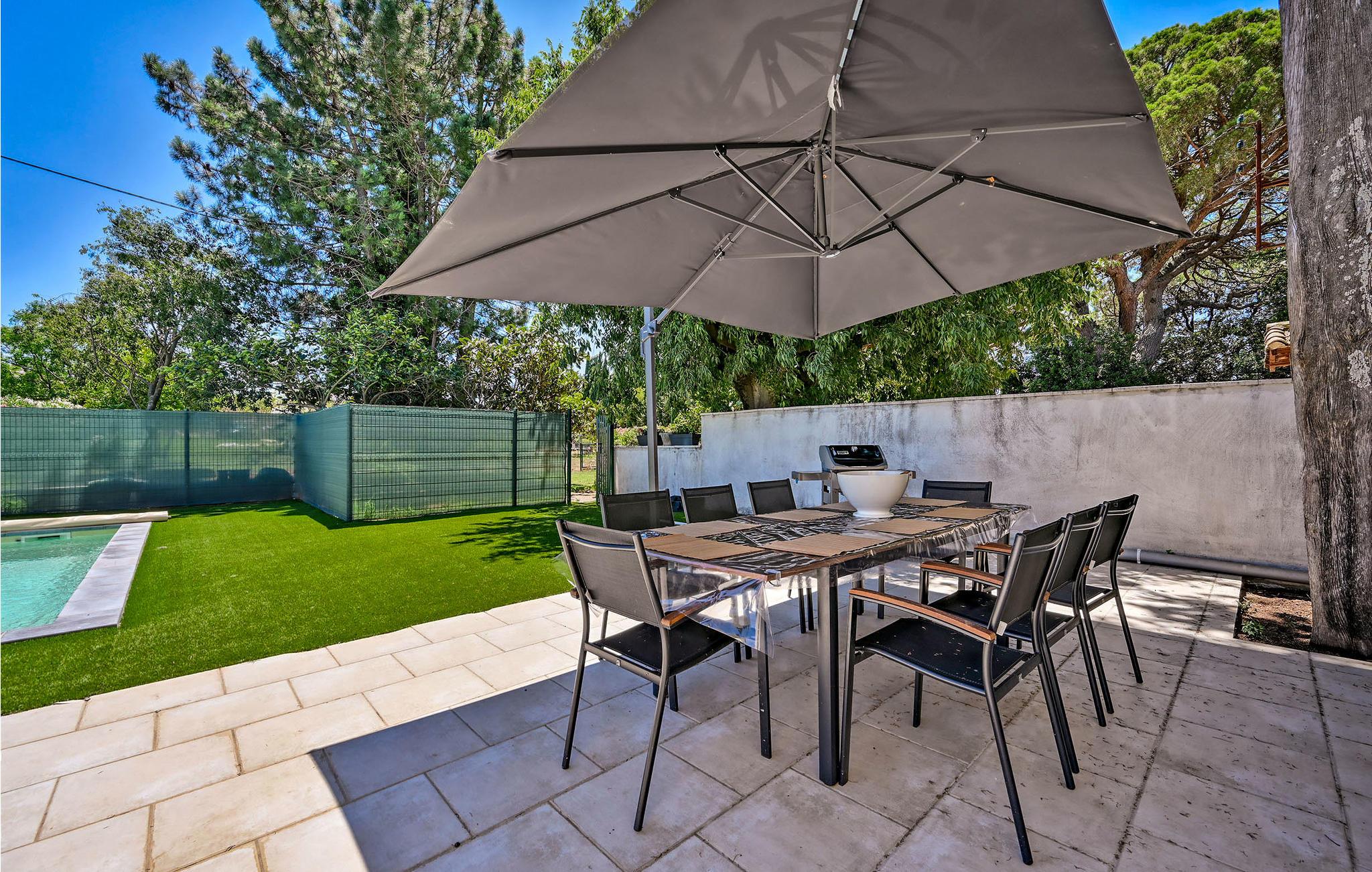 Sommerhuset er knyttet til udlejers hus, men haven er helt indhegnet og er tilgængelig for privat brug. Dér finder I også poolen og en stor terrasse, hvor I kan spise morgenmad om morgenen eller nyde et godt glas vin om aftenen.