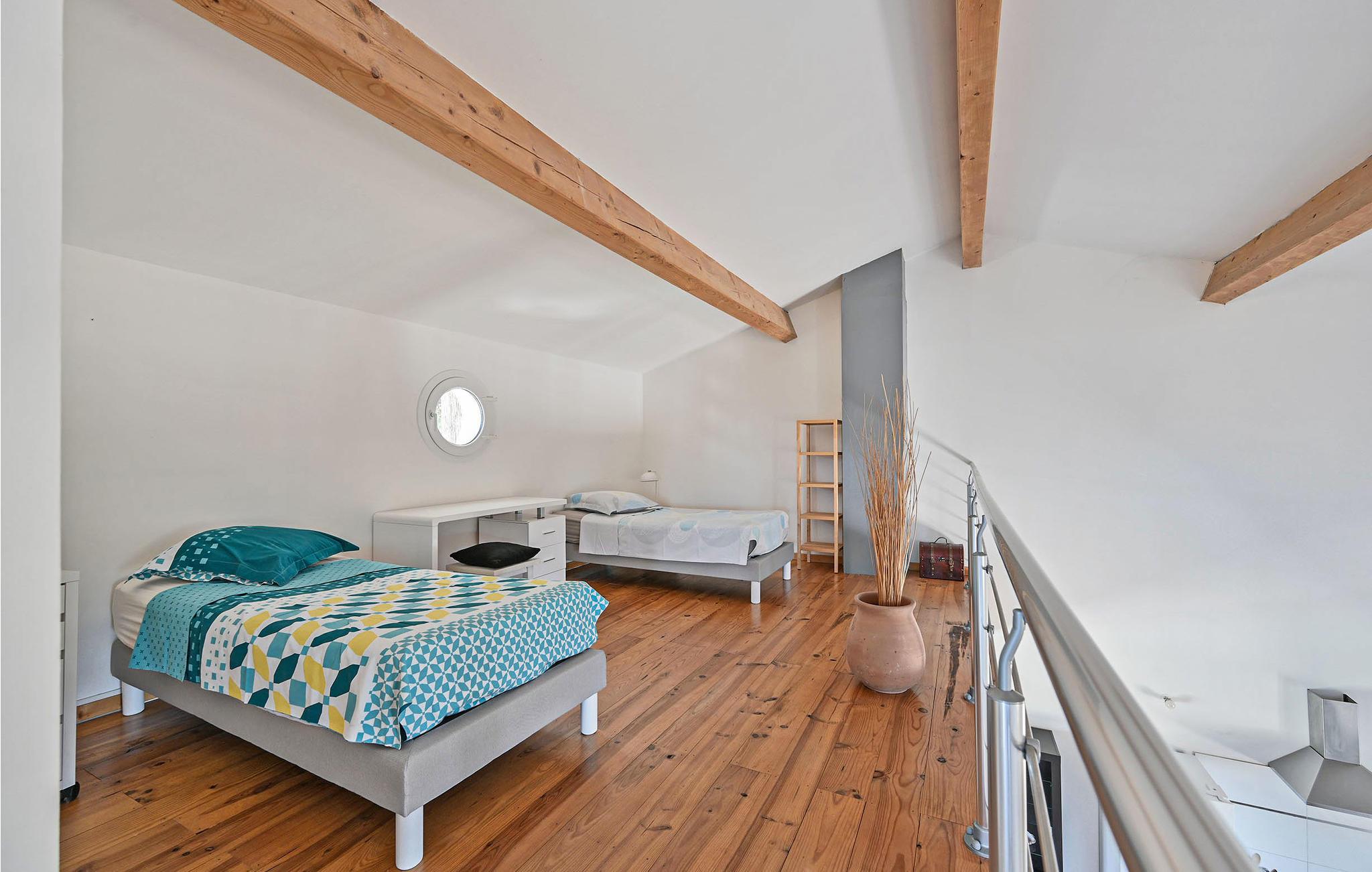 4 soveværelser, 2 badeværelser og et rummeligt og hyggeligt spisekøkken med en stor sofa og pejs inviterer jer til at tilbringe en skøn ferie i det solrige Sydfrankrig. Soveværelserne nr. 2, 3 og 4 kan nås via en trappe og er således ikke egnet til personer med begrænset mobilitet.