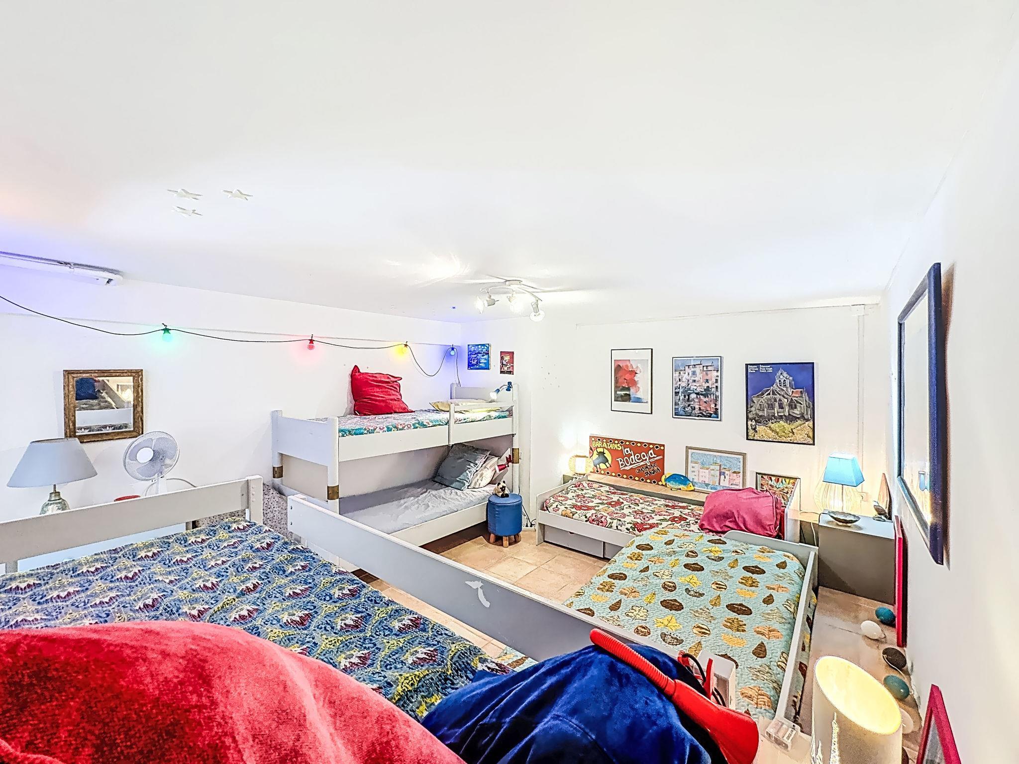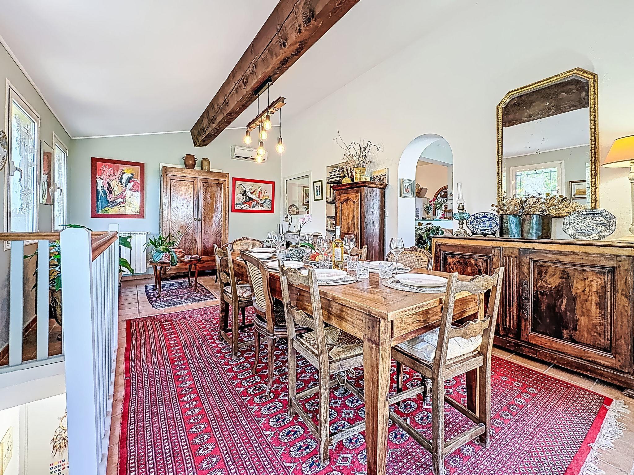 8-room house 177 m2 on 2 levels. Object suitable for 8 adults + 4 children. Living room with TV (flat screen). Exit to the terrace. Dining room with dining table and library. Exit to the terrace. 1 room with 1 bed (160 cm, length 190 cm), shower. Open kitchen (3 induction hot plates, toaster, kettle, microwave, freezer, electric coffee machine). Sep. WC. Air-conditioning. On the lower ground floor: (steep stair), 1 children's room with 4 beds (90 cm, length 190 cm), shower/WC. Small playroom with 1 sofabed (140 cm, length 190 cm). Exit to the garden. Upper floor: 2 rooms, each room with 1 bed (140 cm, length 190 cm). Shower/WC. Large terrace 140 m2, south facing position and, east facing position, large garden. Terrace furniture. View of the garden, the forest and the town. Facilities: washing machine, dryer. Internet (WiFi, free). Please note: non-smoking house. Smoke alarm. Offer by a private individual according to Art. 155, IV of CGI. 30189004091V0