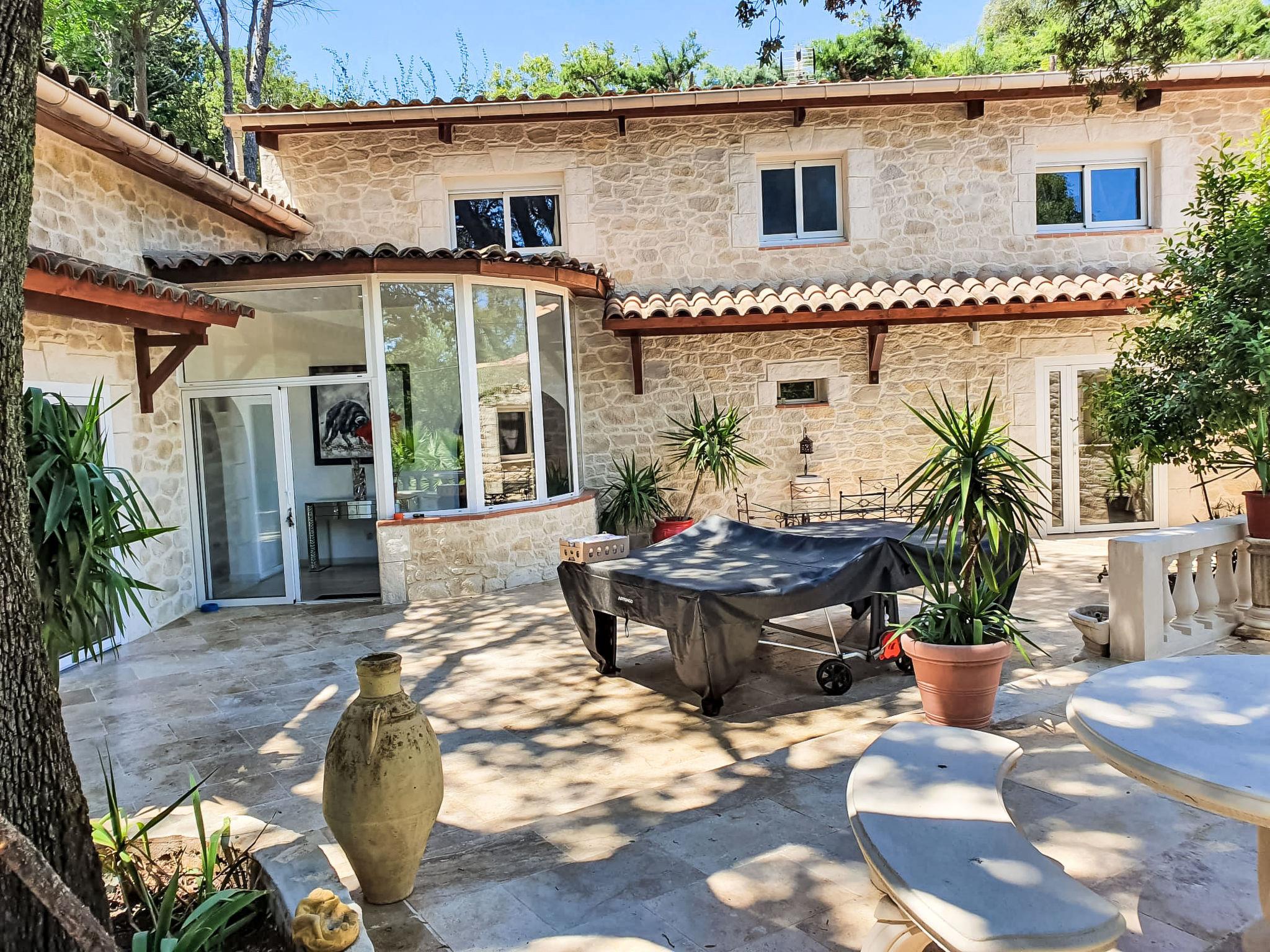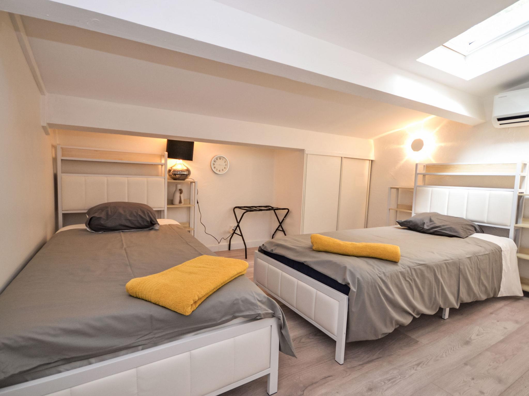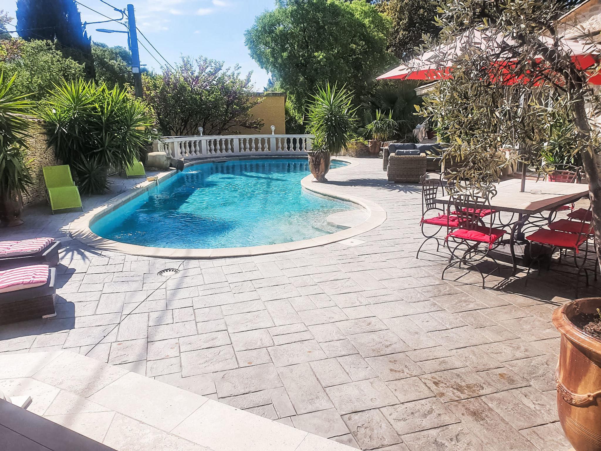 "La Villa du Soleil", 9-room villa 250 m2 on 2 levels, south facing position. Modern and tasteful furnishings: open dining room with bathroom and TV (flat screen). Exit to the terrace. Lounge with open-hearth fireplace and TV (flat screen). Exit to the terrace. Office. Living/sleeping room with 1 double sofabed, hand-basin, separate WC and TV (flat screen). Exit to the terrace, to the loggia, to the swimming pool. 1 room with 1 french bed (1 x 180 cm, length 200 cm), hand-basin, shower and TV (flat screen). Exit to the terrace, to the swimming pool. Kitchen (oven, dishwasher, 4 induction hot plates, toaster, kettle, microwave, freezer, electric coffee machine) with dining table, bar, TV, international TV channels and flat screen. Exit to the terrace. Shower/WC. Upper floor: (spiral staircase), 1 double bedroom with sloping ceilings, ceiling height 150 - 200 cm with 1 french bed (140 cm, length 190 cm). 1 double bedroom with sloping ceilings, ceiling height 150 - 200 cm with 2 beds (90 cm, length 190 cm), TV (flat screen). 2 rooms, each room with 1 french bed (180 cm, length 200 cm), TV (flat screen). Bath/WC or shower/WC, hydro massage bath with corner bath. Electric heating, air-conditioning. 2 terraces, large. Terrace furniture, electric barbecue, deck chairs. View of the swimming pool and the garden. Facilities: washing machine, dryer, iron, baby cot for up to 2 year olds, hair dryer. Internet (WiFi, free). Parking (4 cars). Please note: non-smokers only. Maximum 2 small pets/ dogs allowed. Smoke alarm. The pool mentioned in the description is for private use. Please note that the living room/bedroom can be completely closed off without disturbing others, has a toilet and opens onto a second kitchen and the outside. Offer by a private individual according to Art. 155, IV of CGI. 3018900230EX