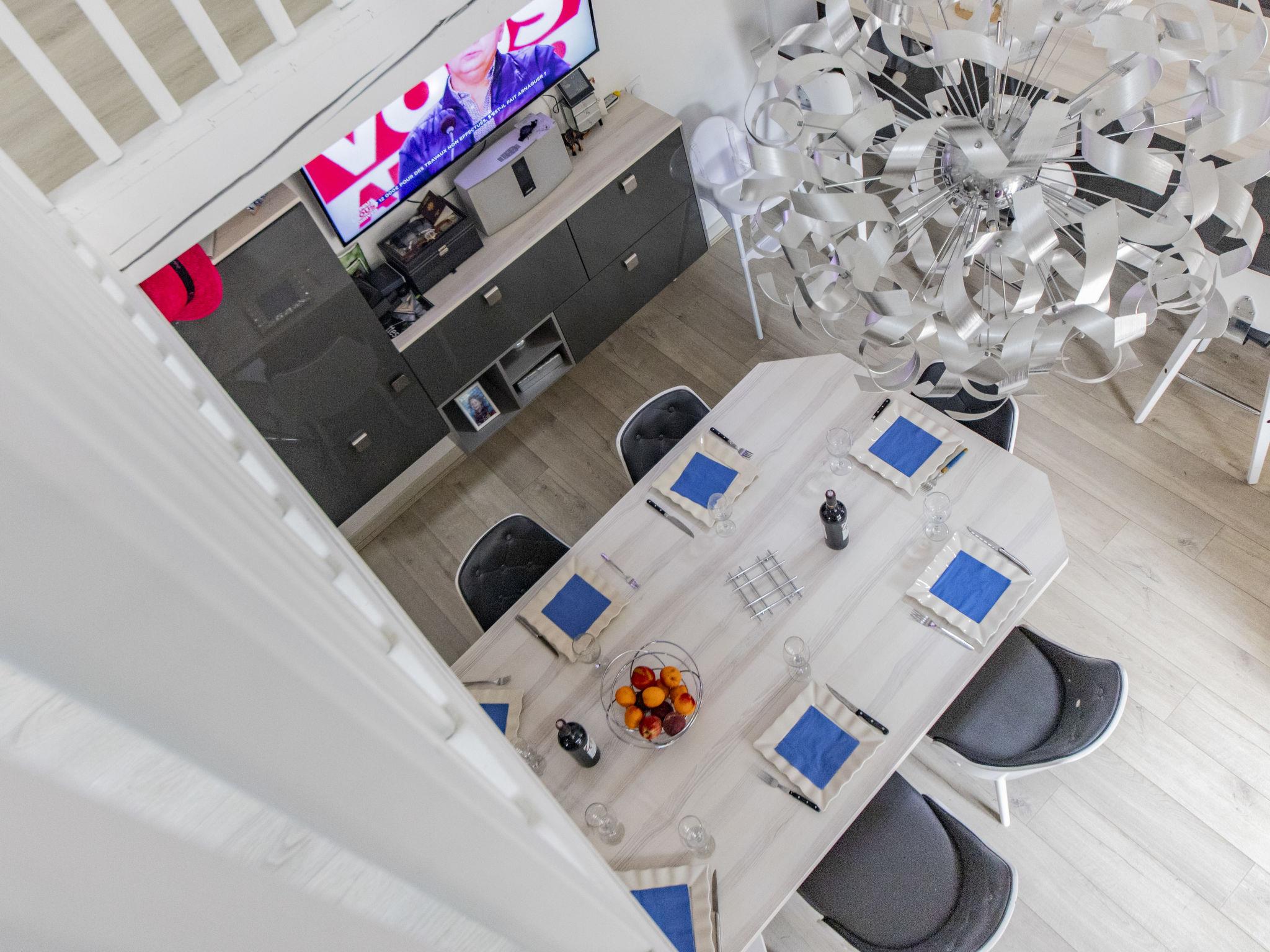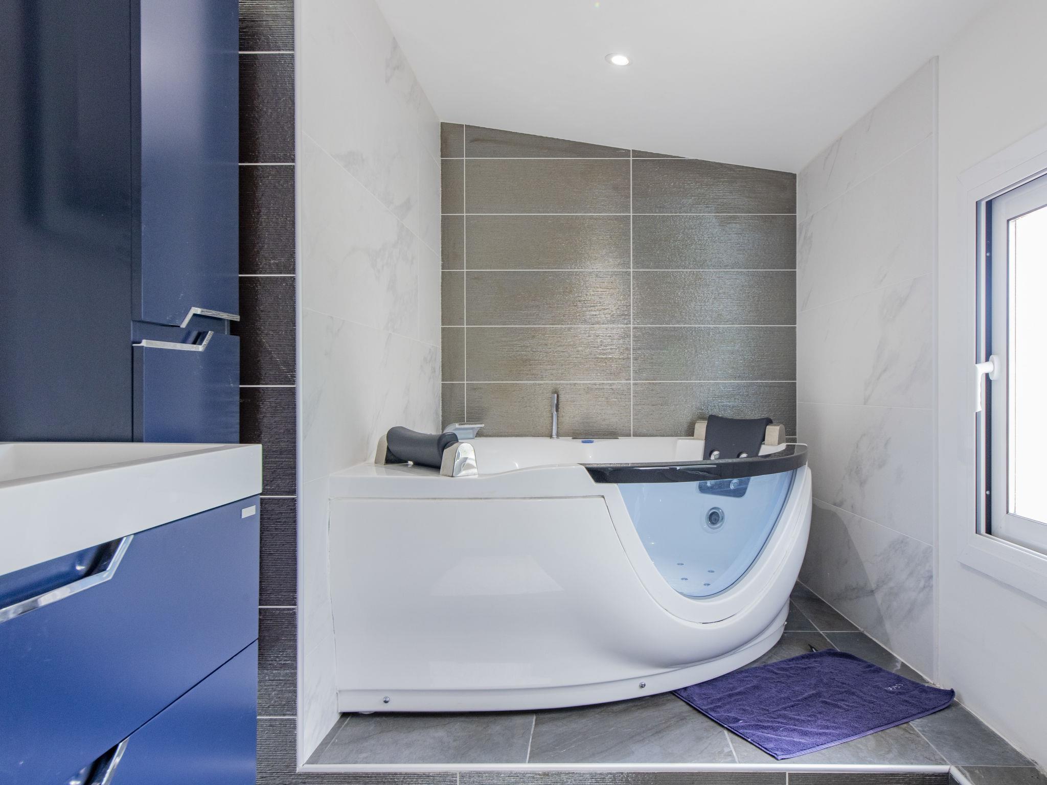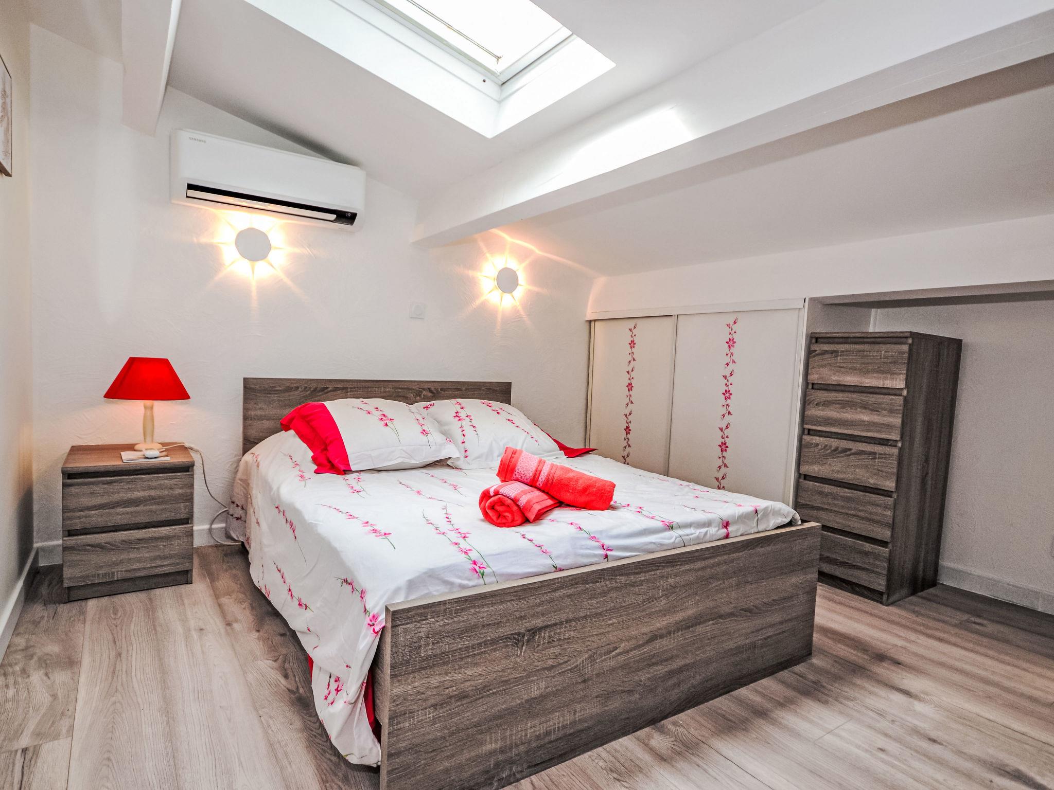 "La Villa du Soleil", 9-room villa 250 m2 on 2 levels, south facing position. Modern and tasteful furnishings: open dining room with bathroom and TV (flat screen). Exit to the terrace. Lounge with open-hearth fireplace and TV (flat screen). Exit to the terrace. Office. Living/sleeping room with 1 double sofabed, hand-basin, separate WC and TV (flat screen). Exit to the terrace, to the loggia, to the swimming pool. 1 room with 1 french bed (1 x 180 cm, length 200 cm), hand-basin, shower and TV (flat screen). Exit to the terrace, to the swimming pool. Kitchen (oven, dishwasher, 4 induction hot plates, toaster, kettle, microwave, freezer, electric coffee machine) with dining table, bar, TV, international TV channels and flat screen. Exit to the terrace. Shower/WC. Upper floor: (spiral staircase), 1 double bedroom with sloping ceilings, ceiling height 150 - 200 cm with 1 french bed (140 cm, length 190 cm). 1 double bedroom with sloping ceilings, ceiling height 150 - 200 cm with 2 beds (90 cm, length 190 cm), TV (flat screen). 2 rooms, each room with 1 french bed (180 cm, length 200 cm), TV (flat screen). Bath/WC or shower/WC, hydro massage bath with corner bath. Electric heating, air-conditioning. 2 terraces, large. Terrace furniture, electric barbecue, deck chairs. View of the swimming pool and the garden. Facilities: washing machine, dryer, iron, baby cot for up to 2 year olds, hair dryer. Internet (WiFi, free). Parking (4 cars). Please note: non-smokers only. Maximum 2 small pets/ dogs allowed. Smoke alarm. The pool mentioned in the description is for private use. Please note that the living room/bedroom can be completely closed off without disturbing others, has a toilet and opens onto a second kitchen and the outside. Offer by a private individual according to Art. 155, IV of CGI. 3018900230EX