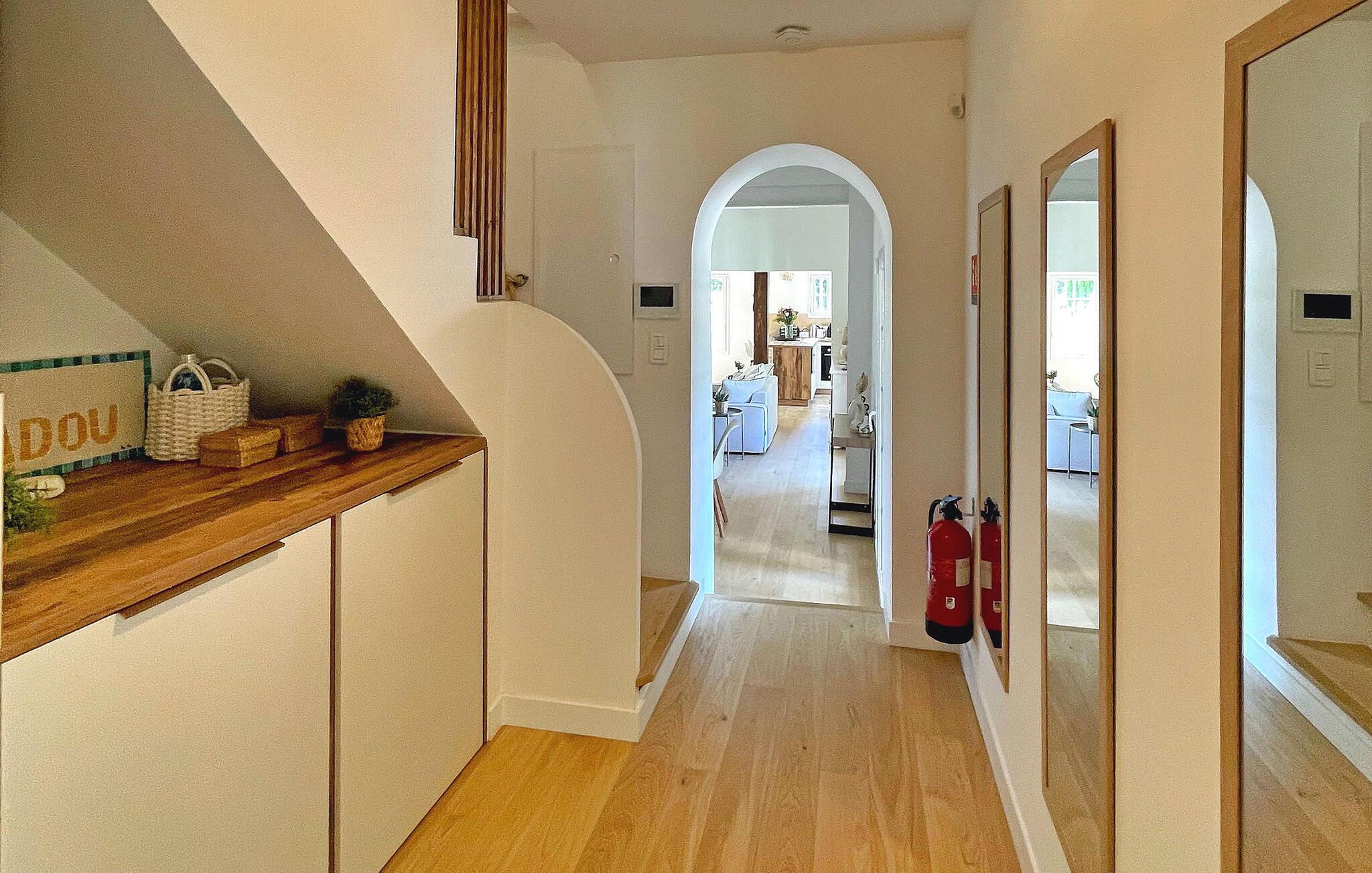 Indenfor vil I blive budt velkommen af en rummelig og airconditioneret opholdsstue og køkken med udsigt over de fantastiske naturlige omgivelser. Takket være planløsningen med tre soveværelser i stueetagen tilbyder huset jer et tilflugtssted til at slappe af.