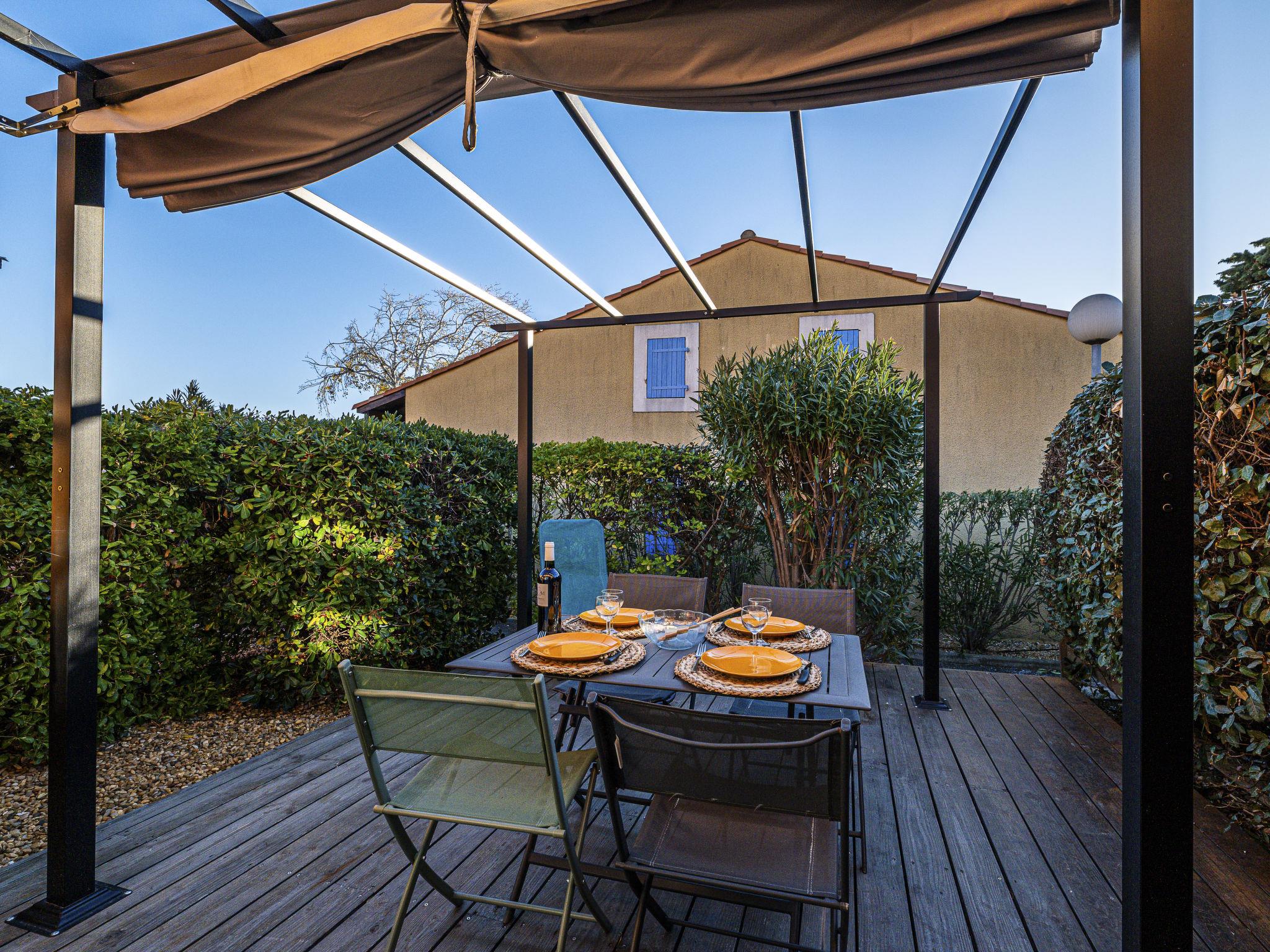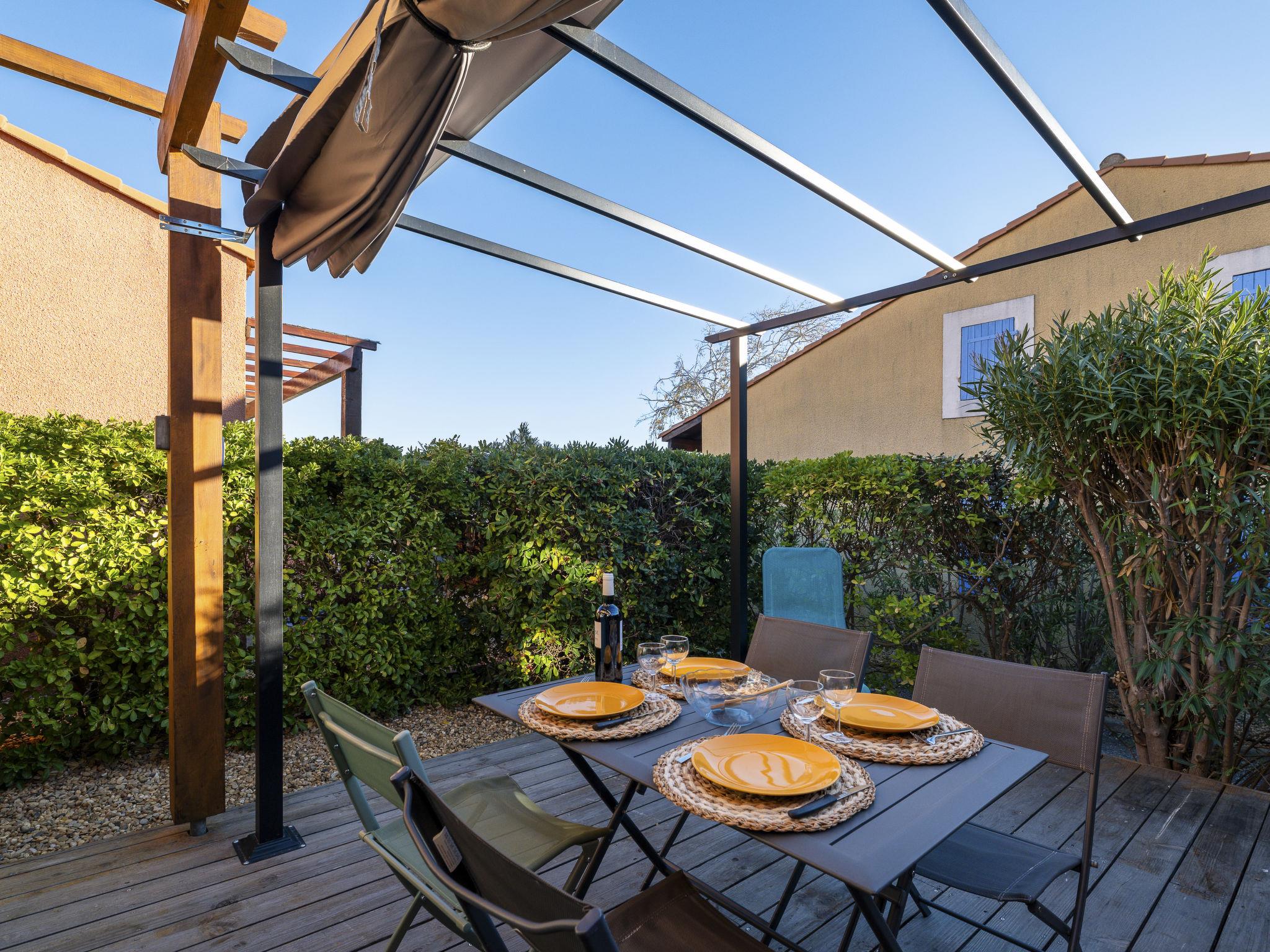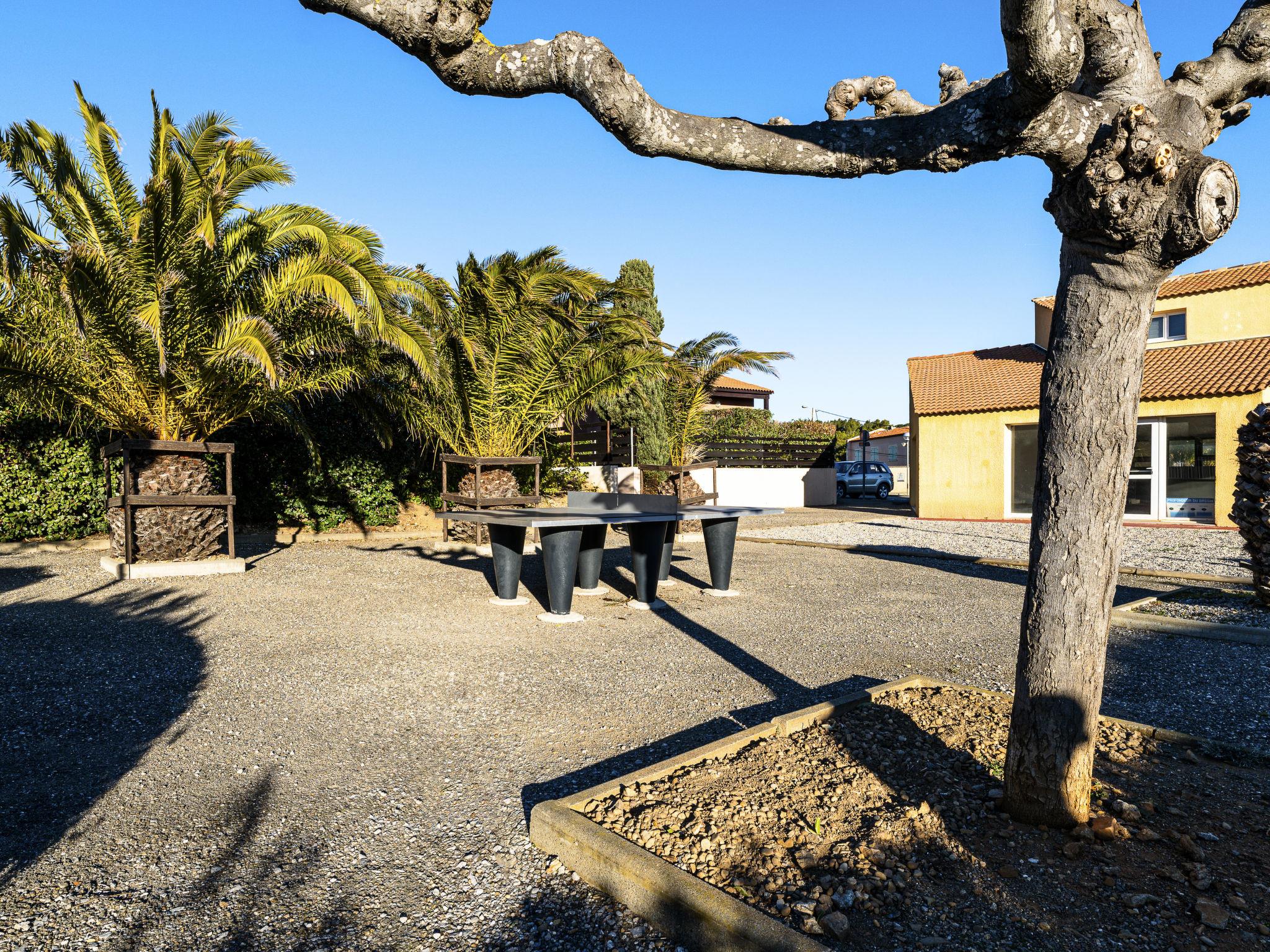 Residence "Beau Soleil", built in 1998. 81 houses in the residence. 950 m from the centre, 950 m from the sea, 950 m from the beach. For shared use: swimming pool (13 x 7 m, depth 80 - 140 cm, seasonal availability: 01.May. - 30.Sep.). Children's pool, table tennis, boccia, parking. Shop, grocery, restaurant 900 m, bus stop 550 m, diving center 2.4 km. Sports harbour 2.4 km, sailing school 2.4 km, riding stable 5 km. Nearby attractions: Réserve Africaine de Sigean 33 km, Cité de Carcassonne 73 km, Espace balnéoludique de Gruissan 6 km.