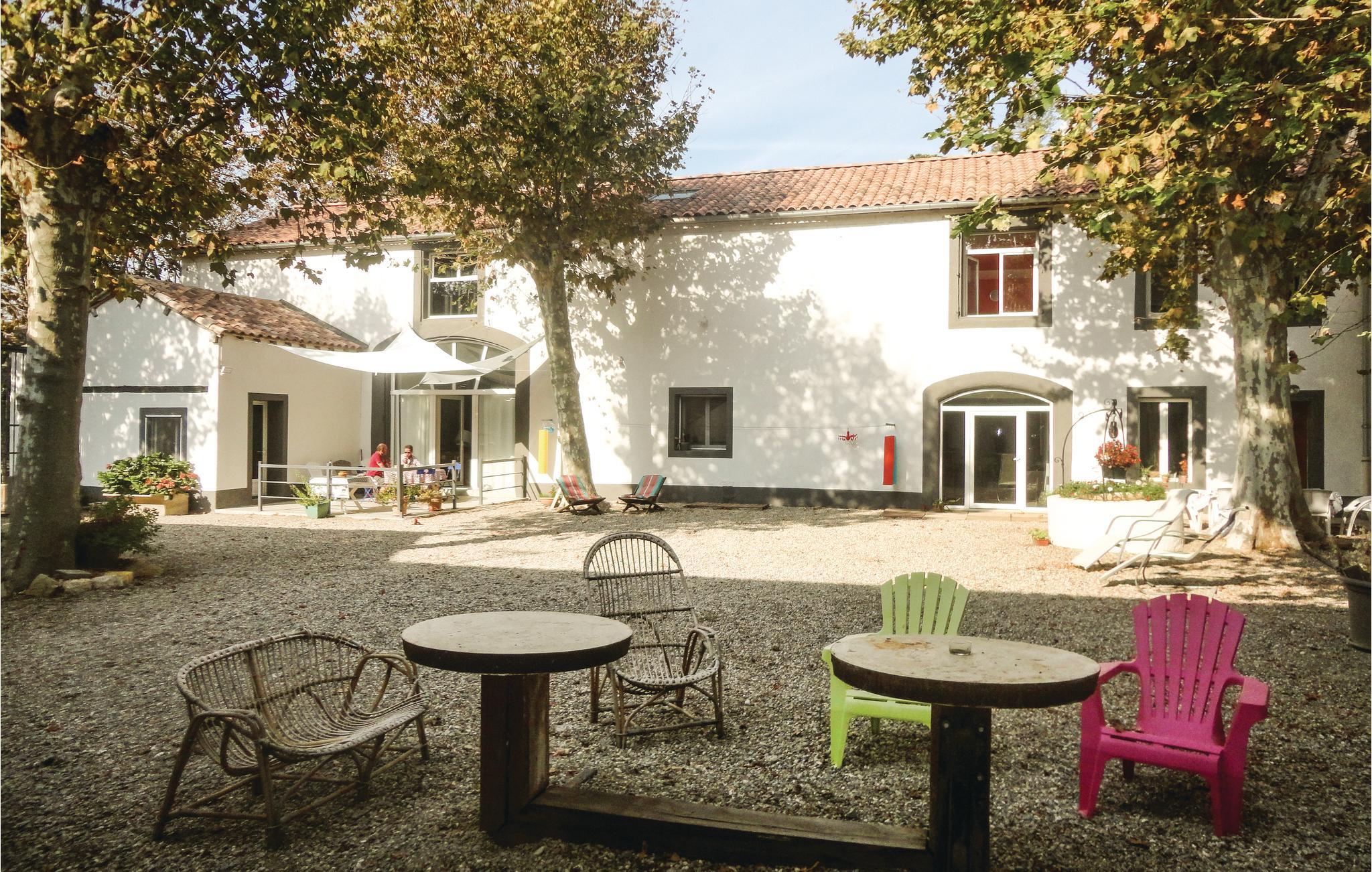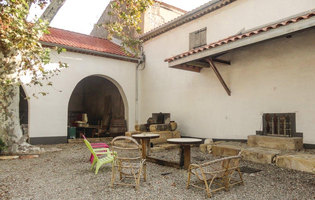 Ved Canal de la Robine, ved portene af Narbonne, venter dette hus på jer på et 4 ha stort vingods midt i den regionale naturpark Narbonnaise en Méditerranée. Mens I slapper af på terrassen i skyggen af århundredegamle plataner, har I udsigt til katedralen af Narbonne, Massif de la Clape og Pyrenæerne i det fjerne. I har adgang til et fritidsområde samt en fælles gård til hyggelige grillaftener. Boligernes fællesområde rummer dertil en whirlpool og en sauna. På jer venter klosteret Sainte-Marie de Fontfroide samt strandene af Gruissan.