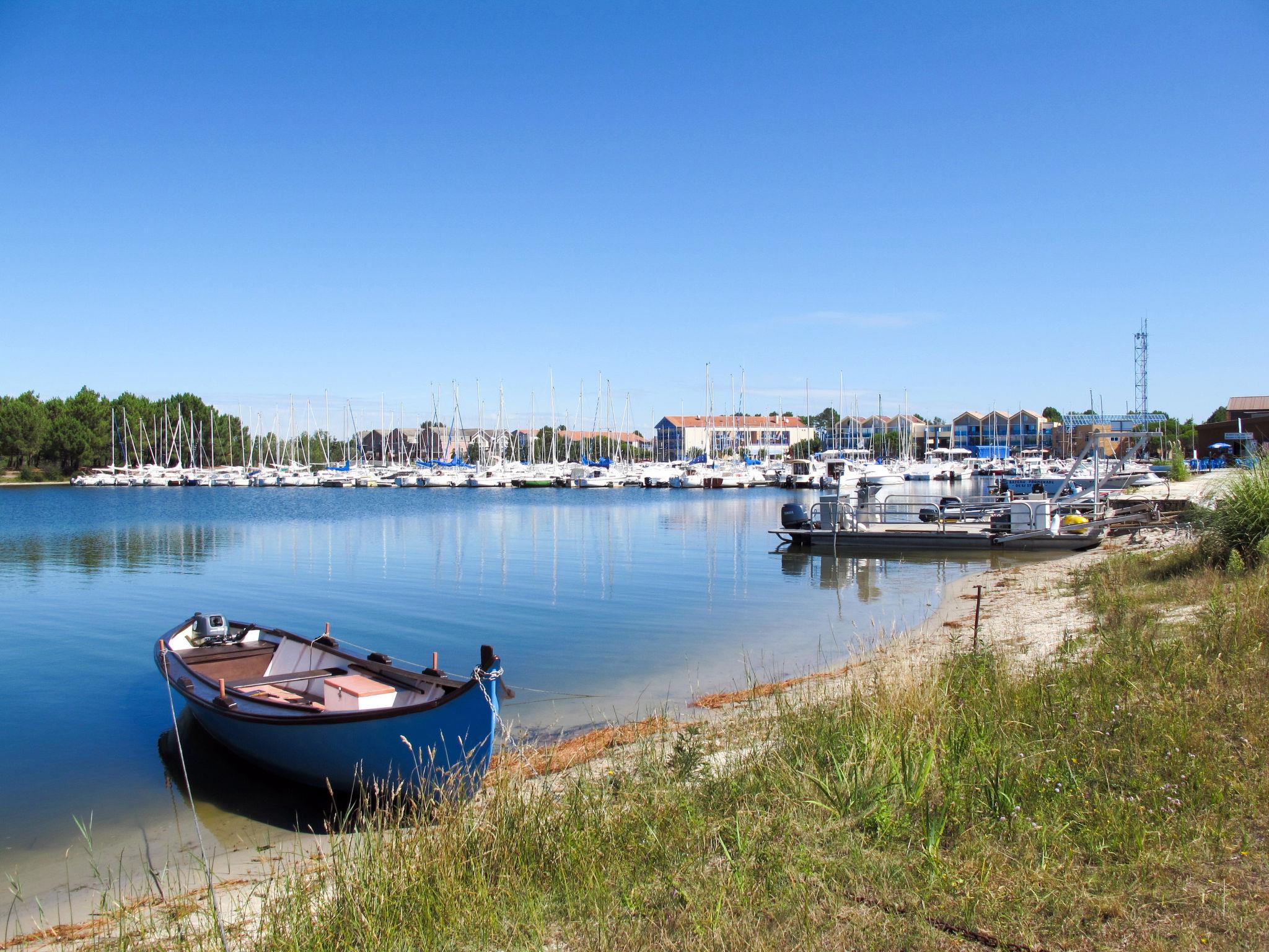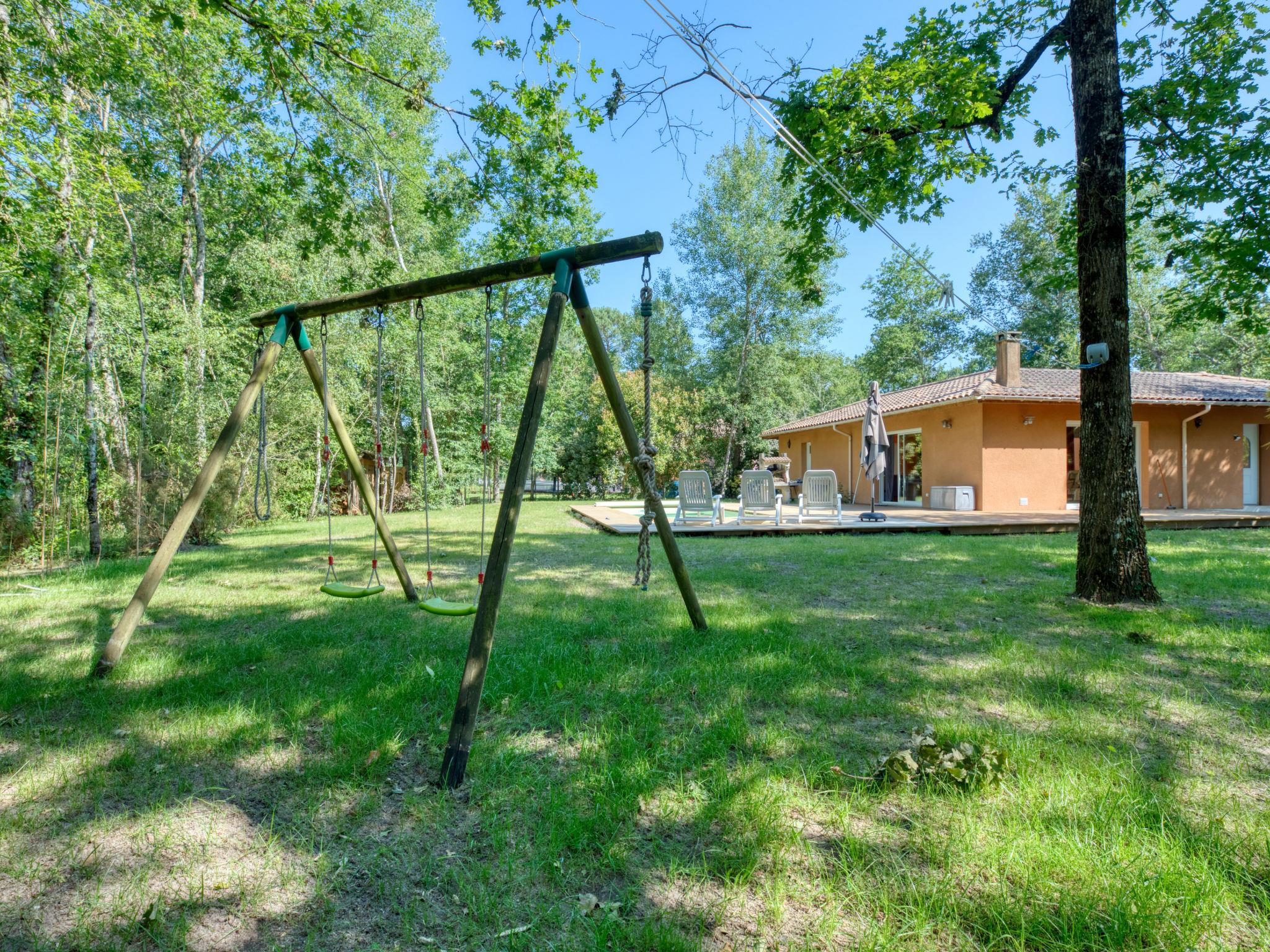 Single-family house "Tina", surrounded by trees. In the district of La Gare 4 km from the centre of Naujac-sur-Mer, 12 km from the centre of Lesparre-Médoc, 31 km from the centre of Soulac-sur-Mer, 7 km from the sea, in the countryside. Private: natural state property 1'900 m2 (fenced) with trees, swimming pool angular (3 x 6 m, depth 120 cm, seasonal availability: 15.May. - 30.Sep.). Terrace (40 m2), parking at the house on the premises. Bus stop "Les ourmes" 12 km, sandy beach "Plage Le Pin Sec" 7 km, 14 km. Surf school 7 km.