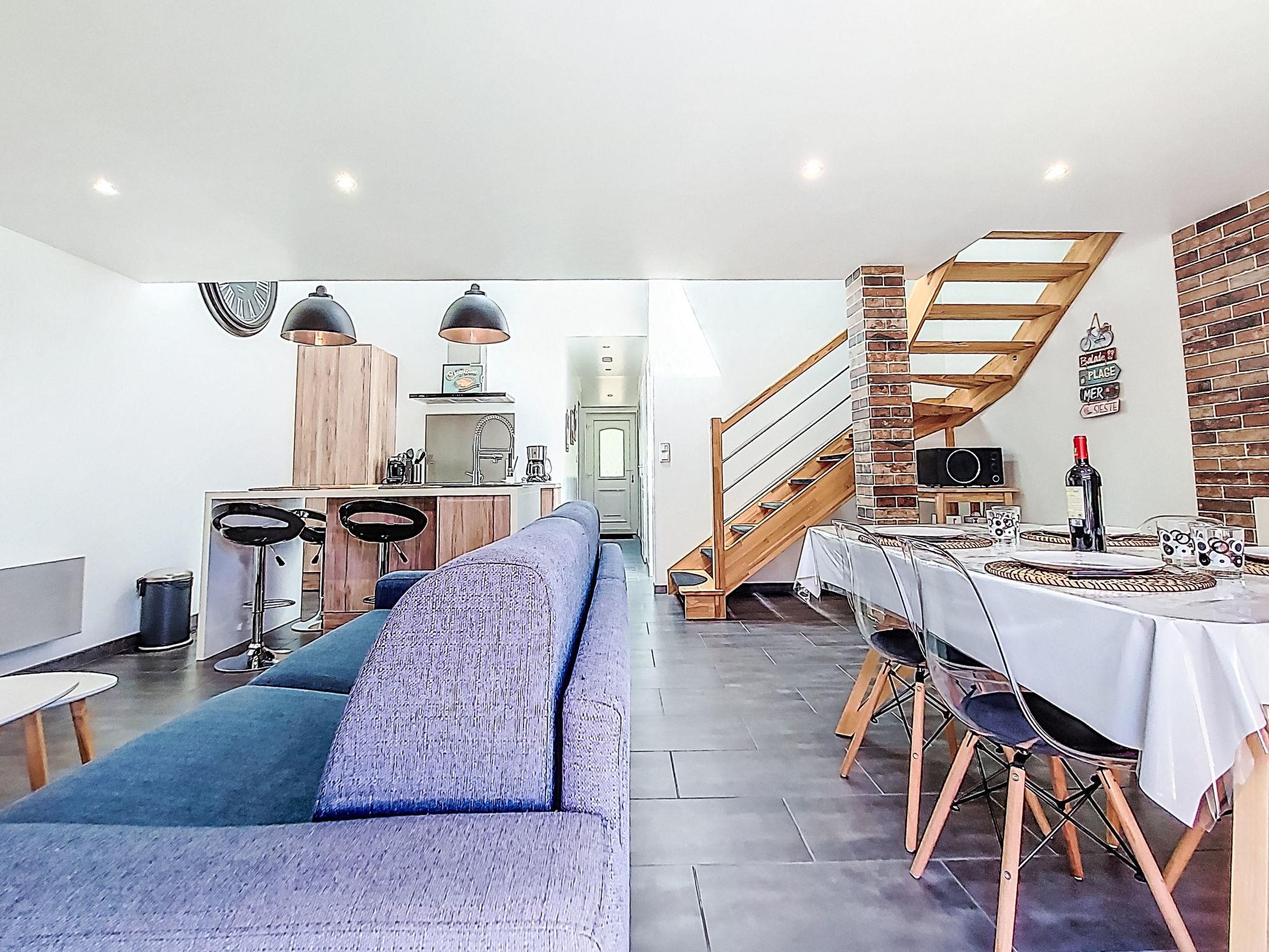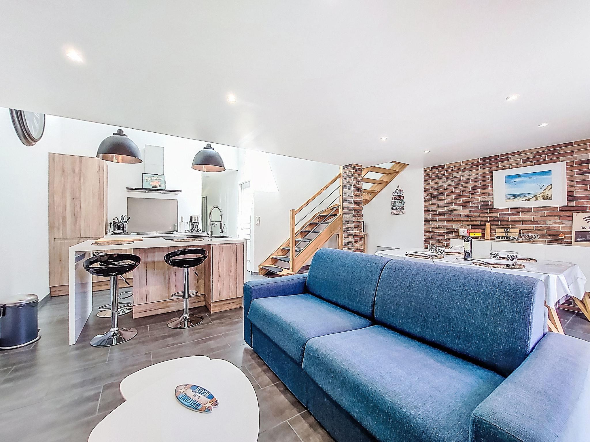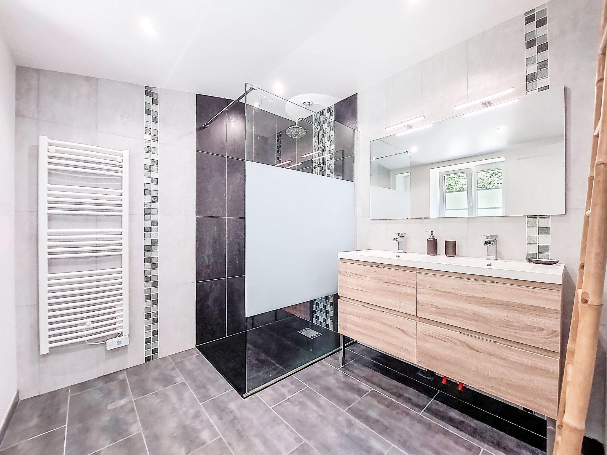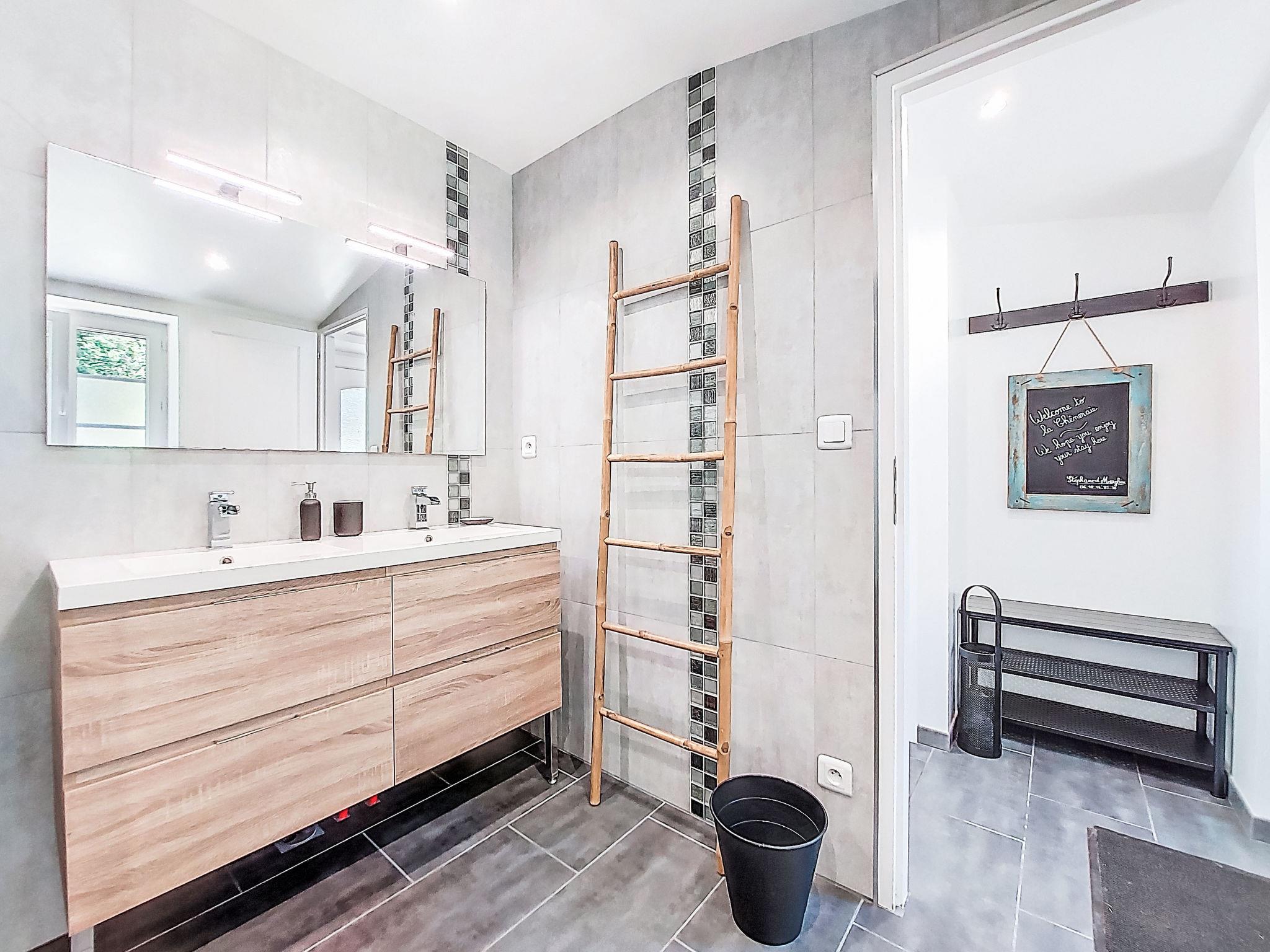 "La Cheneraie", 3-room semi-detached house 65 m2. Renovated in 2020, modern and tasteful furnishings: living/sleeping room with 1 double sofabed (140 cm), TV (flat screen), CD-player and DVD. Exit to the terrace. 1 room with 1 french bed (140 cm, length 190 cm). Open kitchen (oven, dishwasher, 4 gas rings, toaster, kettle, microwave, freezer, electric coffee machine) with dining table. Exit to the terrace. Shower/WC, double hand-basin. Upper floor: 1 room with sloping ceilings with 1 french bed (140 cm, length 190 cm). Electric heating. Large terrace 20 m2. Terrace furniture, barbecue (portable), deck chairs (2), box-room. Beautiful view of the forest. Facilities: washing machine, iron, children's high chair, baby cot. Internet (WiFi, free). Please note: non-smoking house. Smoke alarm. Offer by a private individual according to Art. 155, IV of CGI.
