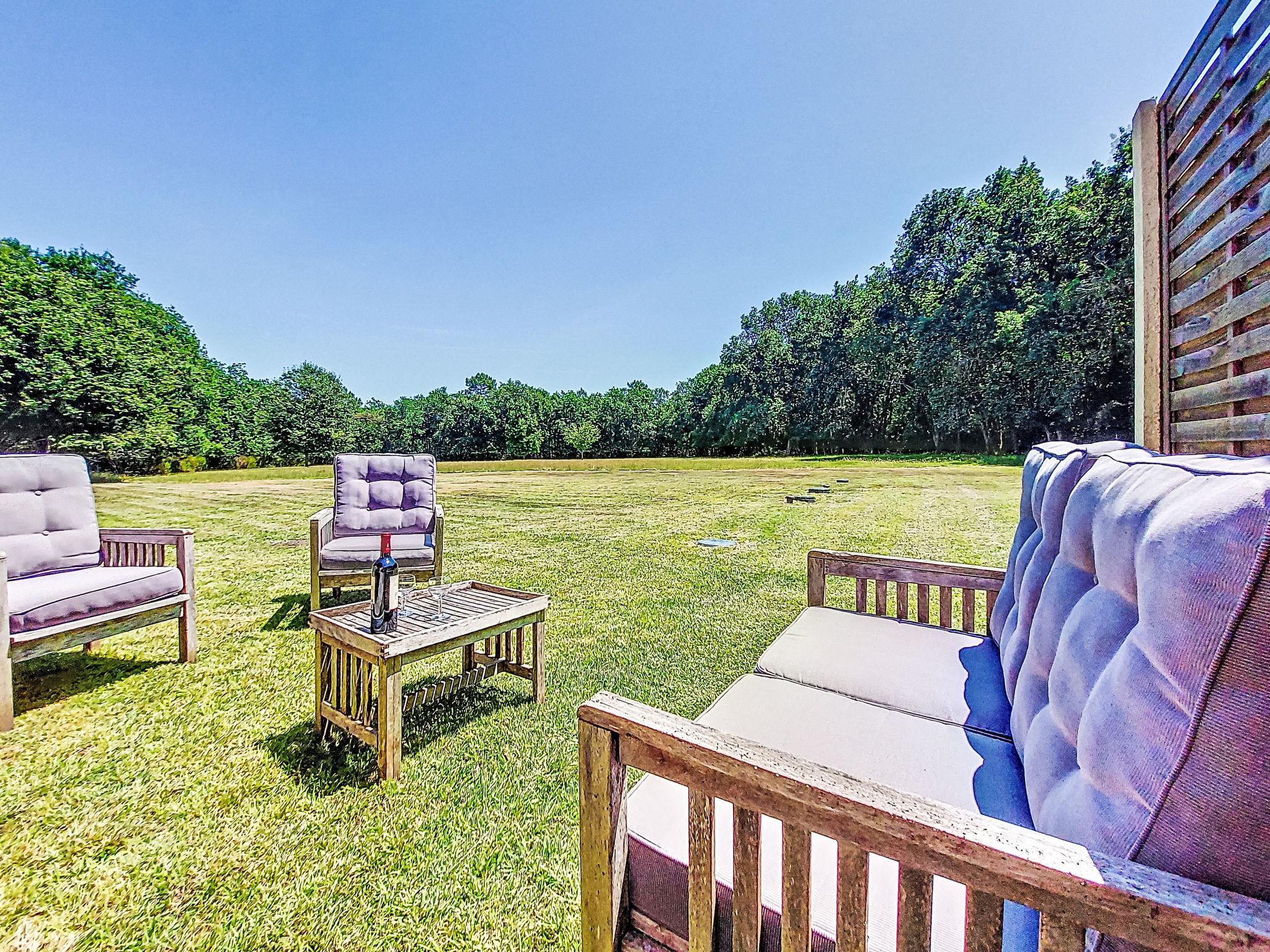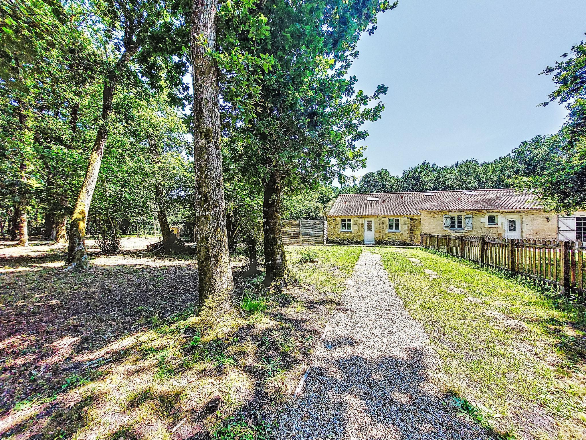 Beautiful country house "La Cheneraie", 2 storeys, semi-detached, from the 19th century, surrounded by trees and meadows. 10 km from the centre of Hourtin, 12 km from the centre of Lesparre, 61 km from the centre of Bordeaux, in a secluded position, 16 km from the sea, 15 km from the lake. For shared use: natural state property 15'000 m2 with trees, meadow, swimming pool (above ground) secured (5 m diameter, depth 120 cm, seasonal availability: 01.May. - 30.Sep.). Parking (for 2 cars) at the house on the premises. Shop 10 km, supermarket 10 km, bus stop "Lesparre-Medoc" 10 km, sandy beach "Pin Sec, Naujac" 16 km, bathing lake "Hourtin-Port" 15 km. Marina 15 km, golf course (18 hole) 40 km. Please note: car recommended. Owner lives in separate semi-detached house. The owner has a dog.