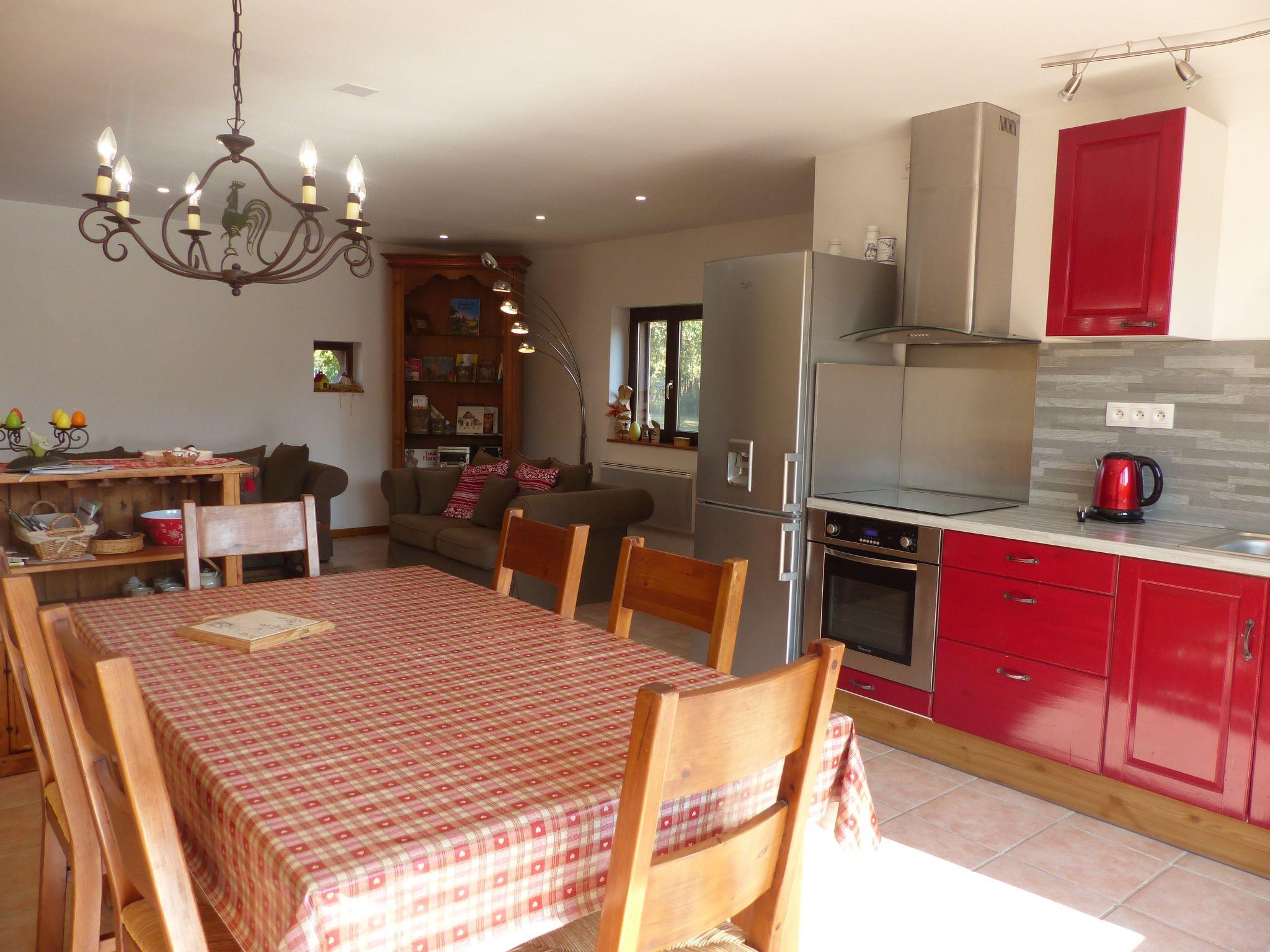 The gite comprises 2 floors: The ground floor, which measures approximately 65 m², comprises the following rooms: a fully-equipped kitchen with cooker, oven, microwave, coffee maker and dining area, opening onto the living room, which includes a lounge with multimedia equipment (flat-screen TV, DVD player, hi-fi system) and a library; an additional relaxation area in an alcove includes a convertible double sofa bed. Next to the kitchen is a bathroom with corner bath, washbasin, WC and washing machine. On the 1st floor, there are two bedrooms: the 1st has a 160 x 200 cm double bed and a wooden cot, and the 2nd has 3 single beds (90 x 200 cm). On the landing, there is a relaxation area and a 2nd shower room with shower, washbasin and WC. In the attic is a 3rd bedroom with a total of 4 single beds (90cm x 200cm), a sofa bed (140cm x 190cm), a changing area and a children's play area. 3 cots are available, as well as all the childcare equipment for the little ones.