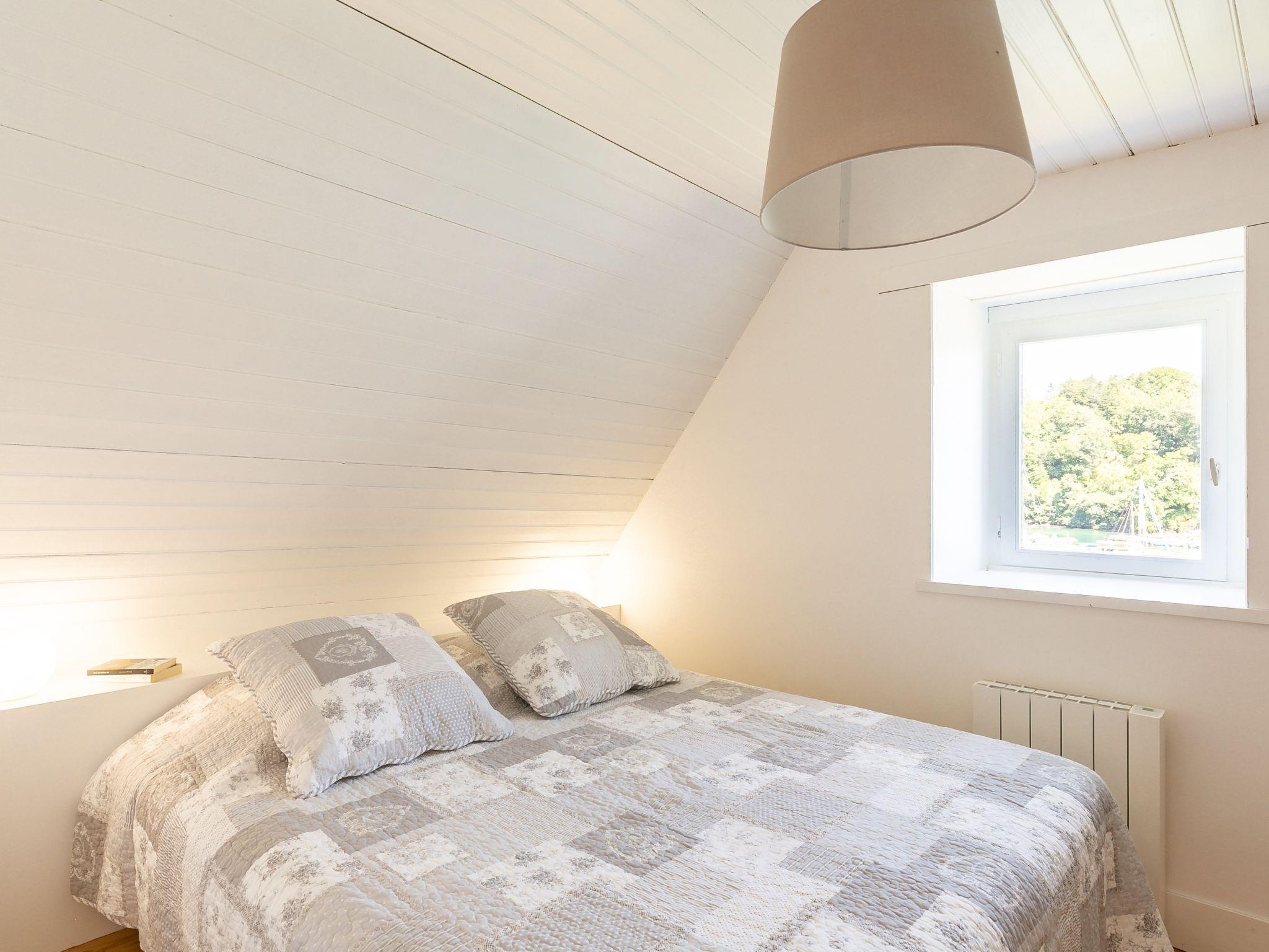 "La Chaumière", 3-room house 60 m2 on 2 levels. Comfortable and tasteful furnishings: living room with wood-burning stove. Exit to the garden, to the terrace. Open kitchen (oven, dishwasher, 2 induction hot plates, toaster, kettle, microwave, freezer, electric coffee machine, Capsules for coffee machine (Nespresso) extra) with dining table. Shower/WC. Upper floor: 1 room with sloping ceilings (160 cm, length 200 cm). 1 room with sloping ceilings with 2 beds (90 cm, length 200 cm). Electric heating. Terrace 20 m2, south facing position, garden 800 m2. Terrace furniture, barbecue (portable), deck chairs (2). Marvellous panoramic view of the sea, the river and the port. Facilities: washing machine, iron, hair dryer. Internet (WiFi, free). At 50 m. Please note: non-smoking house. Smoke alarm. Offer by a private individual according to Art. 155, IV of CGI.