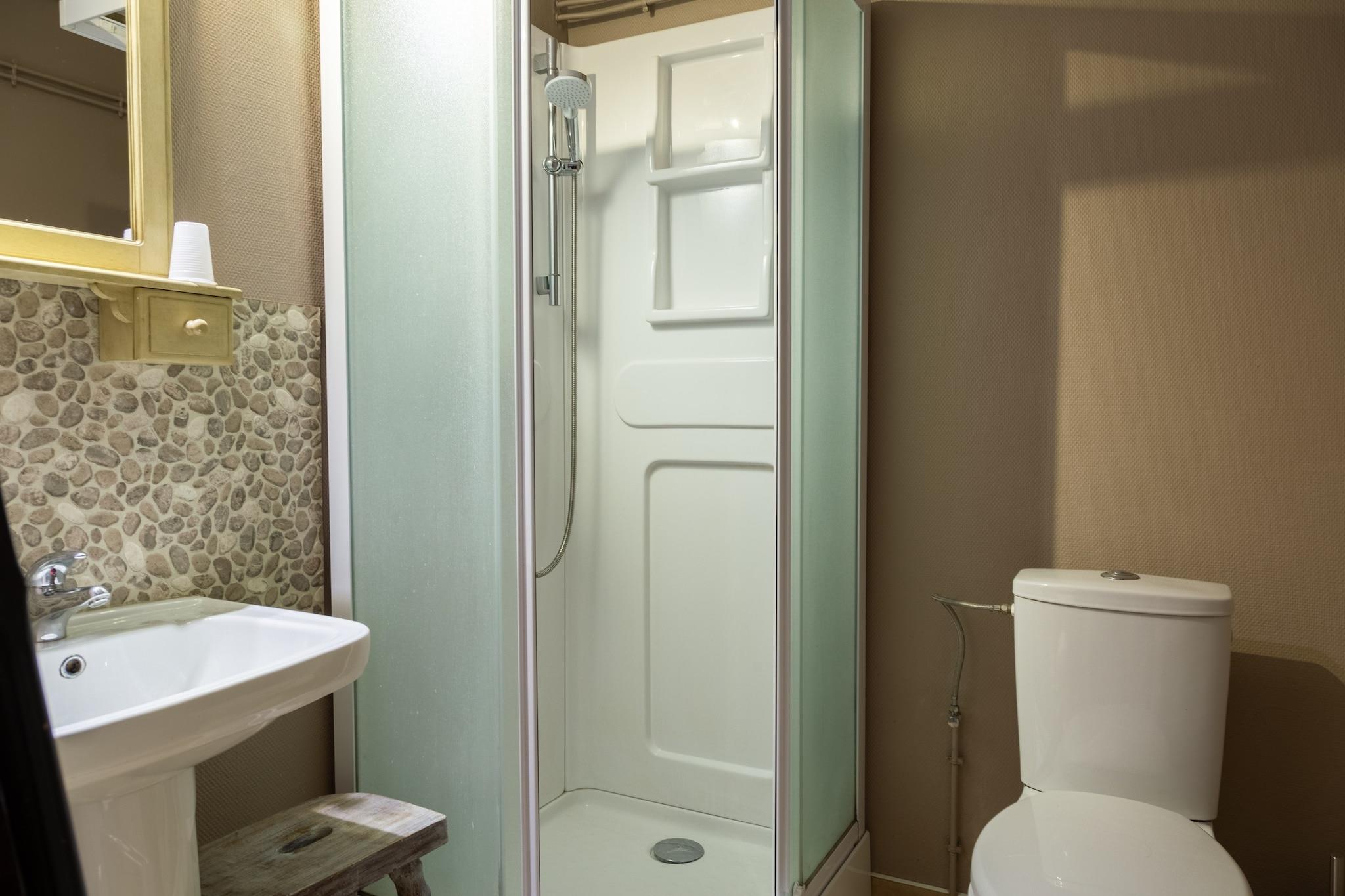 Stueetage: (åbent køkken(elkedel, brødrister, komfur, emhætte, kaffemaskine, ovn, mikrobølgeovn, køle-fryseskab, håndvask), Soveværelse med badeværelse(enkeltseng, dobbeltseng, bruser, håndvask, toilet), Soveværelse med badeværelse(enkeltseng, enkeltseng, bruser, håndvask, toilet), vaskerum (tørretumbler, vaskemaskine), veranda(spisebord)) På 1. etage: (Soveværelse med badeværelse(enkeltseng, dobbeltseng, bruser, håndvask, toilet), Soveværelse med badeværelse(enkeltseng, køjeseng, bruser, håndvask, toilet))