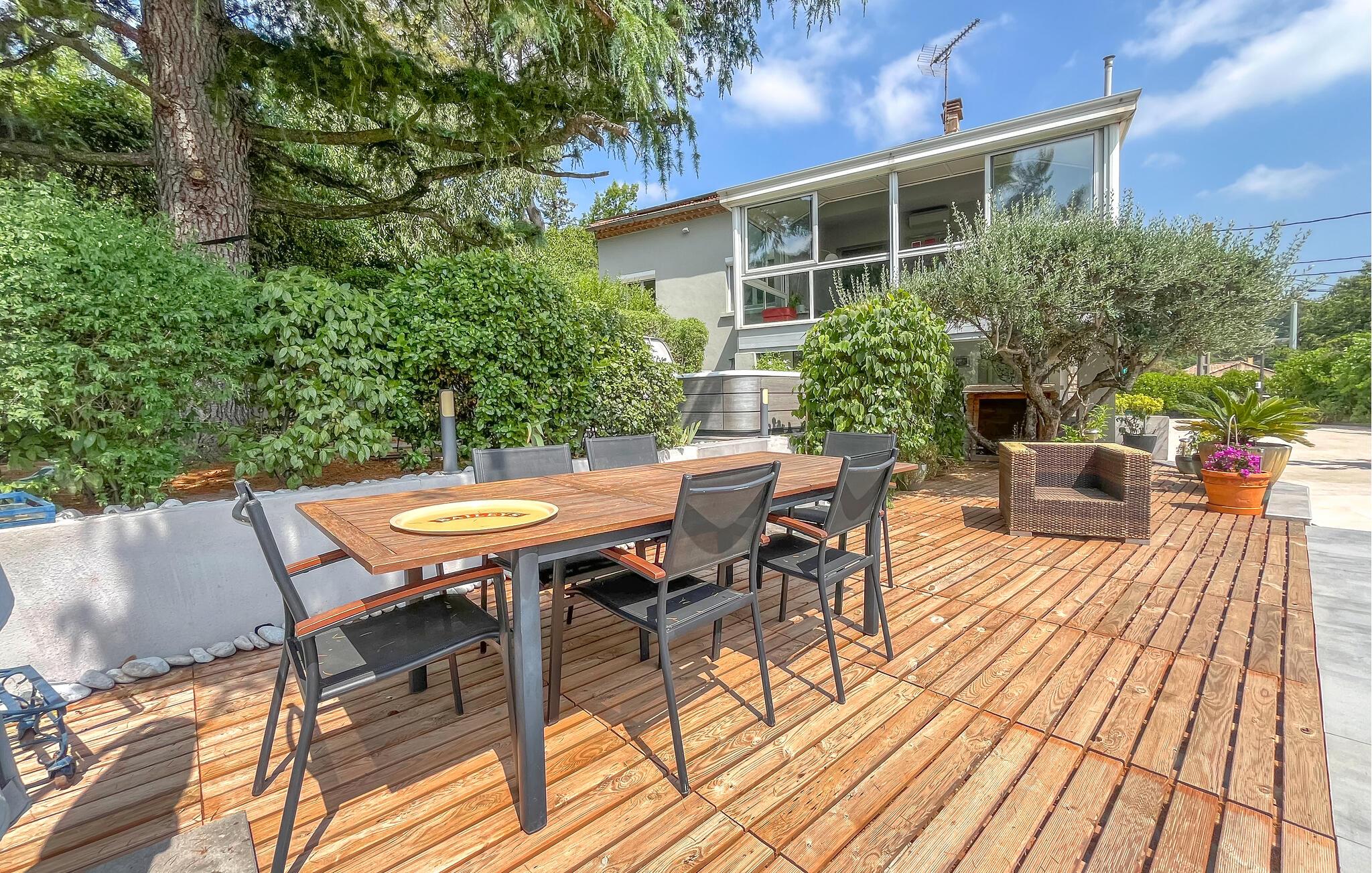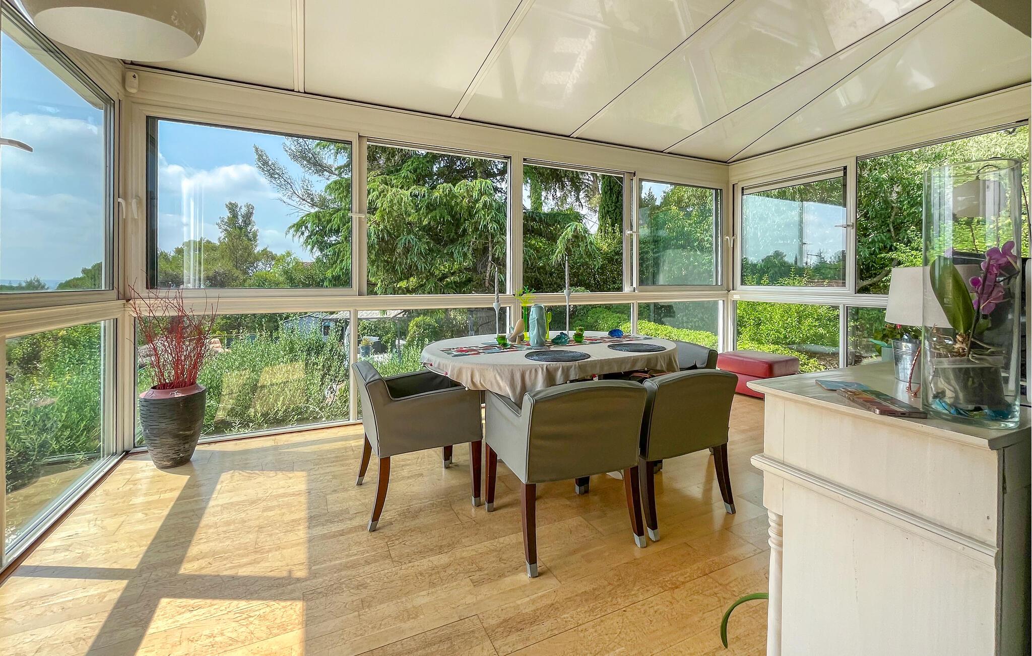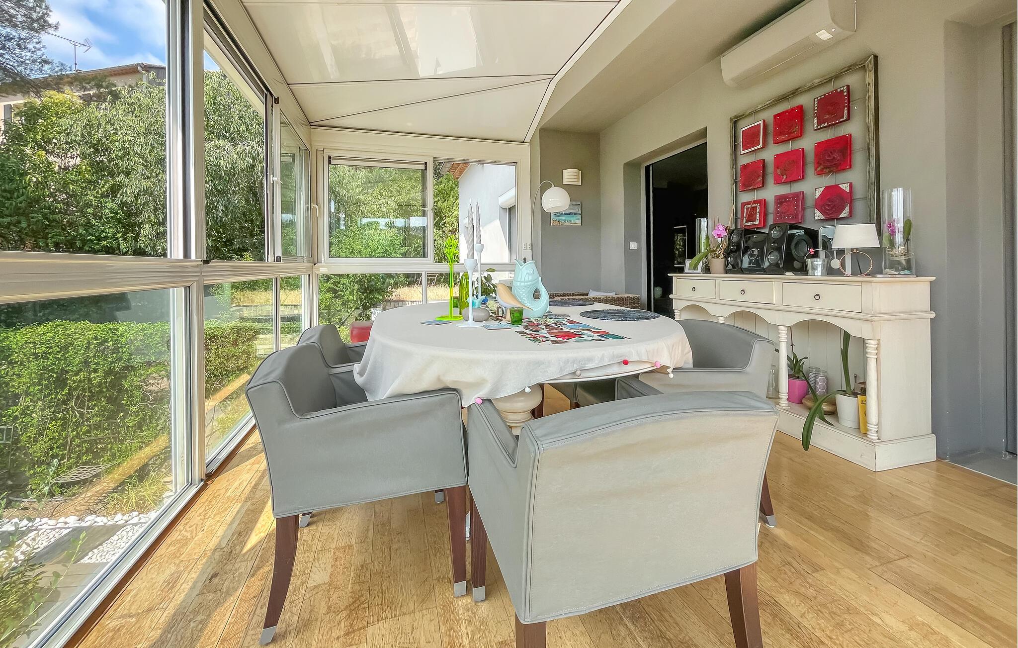 Dette rummelige og smagfuldt moderniserede feriehus ligger i bakkerne over Nîmes og tilbyder den ideelle base for en række aktiviteter. Tilbered kulinariske lækkerier med friske råvarer fra det ugentlige marked, og sæt jer i den lyse spisestue med panoramavinduer. Brug den rummelige sofagruppe til hyggelig læsning eller hyggelige spilleaftener.