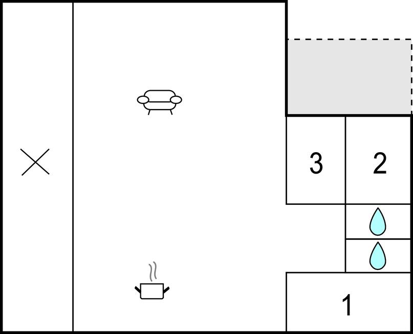 Soveværelse 9m2 (nr. 3) - 1 Soveplads. (Enkeltseng(e)). 2 Sovepladser. (Dobbeltseng(e)).