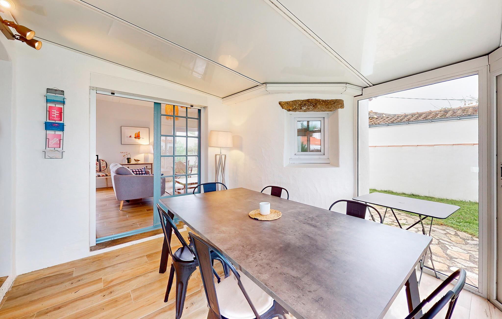 Dette charmerende feriehus på Noirmoutier-en-l'Île byder jer velkommen med et stilfuldt interiør og harmoniske farveindslag. Huset er fordelt på to etager og har hyggelige opholdsrum samt et veludstyret køkken, hvor I kan nyde feriedagene. Vinterhaven og den familievenlige have lægger op til fælles stunder, uanset om det er morgenmad i det fri eller afslapning i haven. Et lille nabohus kan lejes ved behov, perfekt til en ferie med venner eller hele familien.