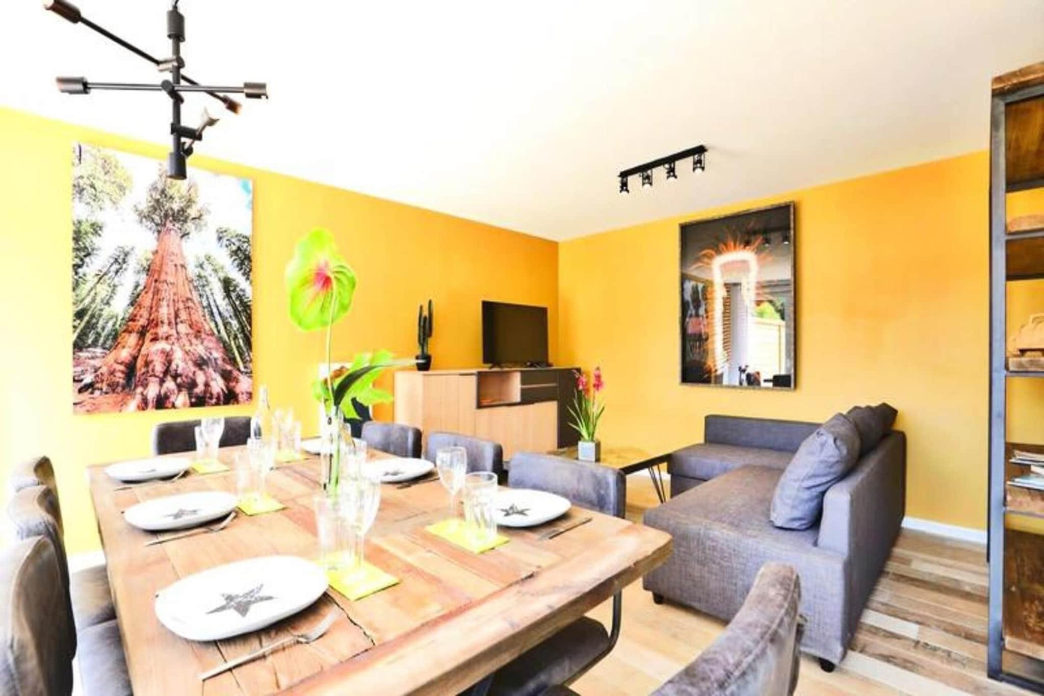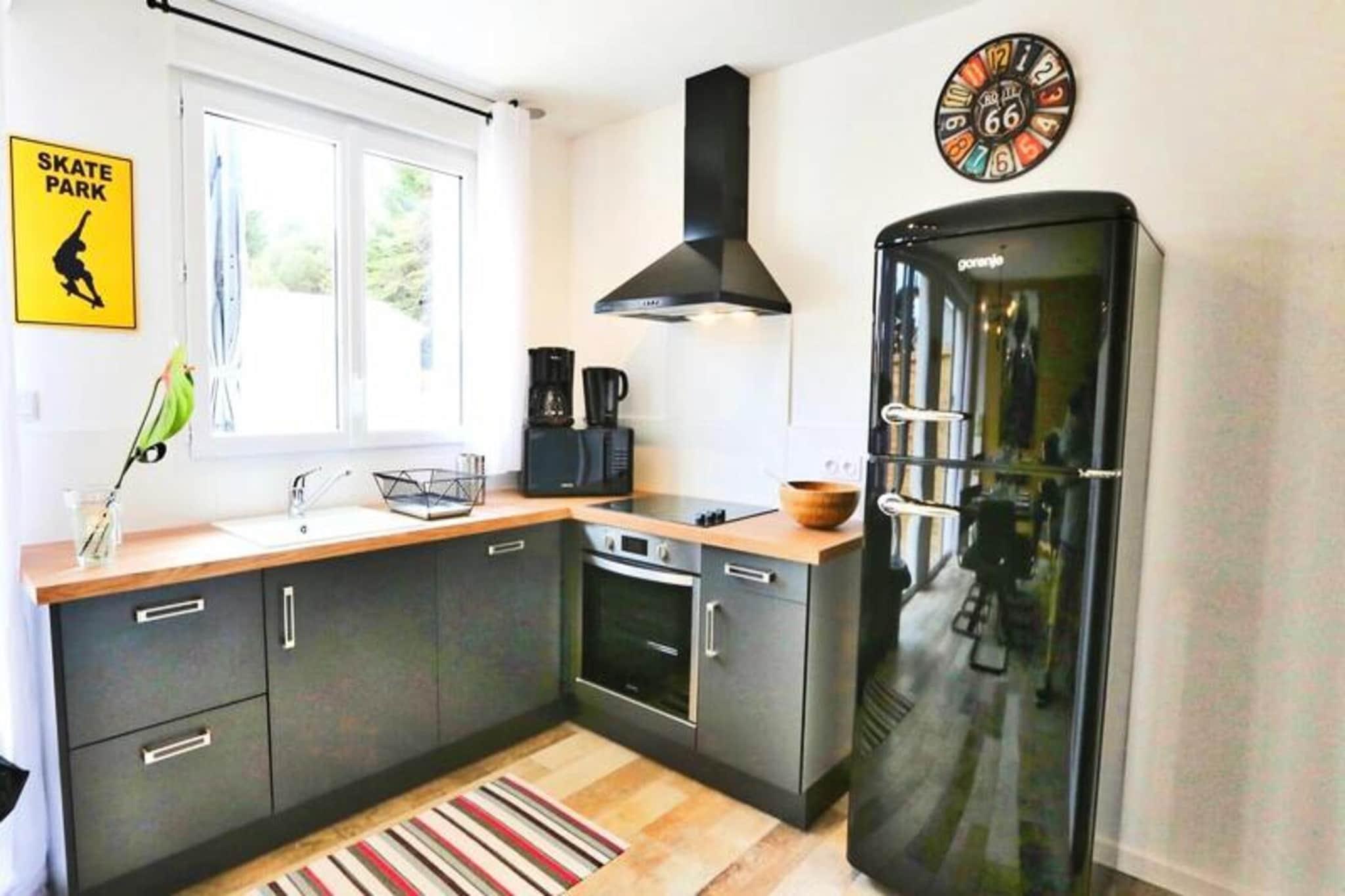 Dette charmerende feriehus på 60 m², indrettet i et californisk tema, kan rumme op til 6 personer. Den har to soveværelser med dobbeltsenge og en sovesofa i stuen til ekstra soveplads. Ejendommen er kæledyrsvenlig og byder på kæledyr under 25 kg og tilbyder en privat spa til ultimativ afslapning. Rummet er røgfrit, med en fredfyldt have og træterrasse, komplet med havemøbler, en parasol og en grill eller elektrisk plancha. Ejendommen ligger i hjertet af Pays-de-Monts National Forest, kun få minutters kørsel fra stranden. Gæsterne kan udforske det omkringliggende område på cykel, med adskillige cykelstier, der snor sig gennem skoven. Placeringen er ideel for naturelskere, med nem adgang til lokale caféer, butikker og markeder. Den nærliggende strand er et perfekt sted at solbade og nyde havet. Huset har et fuldt udstyret køkken med køleskab, fryser, mikroovn, ovn, keramisk kogeplade og kaffemaskine samt alt nødvendigt service. Badeværelset er velindrettet, og ejendommen har også en vaskemaskine, hårtørrer og strygebræt. Gæsterne kan nyde bekvemmeligheden ved tv med TNT-kanaler, og den private spa er tilgængelig efter anmodning for en afslappende oplevelse.