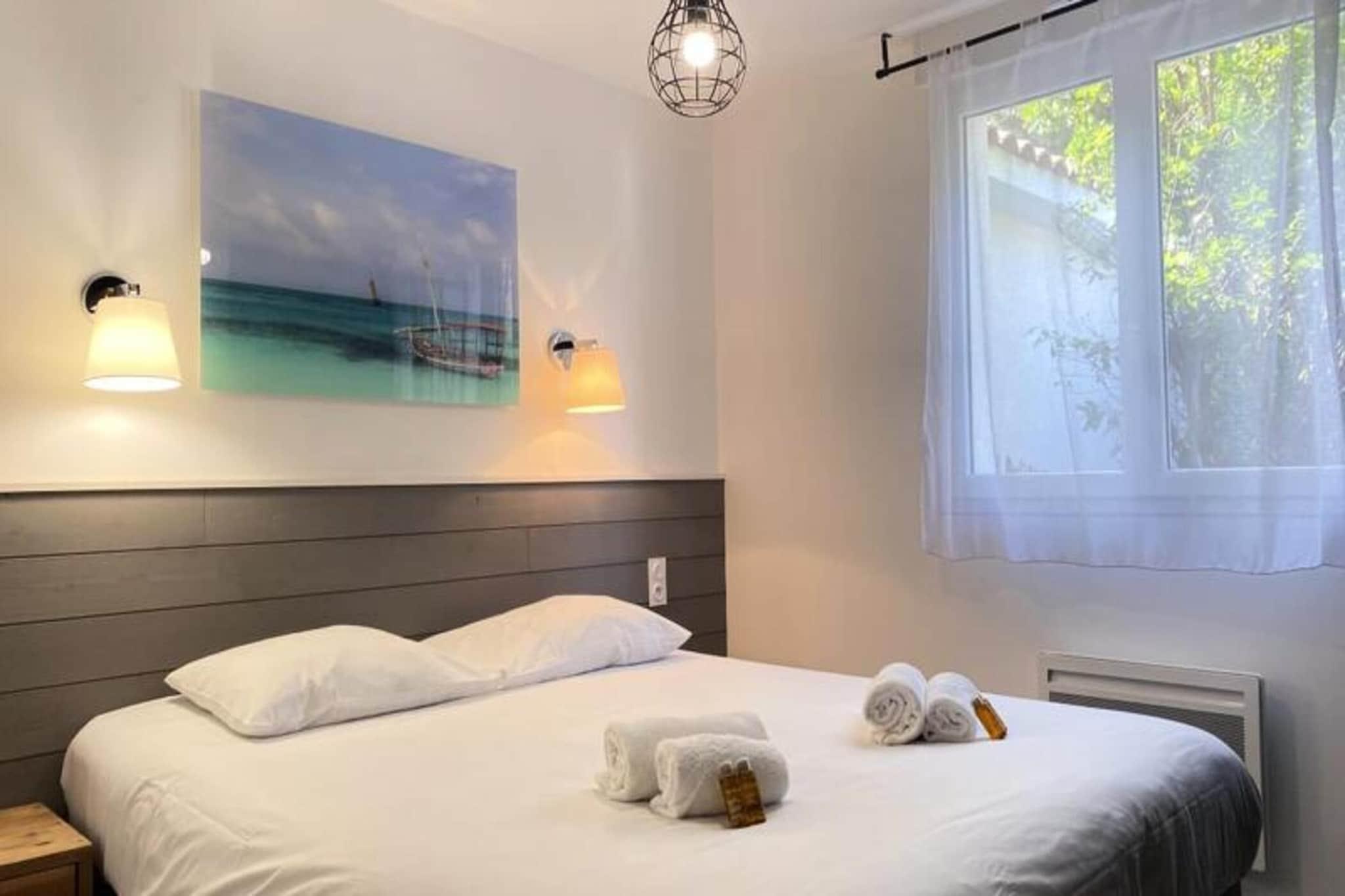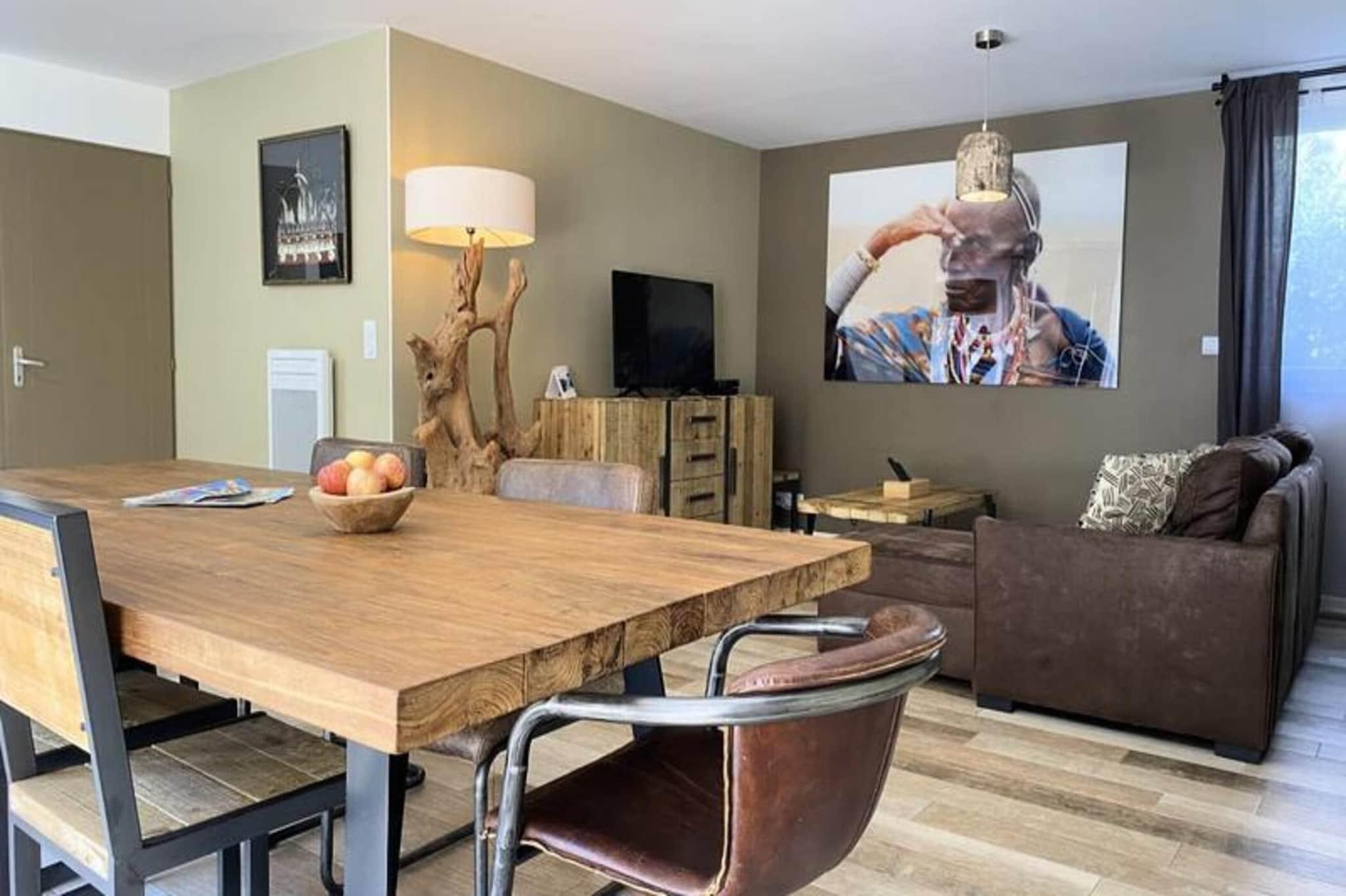 Dette feriehus p? 80 m², med tema omkring Tanzania, tilbyder et fredeligt tilflugtssted for op til 10 personer. Det har 4 sovev?relser med dobbeltsenge og en sovesofa til dobbeltseng i stuen. Hjemmet er k?ledyrsvenligt for dyr under 25 kg, mod et lille ekstra gebyr. Senget?j leveres, men h?ndkl?der er ikke inkluderet, med mulighed for leje. En privat spa til 6 personer er ogs? tilg?ngelig mod et ekstra gebyr, perfekt til at slappe af efter en dag med aktiviteter. Ejendommen er ikke egnet til st?jende k?ledyr, og g?ster bedes rydde op inden afrejse, medmindre de v?lger slutreng?ring. Beliggende i hjertet af Pays-de-Monts nationalskov, er hjemmet kun f? minutter fra stranden og omgivet af natursk?nne cykelstier. I n?rheden kan g?sterne udforske naturstier, slappe af p? stranden eller bes?ge lokale caf?er og markeder for at opleve regionens charme. De rolige skovmilj?er giver en fredfyldt kulisse for en afslappende ferie. Ejendommen omfatter et fuldt udstyret k?kken med ovn, k?leskab, fryser, opvaskemaskine, mikroovn, kaffemaskine og andre v?sentlige ting. Den rummelige opholdsstue har et fjernsyn med TNT-kanaler, og badev?relset er veludstyret med en h?rt?rrer. Nyd udend?rs spisning p? tr?terrassen med havem?bler, parasol og grillfaciliteter, perfekt til afslappede m?ltider.