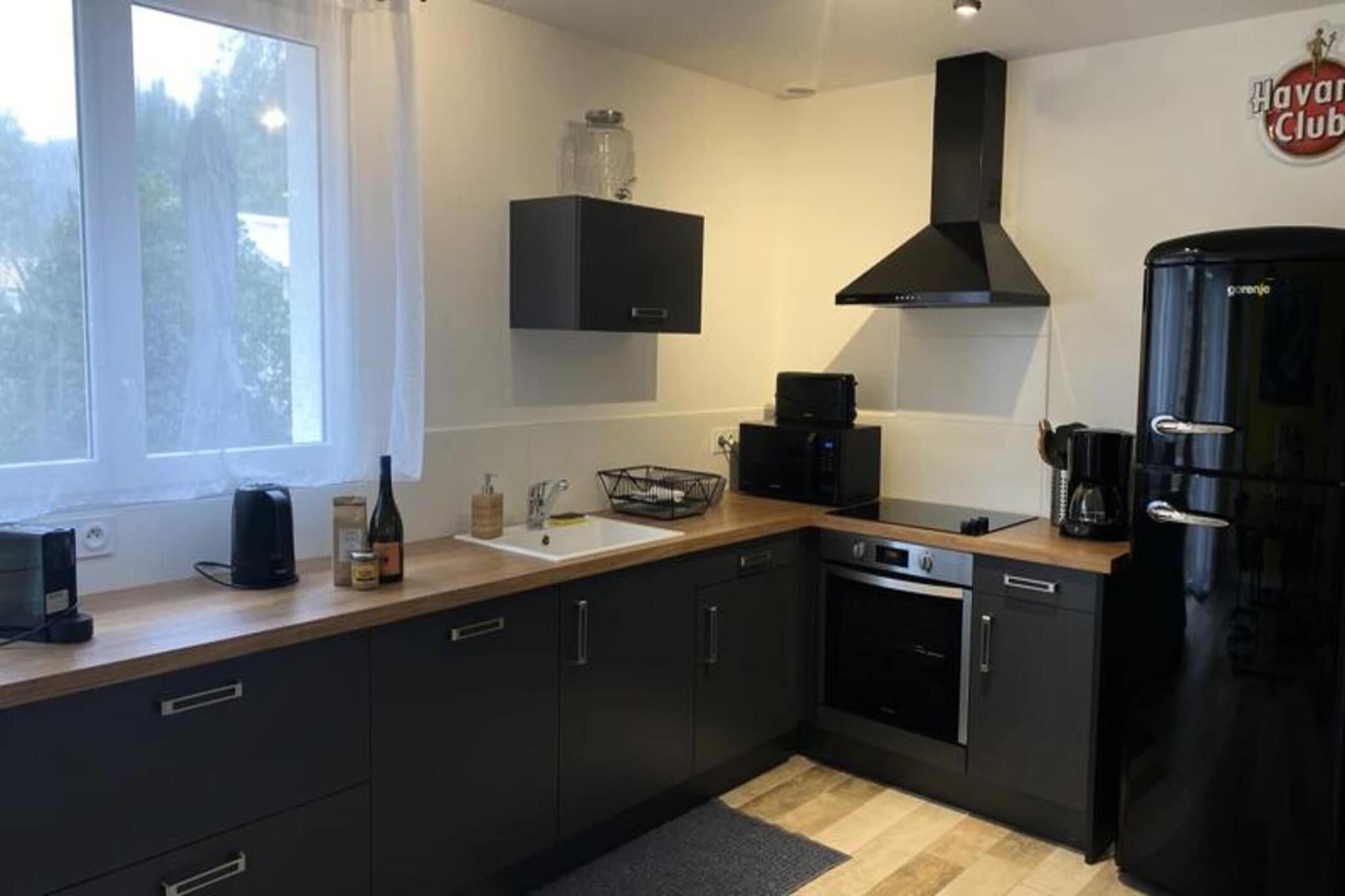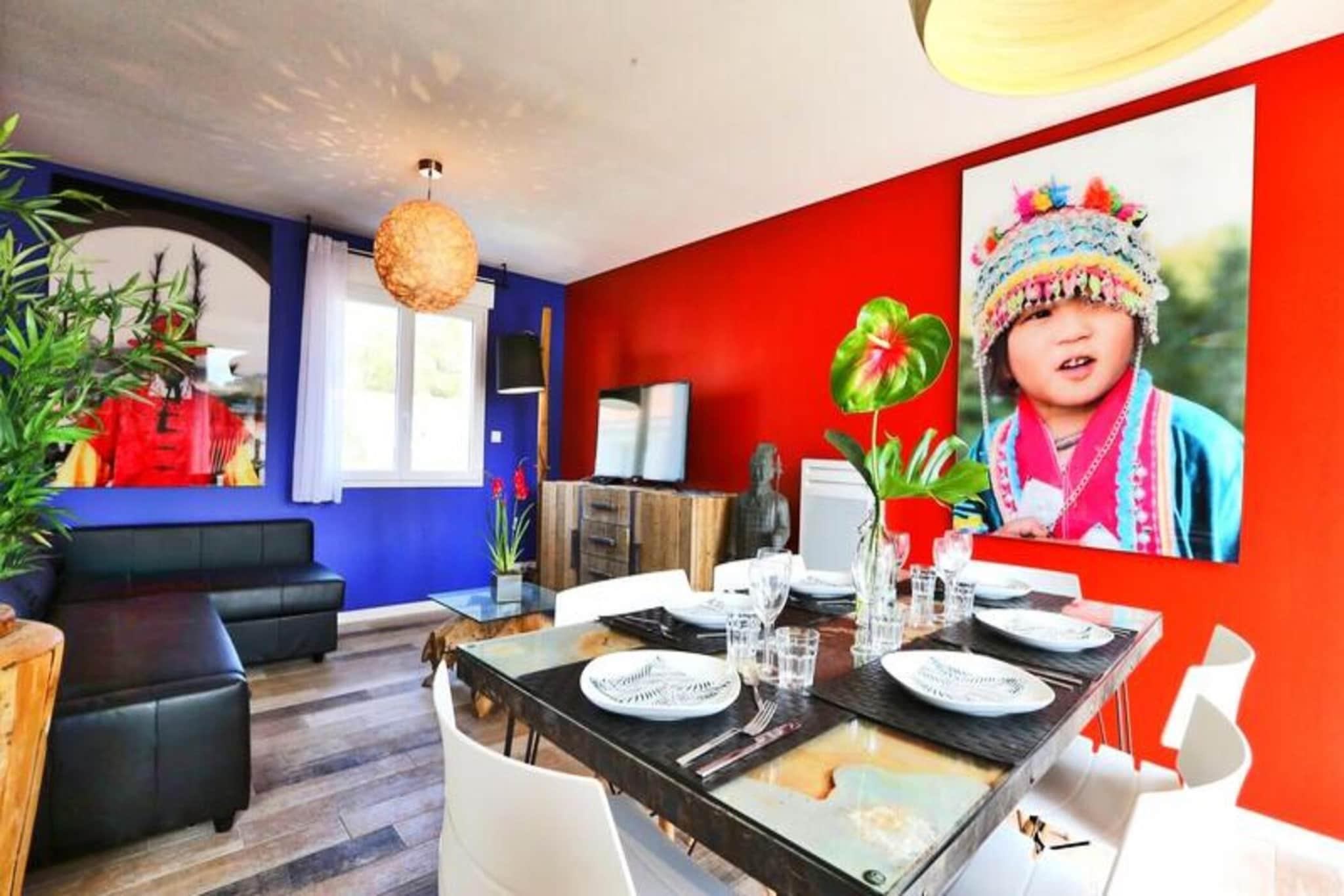 Dette charmerende feriehus på 50 m² er indrettet i et koreansk tema og tilbyder komfortabel indkvartering for op til 6 personer. Ejendommen indeholder to soveværelser med dobbeltsenge, samt en sovesofa i stuen til ekstra soveplads. Kæledyr under 25 kg er velkomne mod et tillægsgebyr. Gæsterne kan nyde en privat 6-personers spa i haven (valgfrit), perfekt til at slappe af under opholdet. Indkvarteringen inkluderer også væsentlige faciliteter såsom et fjernsyn med TNT-kanaler, hårtørrer, vaskemaskine, strygebræt og strygejern. Feriehuset er beliggende i hjertet af Pays-de-Monts nationalskov, kun få minutter fra stranden. Det er omgivet af adskillige cykelstier, der er ideelle til at udforske områdets fantastiske naturlige skønhed. Gæsterne kan nemt nå stranden og nærliggende caféer, markeder og lokale attraktioner, hvilket sikrer et bekvemt og afslappende ophold. Ejendommen har et fuldt udstyret køkken med moderne apparater, herunder ovn, køleskab, fryser, opvaskemaskine, mikroovn, kaffemaskine, brødrister og keramisk kogeplade. Badeværelset og køkkenet er velindrettet, og den udendørs træterrasse er ideel til spisning og afslapning med havemøbler, parasol og grill eller elektrisk plancha. Sengetøj er til rådighed, og håndklæder kan lejes mod et tillægsgebyr.