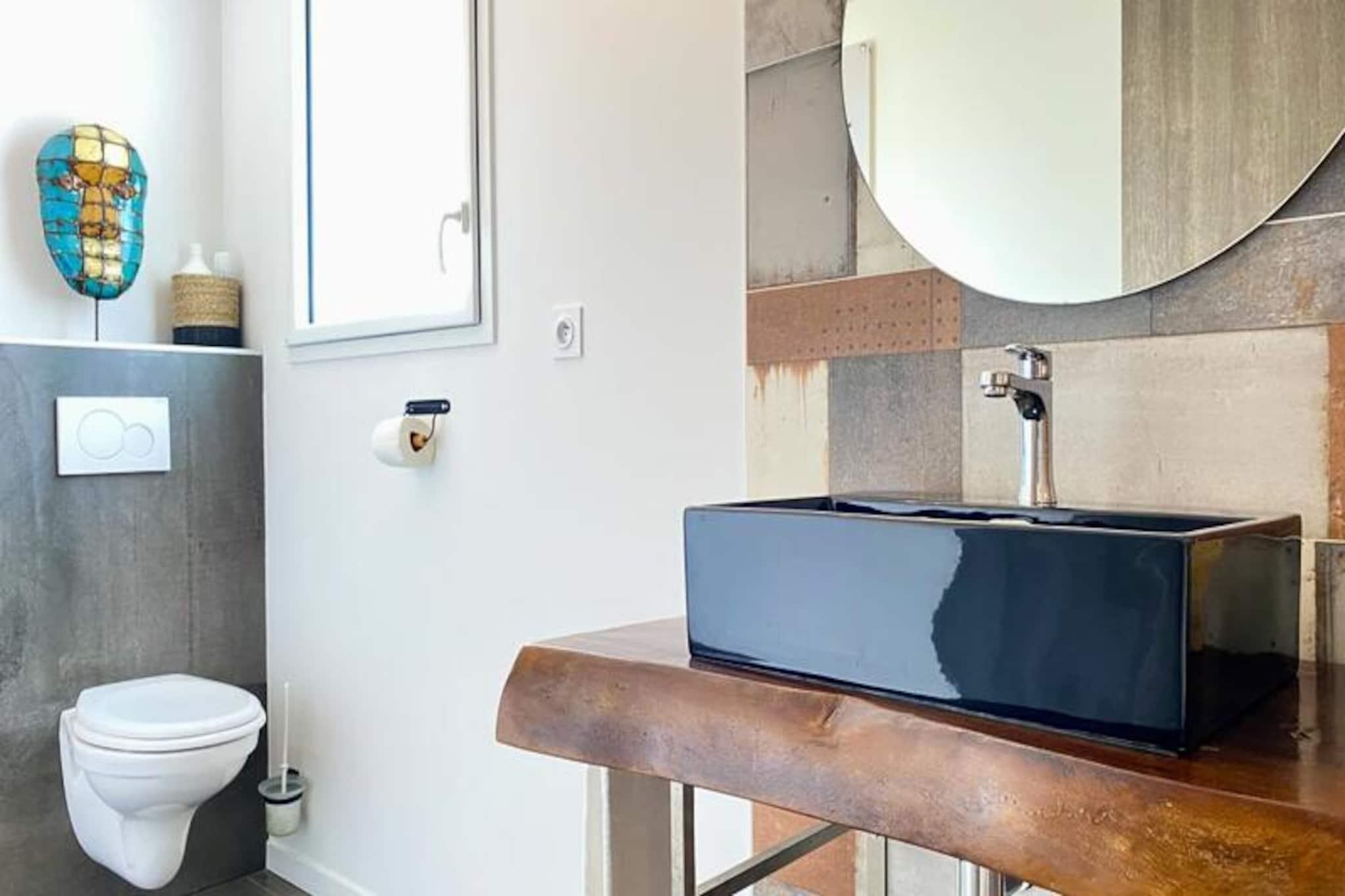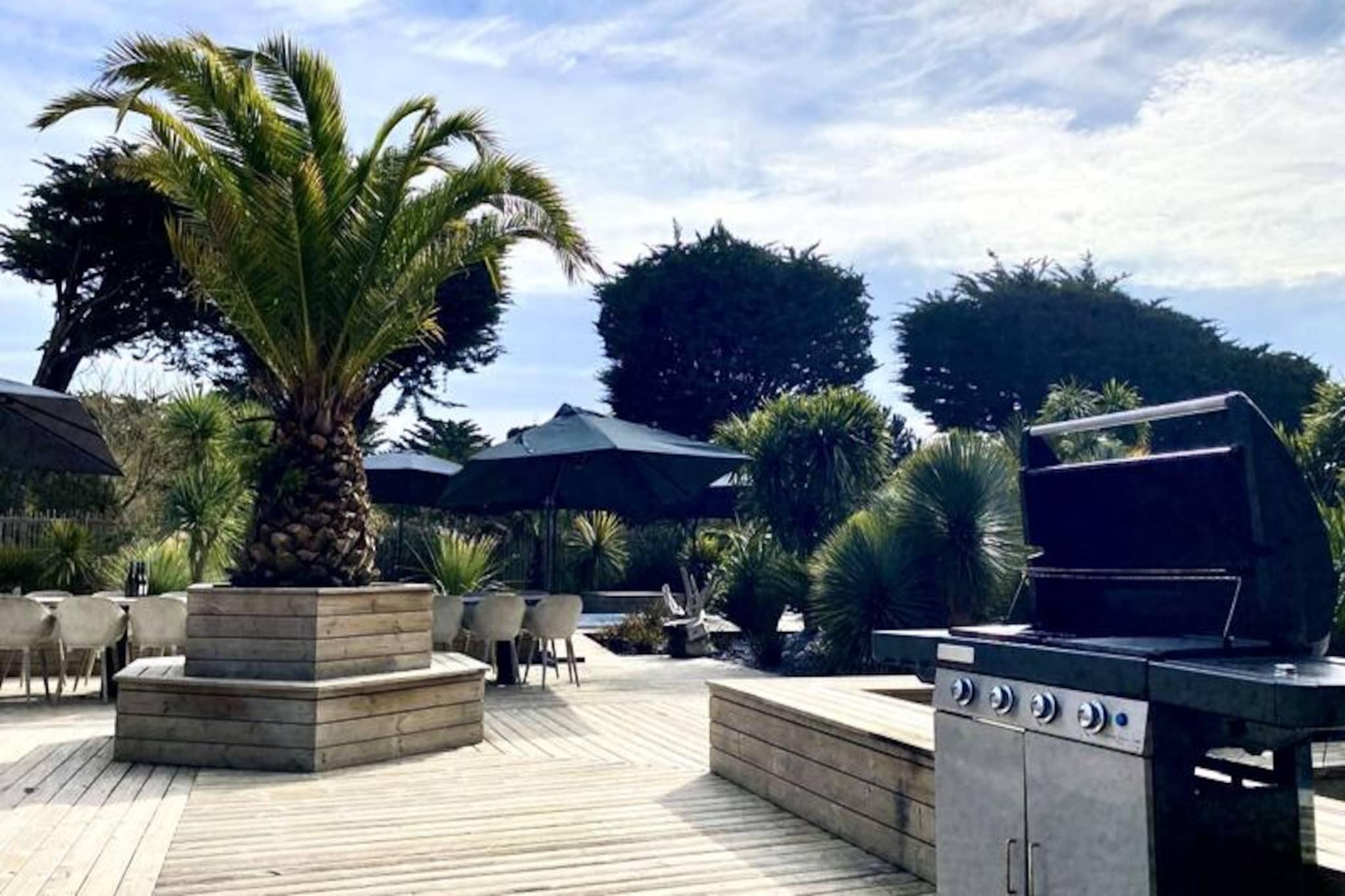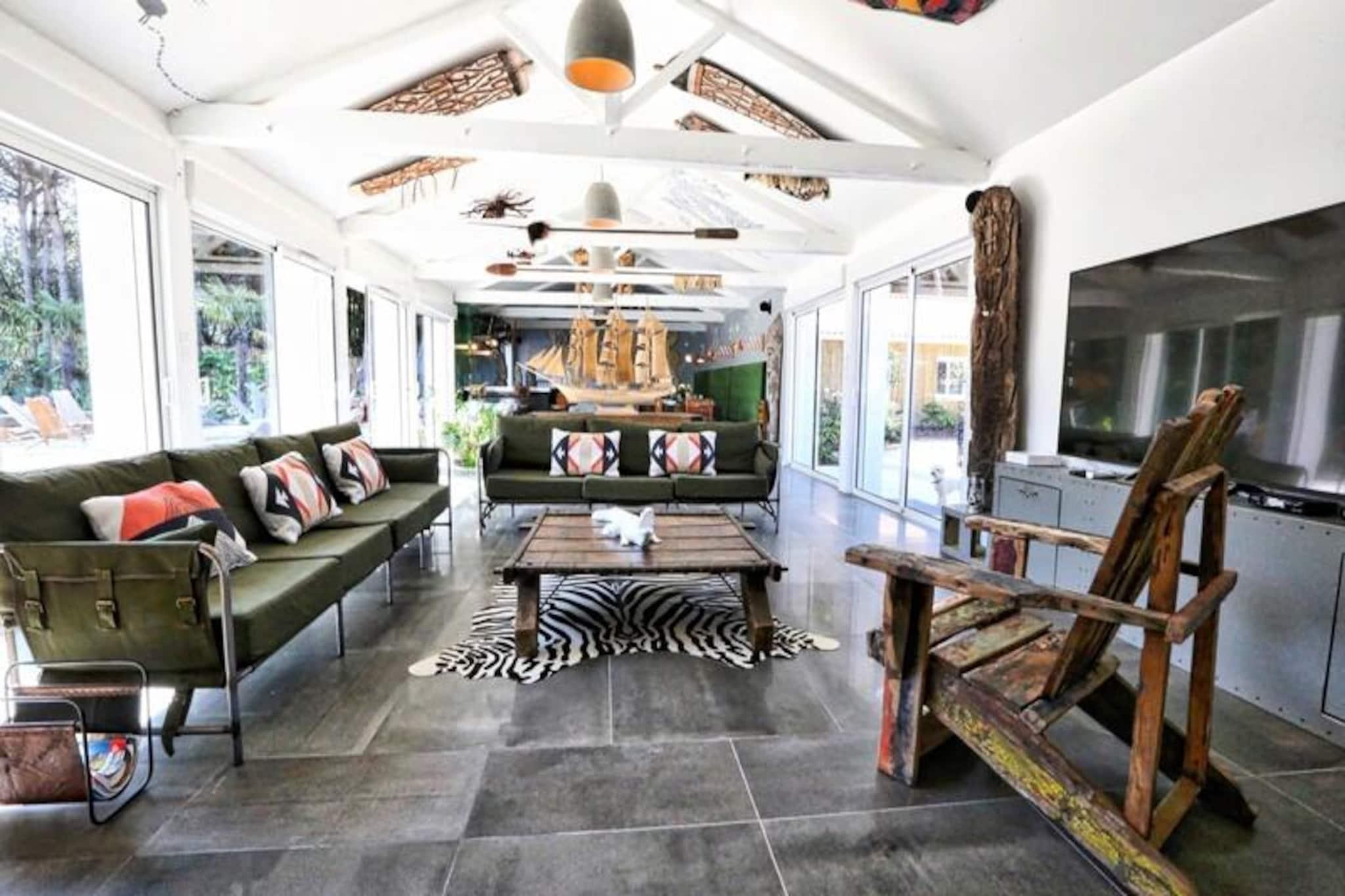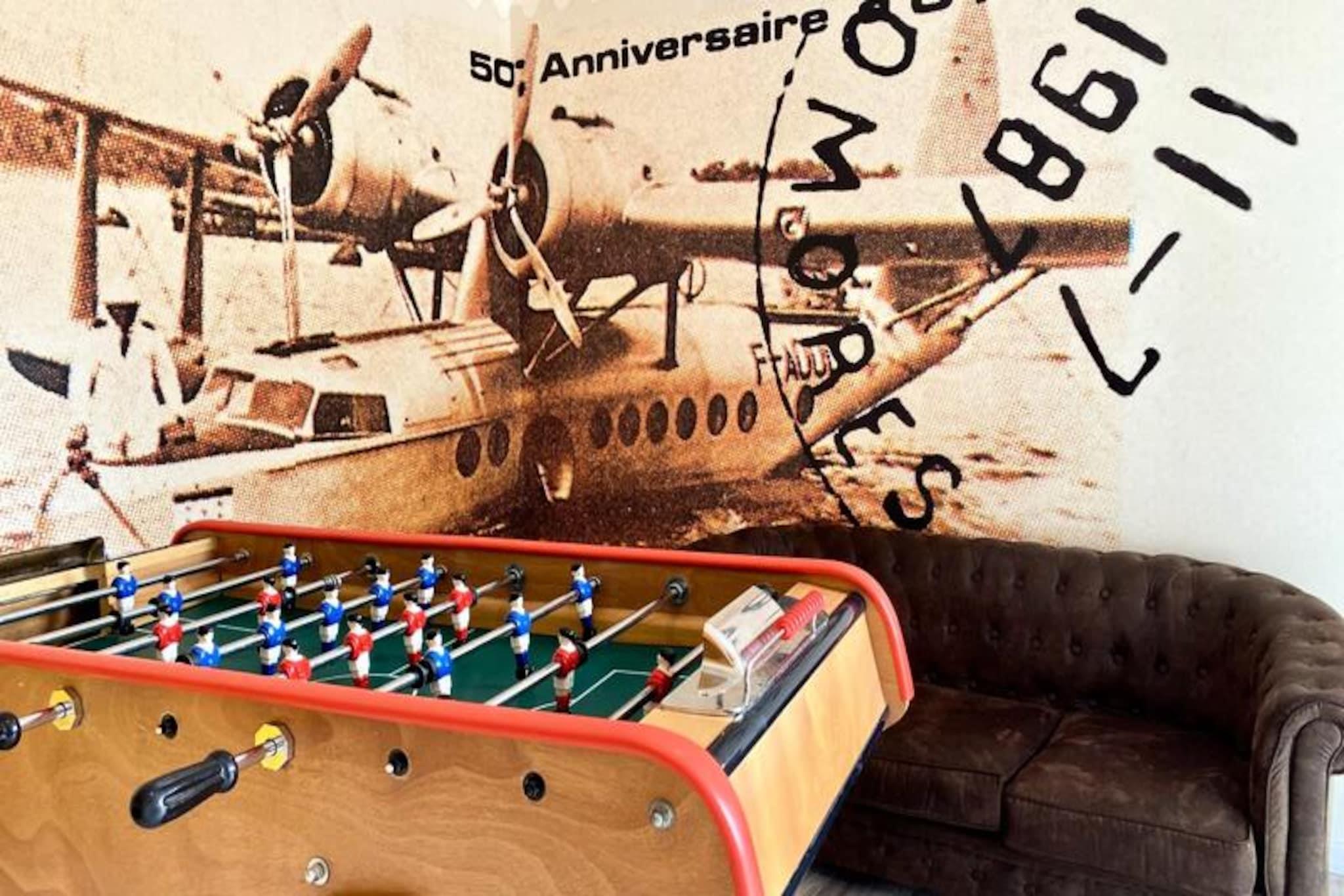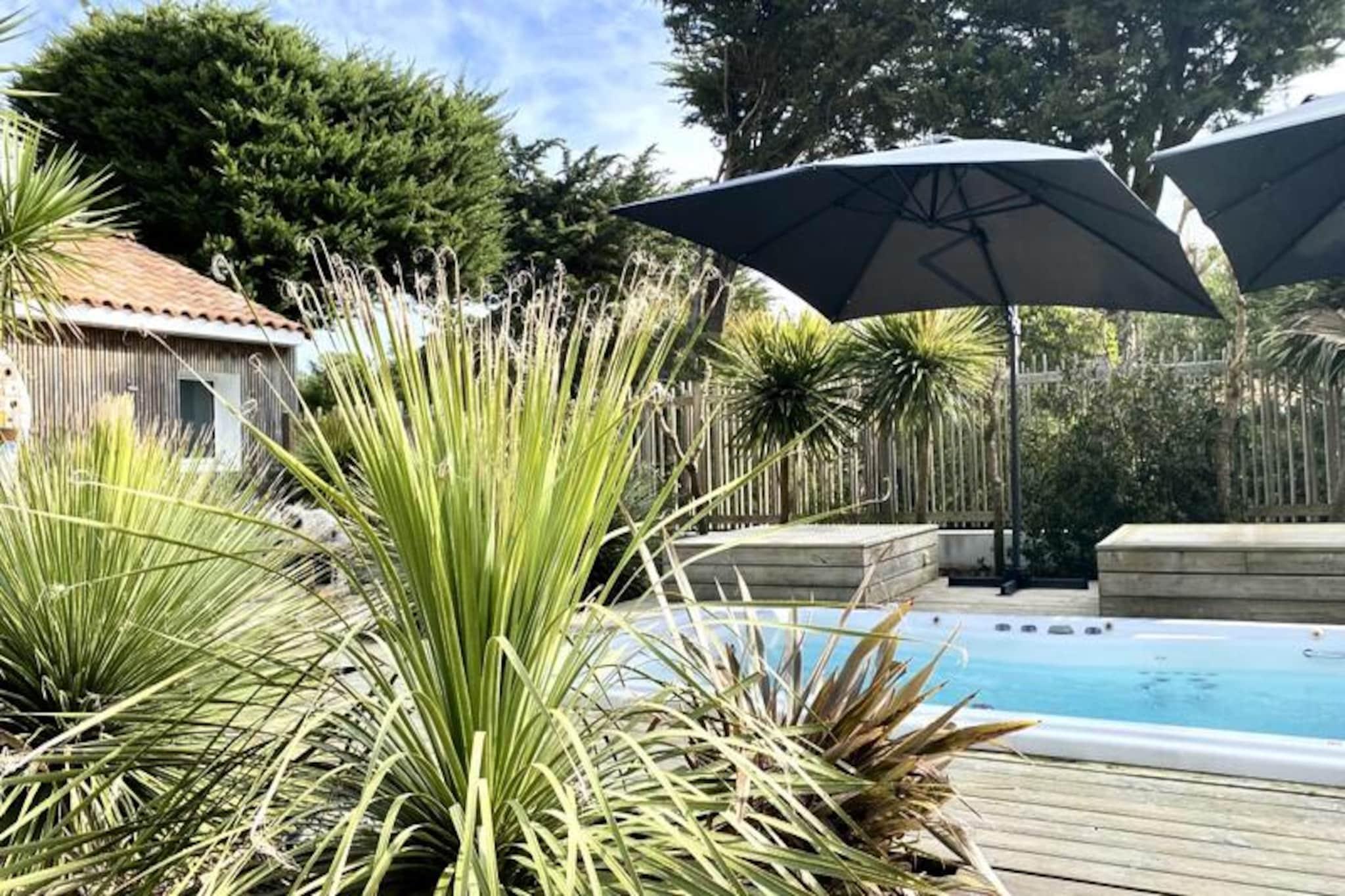 Denne rummelige villa på 280 m², beliggende i hjertet af skoven, tilbyder et roligt tilflugtssted for op til 15 personer. Det har 8 soveværelser, herunder 7 dobbeltsenge og 2 enkeltsenge (som kan omdannes til en dobbeltseng). Villaen har også 4 badeværelser og 4 toiletter, hvilket gør den perfekt til store grupper. Gæsterne kan nyde komforten i et stort receptionsområde med en lounge, stue og bar. Kæledyr under 25 kg er tilladt, hvilket gør det ideelt for familier med lodne ledsagere. Beliggende kun få minutter fra stranden, er denne villa omgivet af den fantastiske Pays-de-Monts nationalskov, der tilbyder rigelige muligheder for at udforske nærliggende cykelstier. Området giver også nem adgang til lokale caféer, markeder og butikker, hvilket gør det til en perfekt destination for både udendørsentusiaster og dem, der søger afslapning. Villaen er fuldt udstyret med moderne bekvemmeligheder, herunder et køkken med ovn, køleskab med fryser, opvaskemaskine, mikroovn og en Krups fuldkorns kaffemaskine. Et velværerum med sauna og balneo er til rådighed, og udenfor kan I slappe af på den store private terrasse med havemøbler, grill og svømmespa. Yderligere funktioner omfatter bordfodbold, brætspil og en vandcykel.