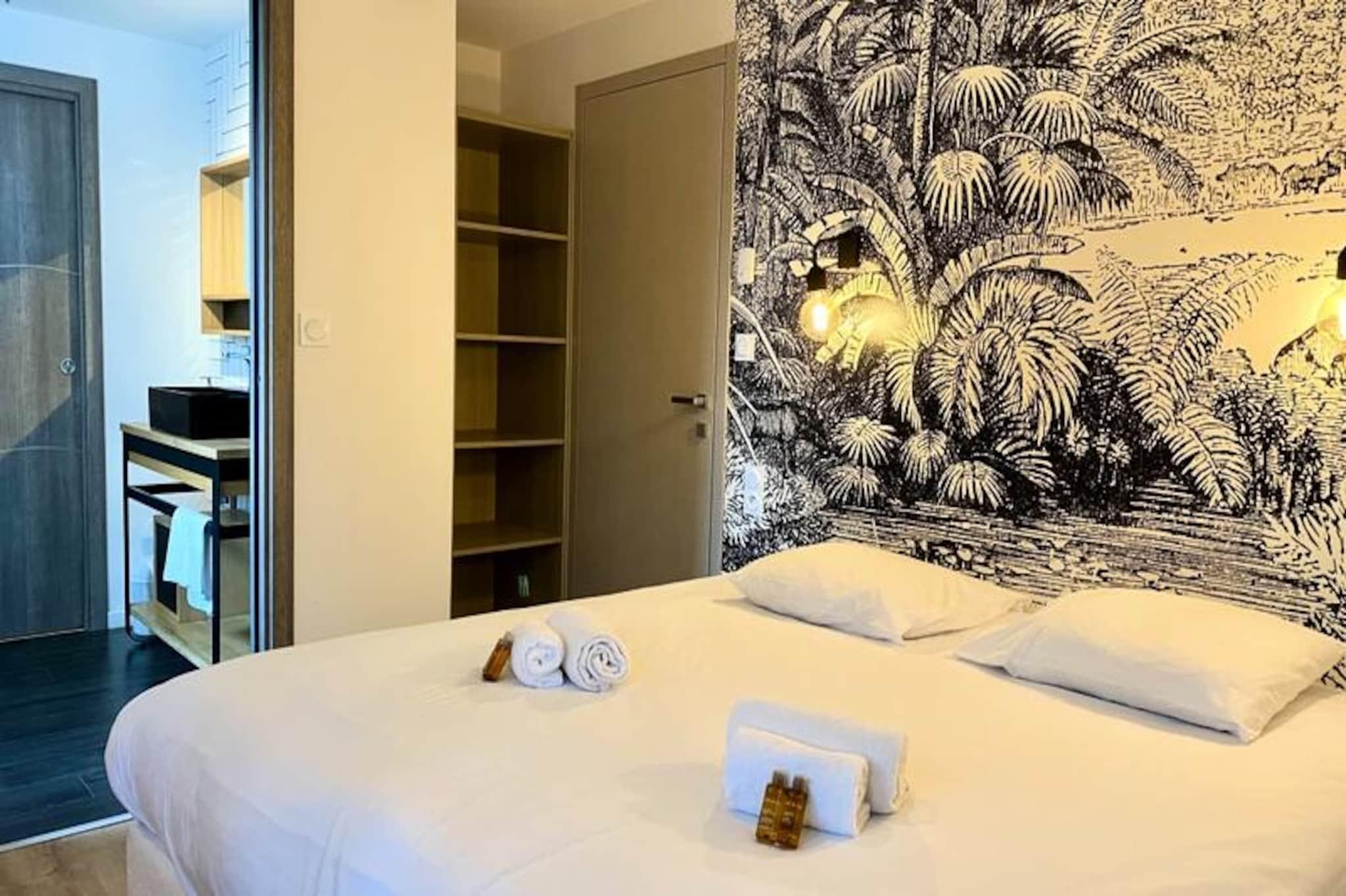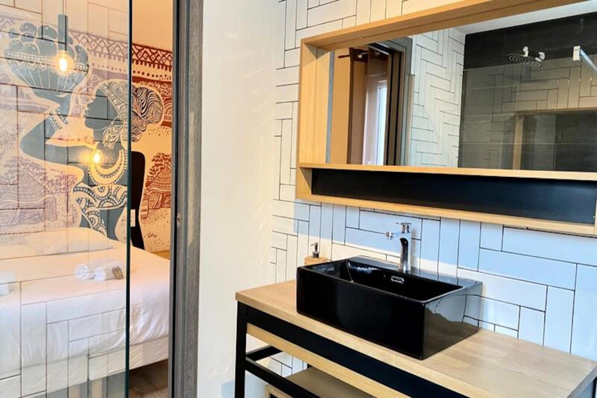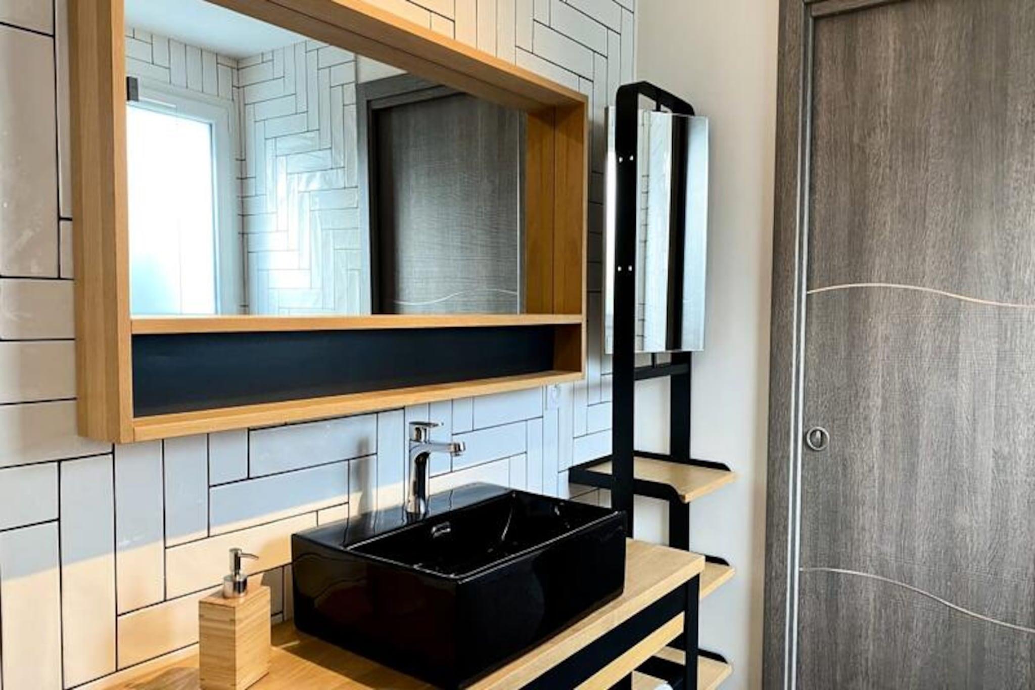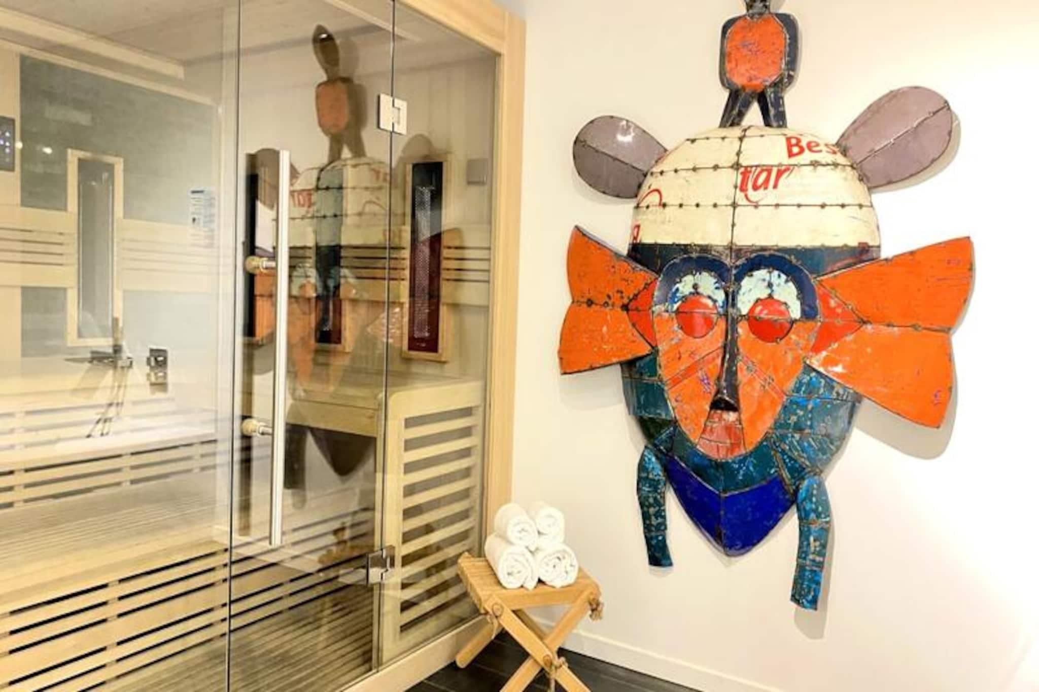 Denne rummelige villa på 280 m², beliggende i hjertet af skoven, tilbyder et roligt tilflugtssted for op til 15 personer. Det har 8 soveværelser, herunder 7 dobbeltsenge og 2 enkeltsenge (som kan omdannes til en dobbeltseng). Villaen har også 4 badeværelser og 4 toiletter, hvilket gør den perfekt til store grupper. Gæsterne kan nyde komforten i et stort receptionsområde med en lounge, stue og bar. Kæledyr under 25 kg er tilladt, hvilket gør det ideelt for familier med lodne ledsagere. Beliggende kun få minutter fra stranden, er denne villa omgivet af den fantastiske Pays-de-Monts nationalskov, der tilbyder rigelige muligheder for at udforske nærliggende cykelstier. Området giver også nem adgang til lokale caféer, markeder og butikker, hvilket gør det til en perfekt destination for både udendørsentusiaster og dem, der søger afslapning. Villaen er fuldt udstyret med moderne bekvemmeligheder, herunder et køkken med ovn, køleskab med fryser, opvaskemaskine, mikroovn og en Krups fuldkorns kaffemaskine. Et velværerum med sauna og balneo er til rådighed, og udenfor kan I slappe af på den store private terrasse med havemøbler, grill og svømmespa. Yderligere funktioner omfatter bordfodbold, brætspil og en vandcykel.