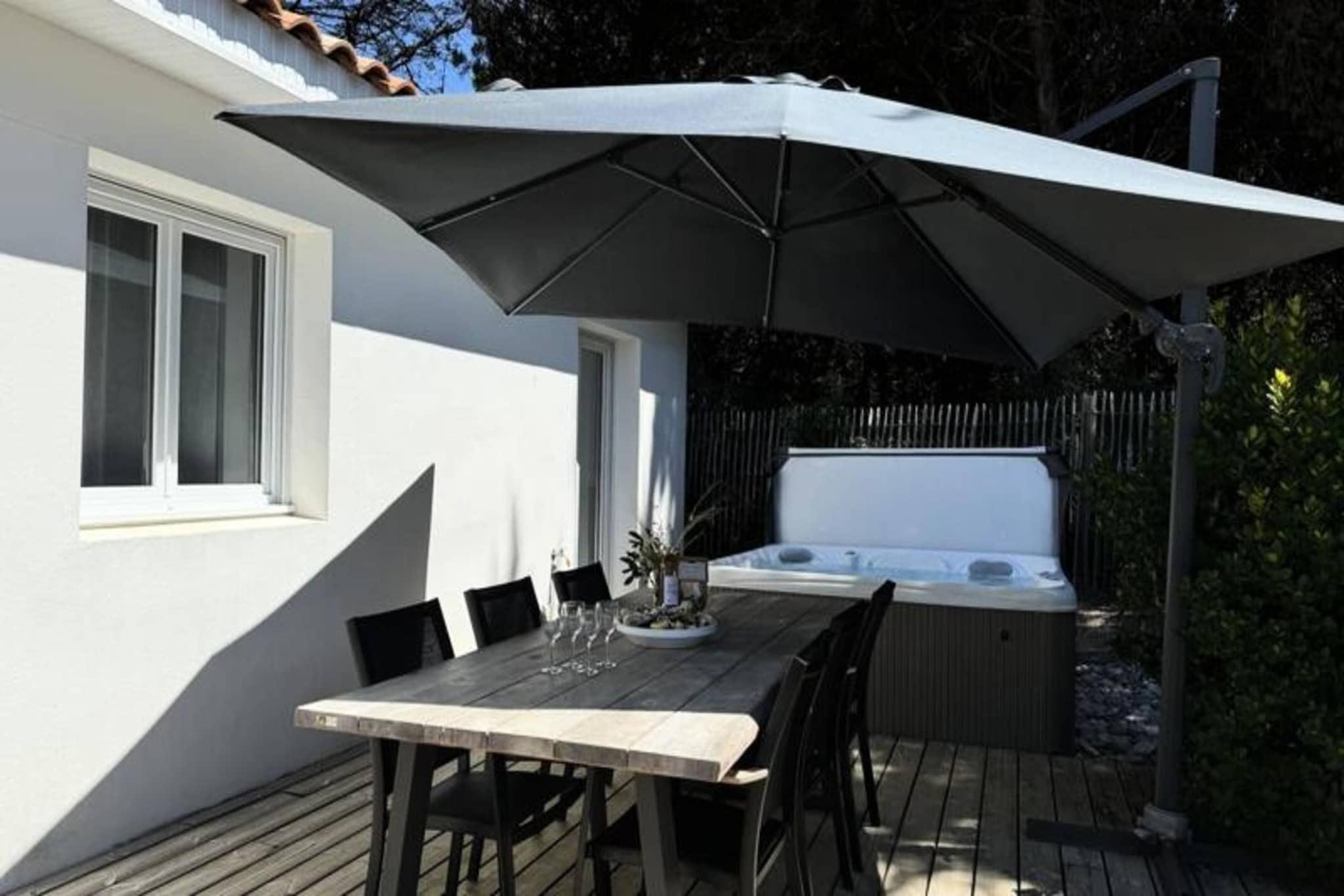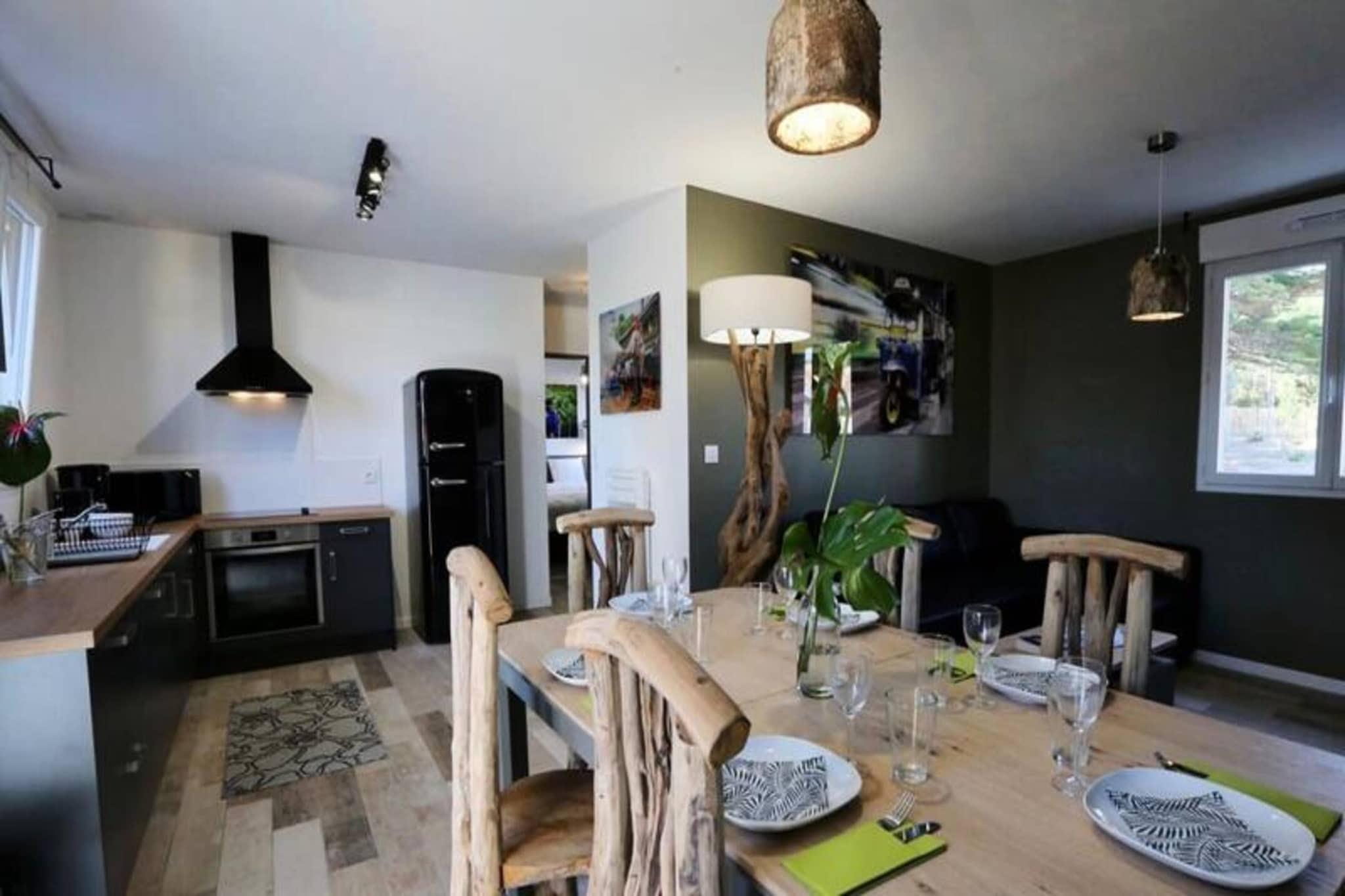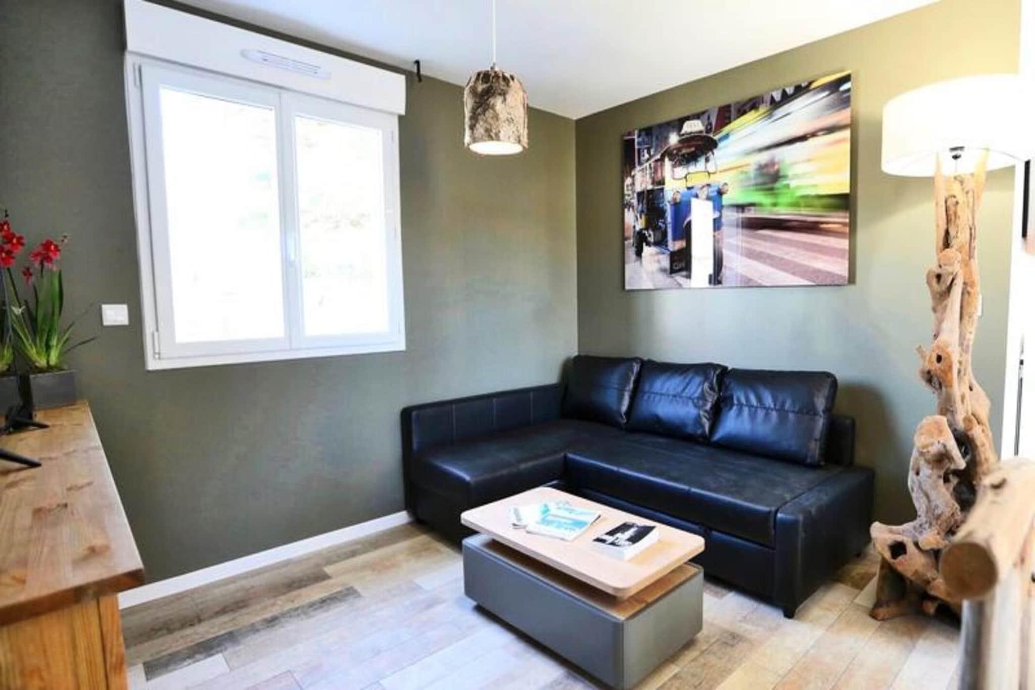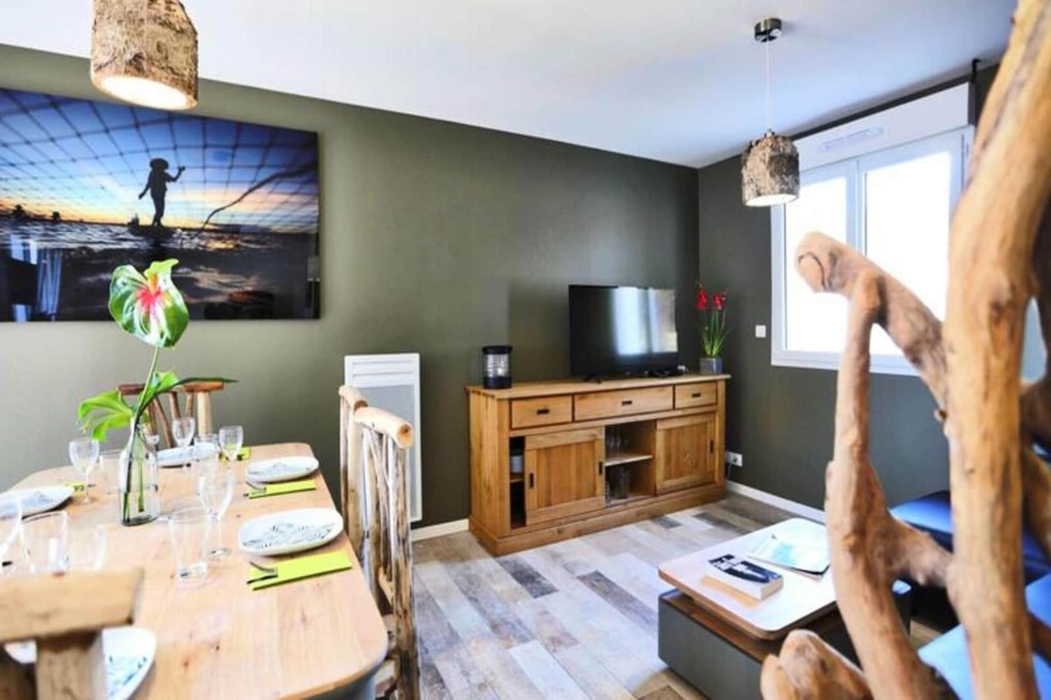Denne charmerende lejlighed p? 50 m², designet med et thai-inspireret tema, tilbyder et afslappende ophold for op til 6 g?ster. I stuen er der en sovesofa til dobbeltseng, mens de to sovev?relser hver har dobbeltsenge. Ejendommen er ikke-ryger, og k?ledyr under 25 kg og ikke st?jende er velkomne mod et gebyr. Et depositum p? EURO 750 er p?kr?vet, og h?ndkl?der leveres ikke, selvom leje er tilg?ngelig. En privat 6-personers spa er tilg?ngelig mod et ekstra gebyr, perfekt til at slappe af. G?ster forventes at g?re rent inden afrejse eller kan v?lge en slutreng?ring for 85 EURO. Beliggende i hjertet af Pays-de-Monts National Forest tilbyder dette tilflugtssted nem adgang til naturen. Stranden ligger kun f? minutter v?k, og der er adskillige cykelstier omkring omr?det, som er ideelle for udend?rsentusiaster. De fredelige skovmilj?er giver en fredfyldt kulisse for en foryngende ferie. I n?rheden finder du lokale butikker, caf?er og restauranter, du kan udforske under dit ophold. Lejligheden har et fuldt udstyret k?kken med ovn, k?leskab, fryser, opvaskemaskine, mikroovn, keramisk kogeplade, kaffemaskine, br?drister, Nespresso-maskine og kedel. Yderligere faciliteter omfatter vaskemaskine, strygebr?t, tv med TNT-kanaler og h?rt?rrer. Udenfor forbedrer en rummelig tr?terrasse med havem?bler, en parasol og en grill eller elektrisk plancha ferieoplevelsen.