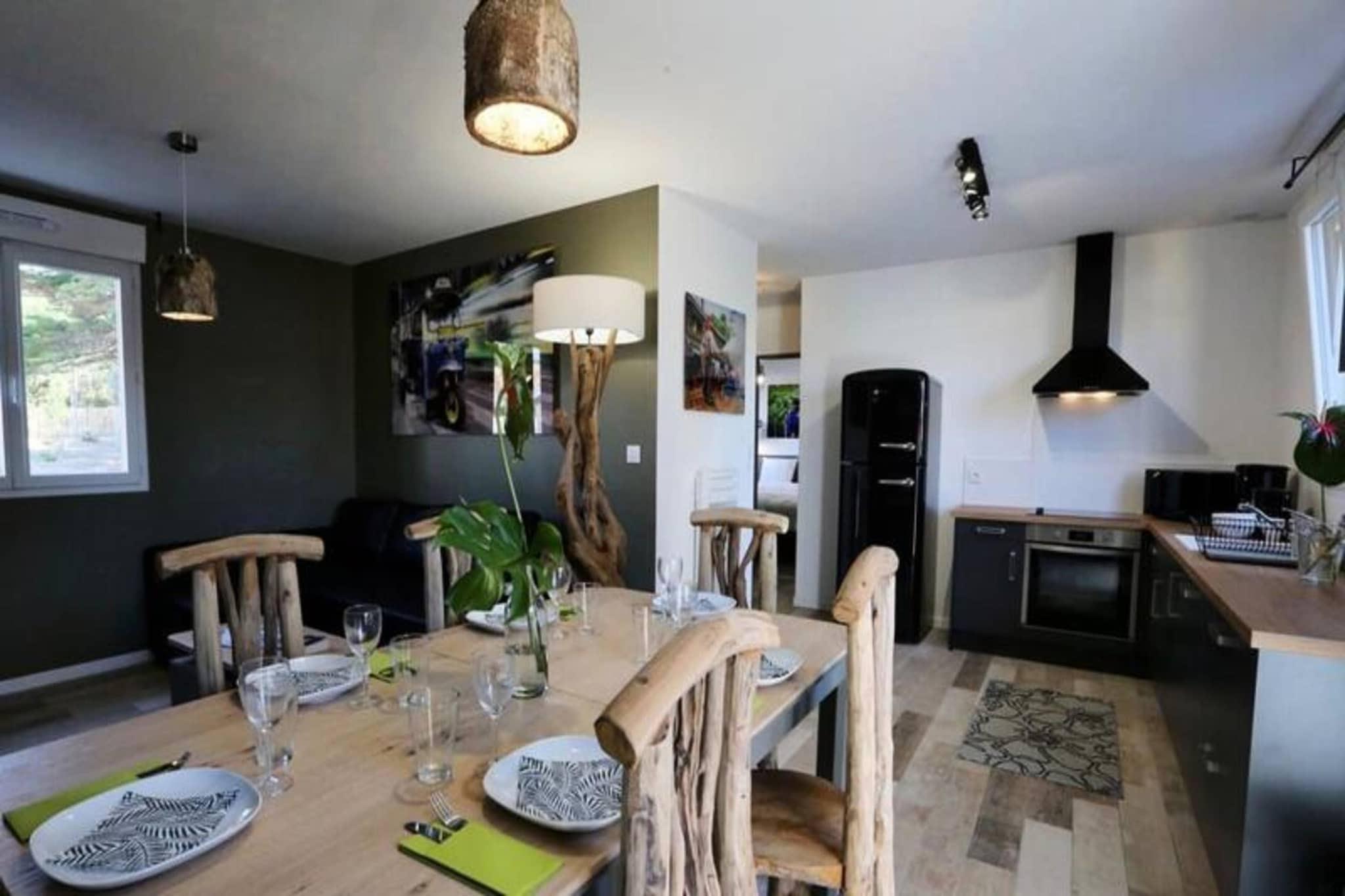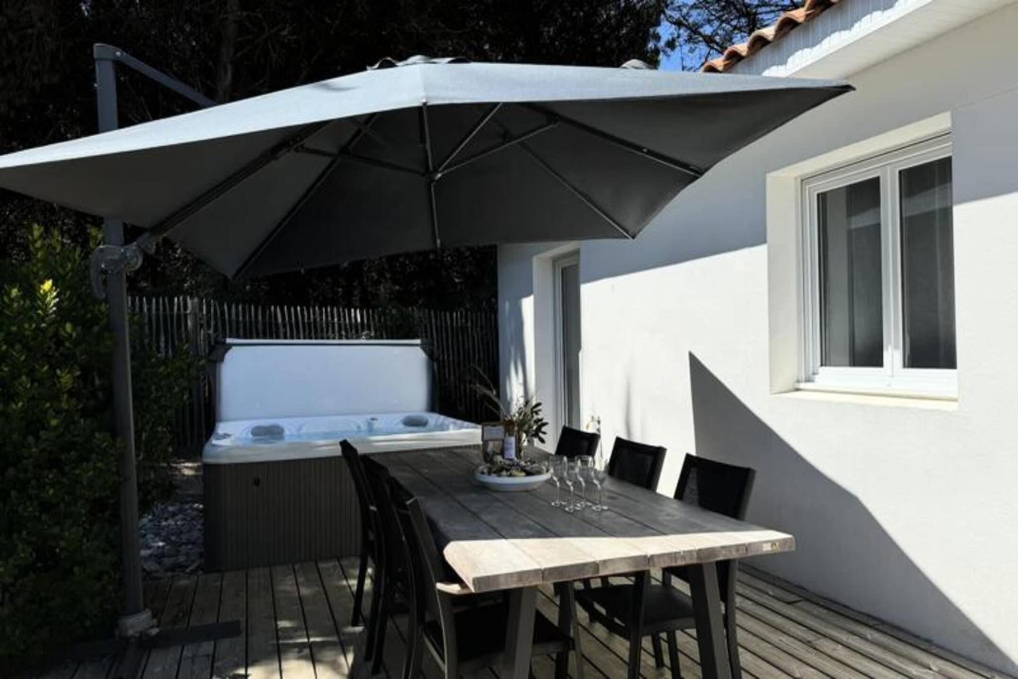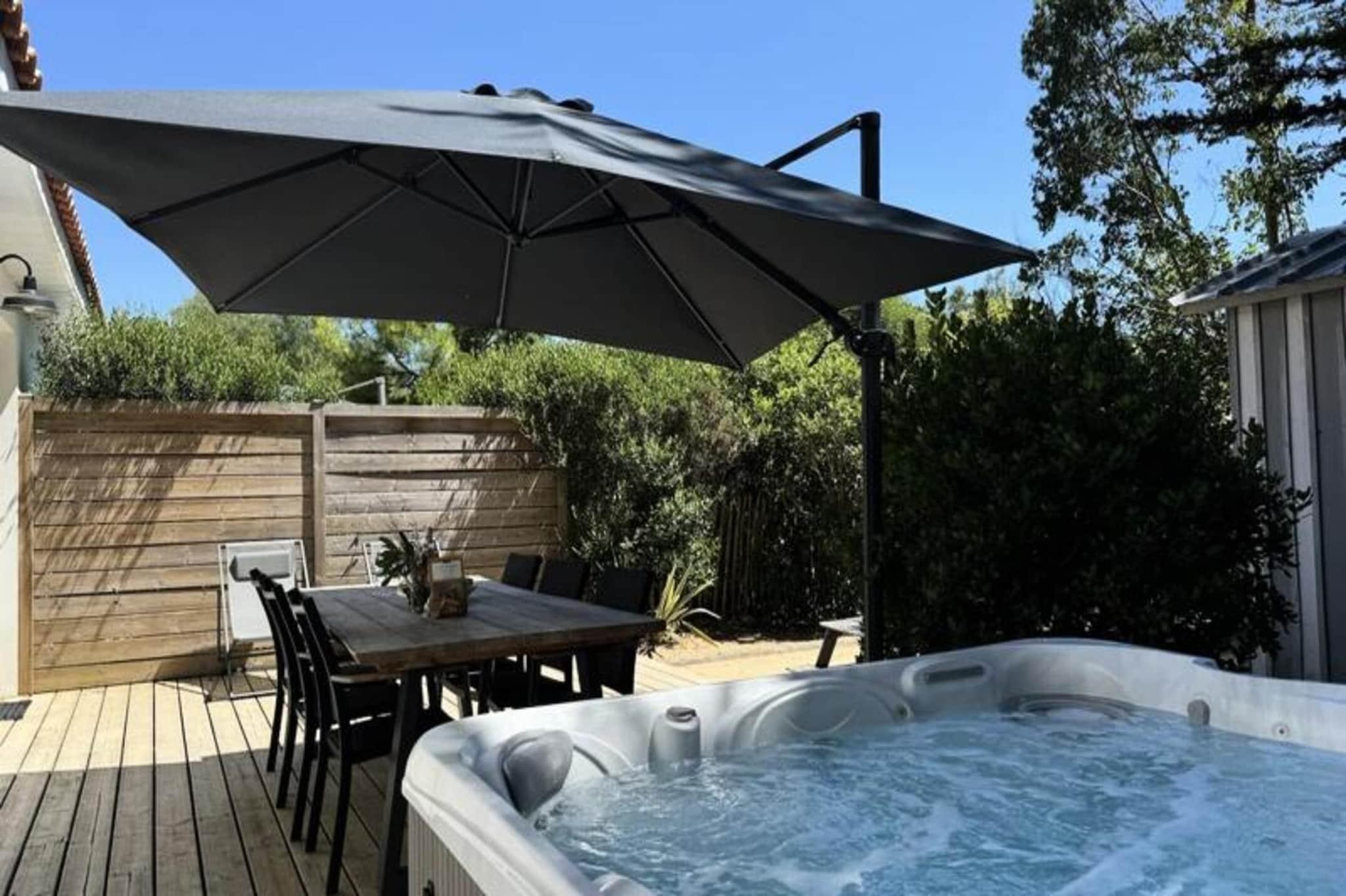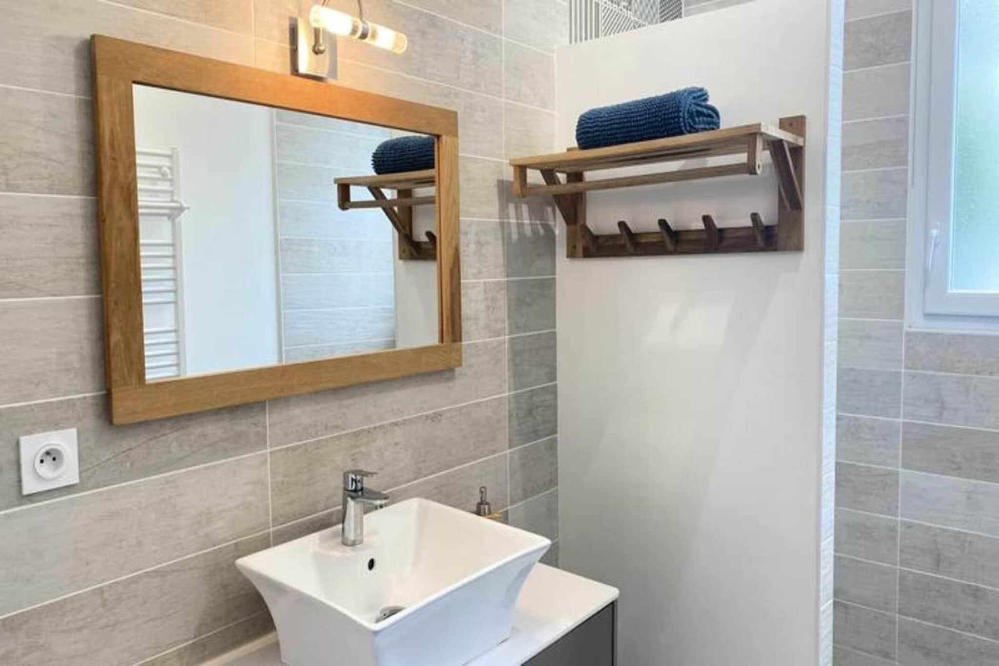 Denne charmerende lejlighed p? 50 m², designet med et thai-inspireret tema, tilbyder et afslappende ophold for op til 6 g?ster. I stuen er der en sovesofa til dobbeltseng, mens de to sovev?relser hver har dobbeltsenge. Ejendommen er ikke-ryger, og k?ledyr under 25 kg og ikke st?jende er velkomne mod et gebyr. Et depositum p? EURO 750 er p?kr?vet, og h?ndkl?der leveres ikke, selvom leje er tilg?ngelig. En privat 6-personers spa er tilg?ngelig mod et ekstra gebyr, perfekt til at slappe af. G?ster forventes at g?re rent inden afrejse eller kan v?lge en slutreng?ring for 85 EURO. Beliggende i hjertet af Pays-de-Monts National Forest tilbyder dette tilflugtssted nem adgang til naturen. Stranden ligger kun f? minutter v?k, og der er adskillige cykelstier omkring omr?det, som er ideelle for udend?rsentusiaster. De fredelige skovmilj?er giver en fredfyldt kulisse for en foryngende ferie. I n?rheden finder du lokale butikker, caf?er og restauranter, du kan udforske under dit ophold. Lejligheden har et fuldt udstyret k?kken med ovn, k?leskab, fryser, opvaskemaskine, mikroovn, keramisk kogeplade, kaffemaskine, br?drister, Nespresso-maskine og kedel. Yderligere faciliteter omfatter vaskemaskine, strygebr?t, tv med TNT-kanaler og h?rt?rrer. Udenfor forbedrer en rummelig tr?terrasse med havem?bler, en parasol og en grill eller elektrisk plancha ferieoplevelsen.