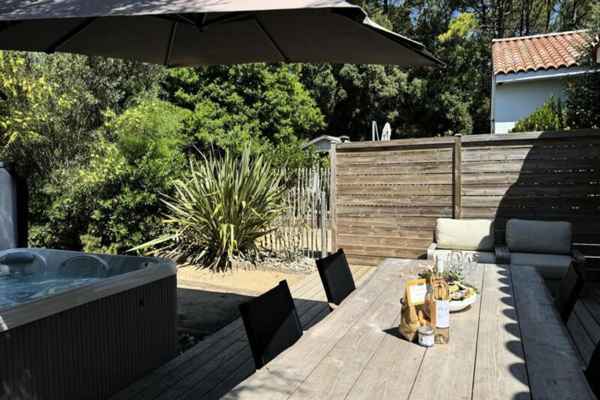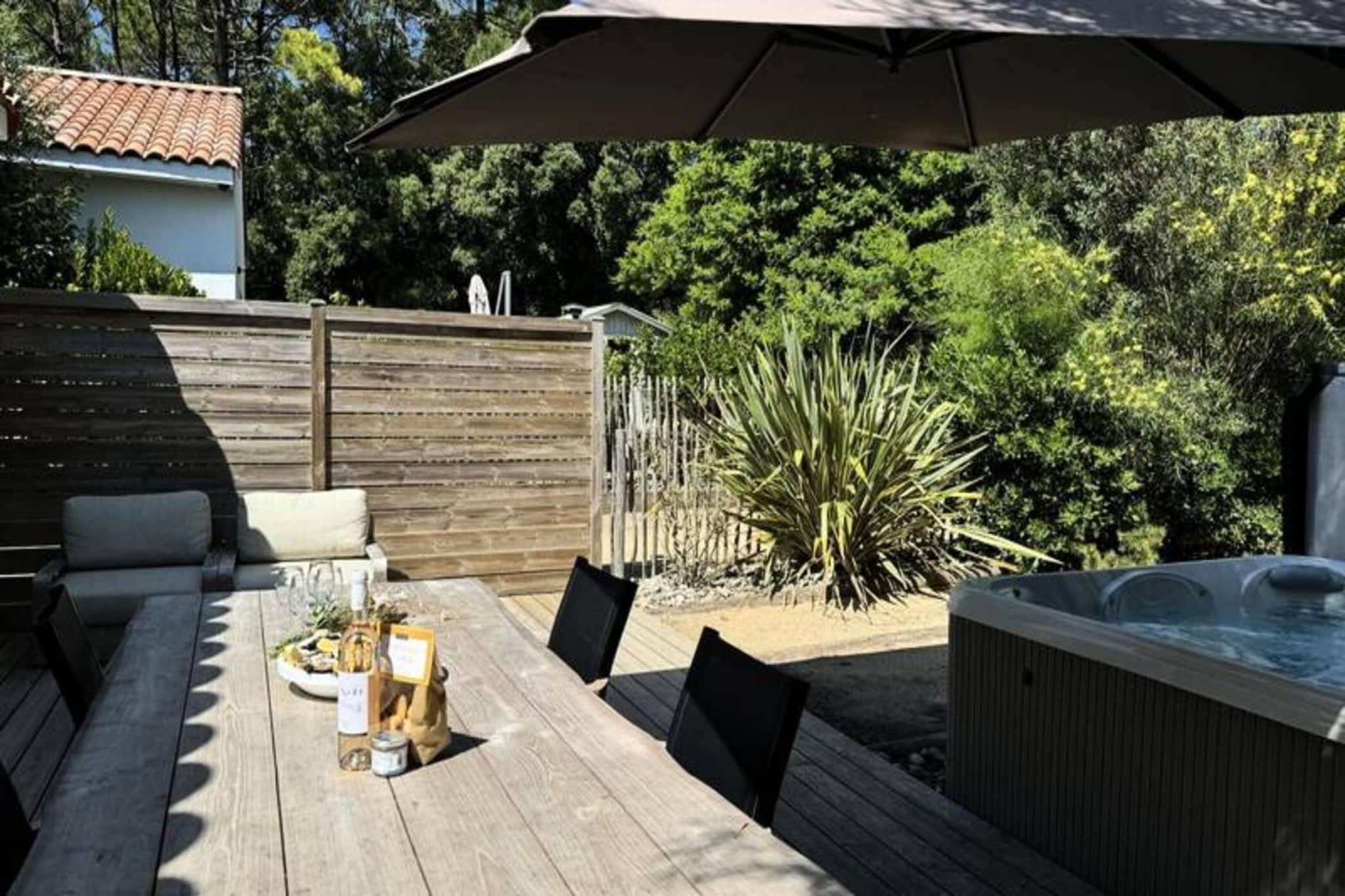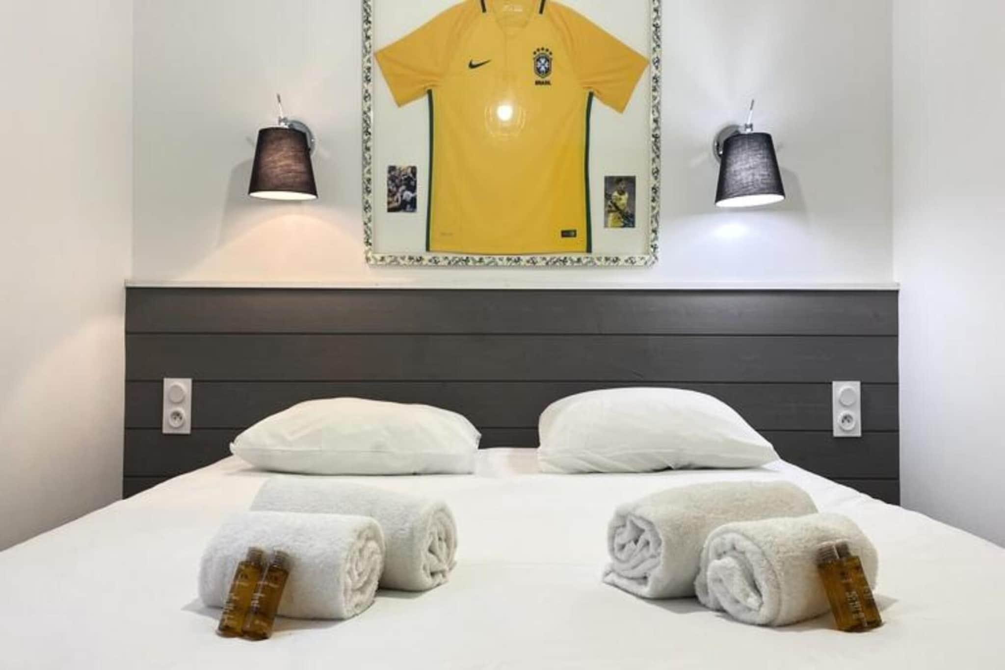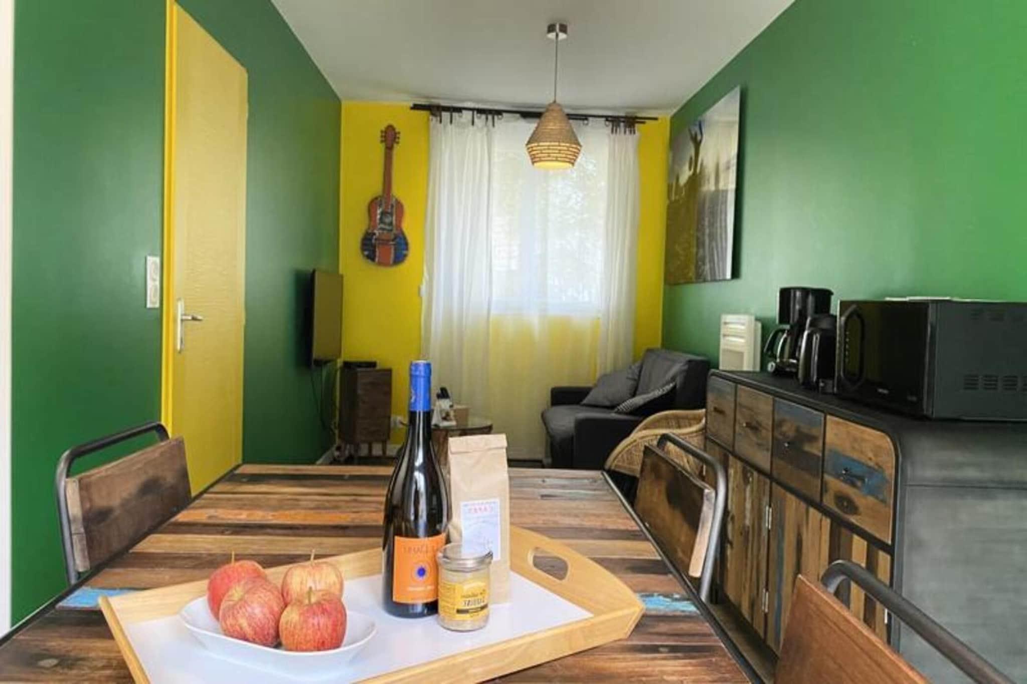 Denne charmerende lejlighed p? 45 m² er ideel til op til 4 g?ster, og byder p? to hyggelige sovev?relser med dobbeltsenge. Rummet er indrettet med et unikt brasiliansk tema, der tilbyder en afslappende og farverig atmosf?re. Lejligheden er udstyret med v?sentlige faciliteter s?som et fjernsyn med TNT-kanaler, en vaskemaskine, strygejern og h?rt?rrer. K?ledyr under 25 kg er velkomne mod et ekstra gebyr p? EURO15. Senget?j er forudsat, selvom h?ndkl?der ikke er; de kan lejes for EURO5 pr. person. Den private spa, tilg?ngelig for EURO40 pr. ophold, tilf?jer et strejf af luksus til dit tilbagetog. Indkvarteringen skal reng?res af g?sterne, ellers kan en reng?ringspakke arrangeres for EURO85. Denne lejlighed ligger i hjertet af Pays-de-Monts nationalskov og tilbyder nem adgang til maleriske cykelstier og kun f? minutter fra stranden. Uanset om du leder efter en rolig flugt i naturen eller en dag p? stranden, finder du den perfekte balance. Nyd de rolige omgivelser eller udforsk de n?rliggende lokale markeder, caf?er og butikker, hvilket g?r det til en ideel base for afslapning og udforskning. Det fuldt udstyrede k?kken omfatter ovn, k?leskab med fryser, opvaskemaskine, mikroovn, kaffemaskine, br?drister og kedel. Den rummelige opholdsstue giver et hyggeligt sted at slappe af, mens den smukke tr?terrasse indbyder til at nyde udend?rs spisning eller slappe af med havem?bler. For ekstra bekvemmelighed tilbyder overnatningsstedet en privat spa, tilg?ngelig mod et ekstra gebyr, hvilket g?r dette til et perfekt sted for en foryngende ferie.