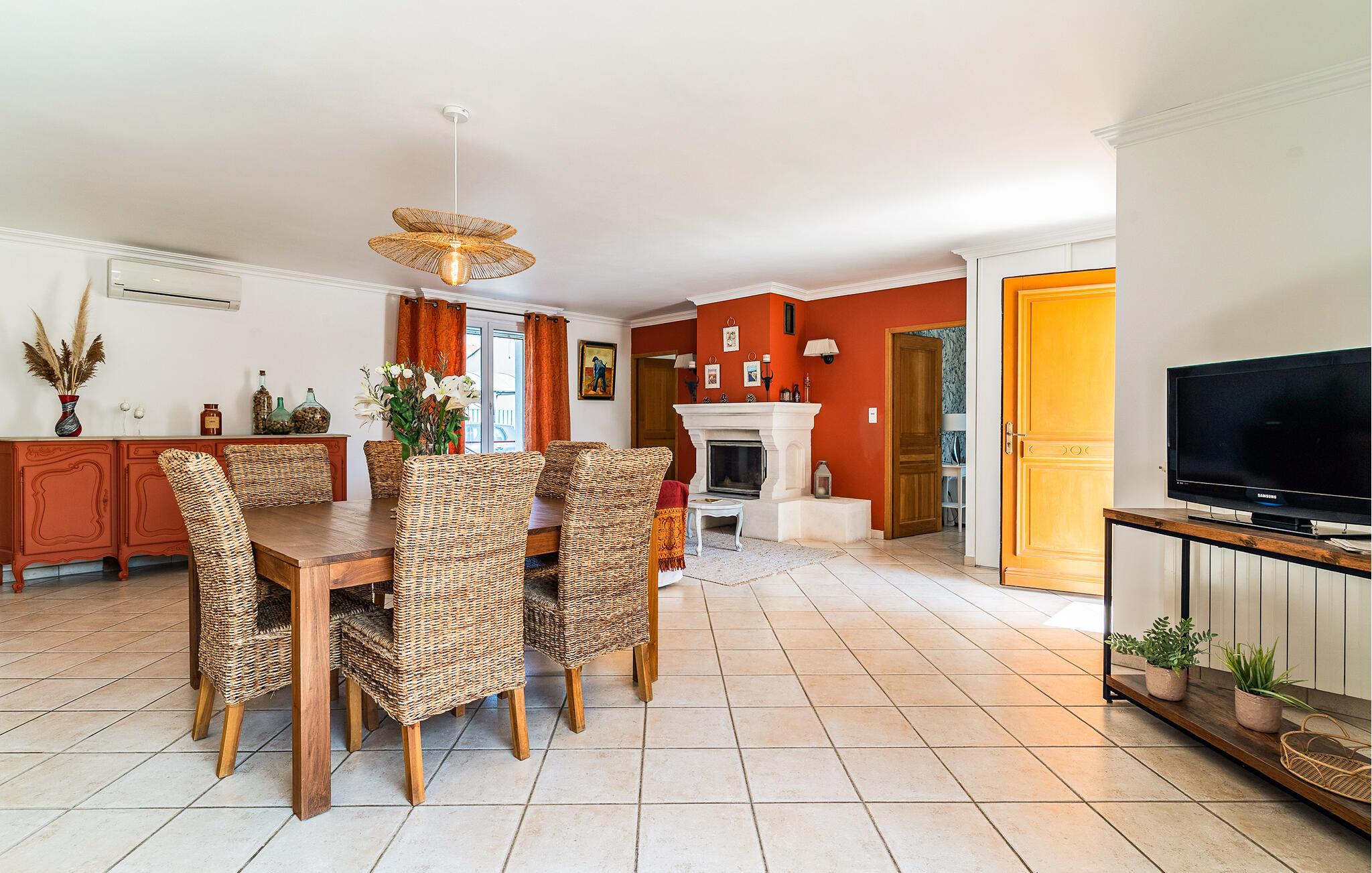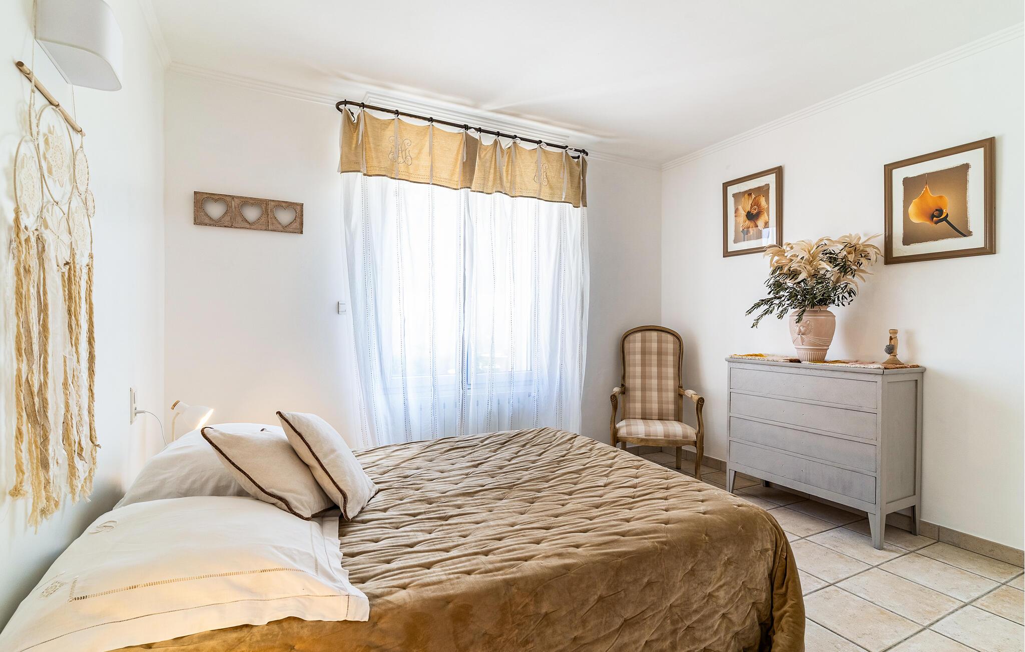 Dette sydvendte feriehus ligger i et roligt kvarter og tilbyder jer en hyggelig base for en begivenhedsrig ferie i Provence. Fremtryll kulinariske lækre retter i det rummelige landhuskøkken, og tag plads ved det stilfulde spisebord. Nyd den hyggelige stemning i stuen og slap af på den indbydende sofa efter en lang dag.