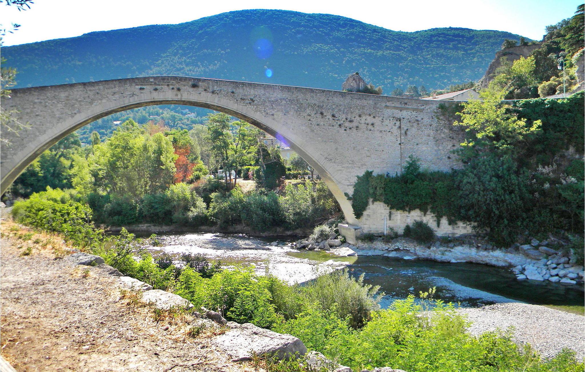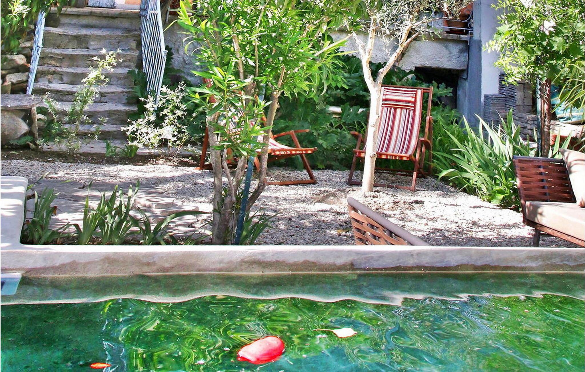 Denne smukt restaurerede Maison de Maître tilbyder en smagfuldt møbleret lejlighed, der giver en ideel ramme for en romantisk flugt. Ejendommen består af tre lejligheder, der hver komfortabelt rummer to gæster. Beliggende kun få skridt fra Nyons' historiske centrum, er boligen beliggende ved flodbredden. Direkte adgang til flodbadning er tilgængelig lige foran huset. Lejligheden på første sal omfatter en stue/spisestue, en veranda med malerisk udsigt over floden, et separat køkken, et soveværelse med dobbeltseng og et veludstyret brusebadeværelse. Fælles udendørsarealer omfatter en intim have med siddepladser og liggestole, et bassin i romersk stil og flodstrande nær den berømte romerske bro. Derudover kan husets renoverede kælder fungere som et køligt afslapningsområde, mødelokale eller plads til at smage regionale produkter. Parkeringsmulighederne omfatter gadeparkering og offentlig parkering i nærheden, eller en privat garage er tilgængelig efter anmodning mod et tillægsgebyr. For at opretholde et fredeligt miljø for alle gæster er kæledyr ikke tilladt på stedet. Huset ligger i centrum af Nyons med en storslået udsigt over floden, den romerske bro og bjergene. Du finder en offentlig swimmingpool mindre end 500 m fra huset. Alle butikker og restauranter ligger inden for gåafstand. Stort provencalsk marked hver torsdag.